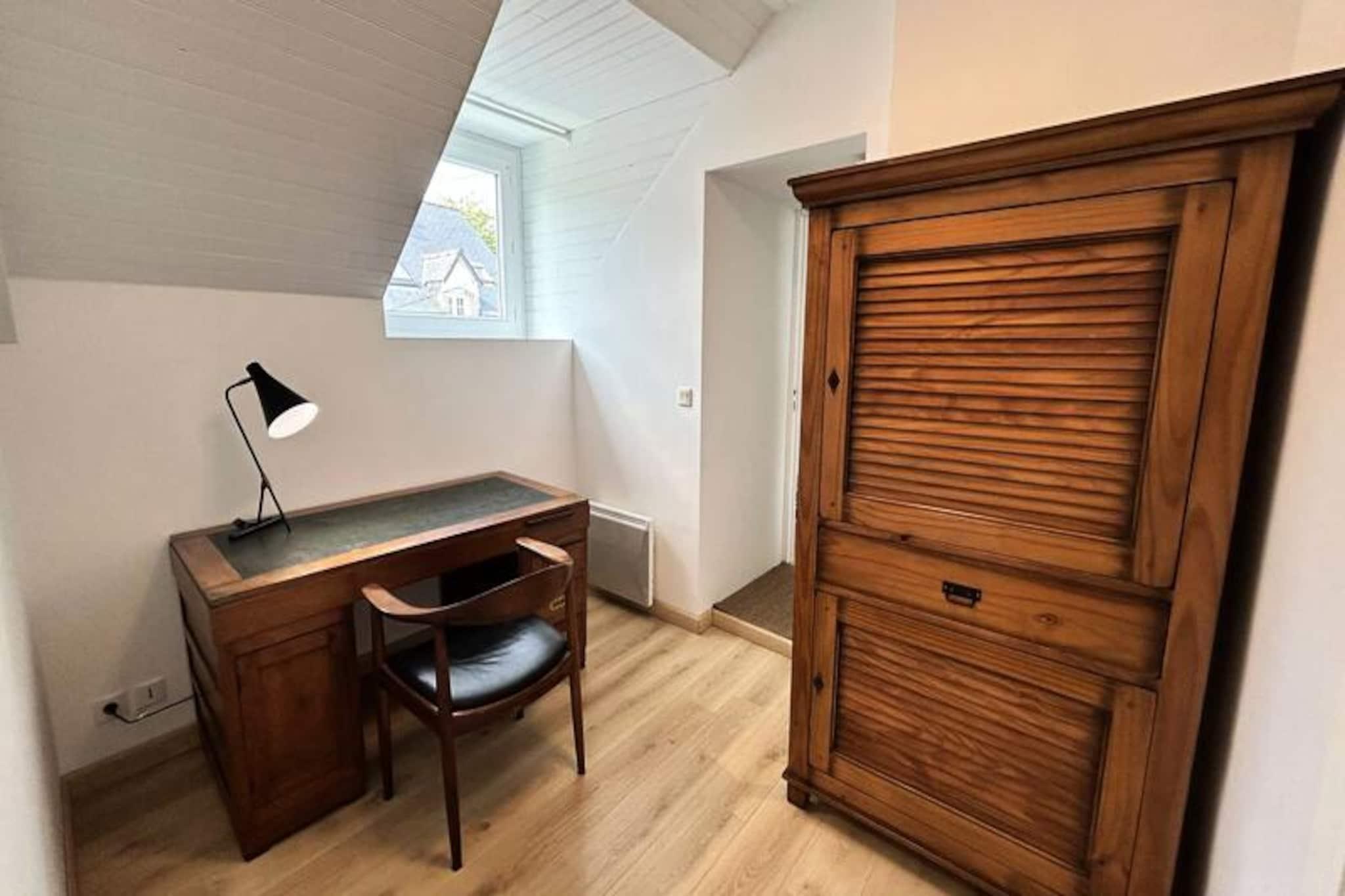 Midt i Erquys fortryllende landskaber på Smaragdkysten inviterer dette charmerende stenhus dig til at slappe af og omfavne Bretagnes skønhed. Med sin varme atmosfære og gennemtænkte design tilbyder det et roligt tilflugtssted for op til seks gæster, omgivet af regionens naturlige vidundere og kystskatte.\n\nTræd indenfor for at opdage en rummelig stue, perfekt til afslapning eller hyggelige sammenkomster, suppleret med en spiseplads til seks personer. Det åbne køkken er fuldt udstyret med moderne apparater, herunder opvaskemaskine, ovn og kaffemaskine, hvilket sikrer ubesværet madlavning. Ovenpå er der tre indbydende soveværelser med queensize-senge, hvoraf det ene tilbyder en babyseng til familier, der rejser med små børn. Et badeværelse med badekar og et separat toilet giver ekstra bekvemmelighed, mens babyvenlige faciliteter såsom en højstol, klapvogn og sikkerhedsgitter gør dette hjem ideelt for familier. Udenfor lokker den lukkede terrasse med et spisebord til otte personer og en elektrisk grill, der skaber de perfekte rammer for udendørs måltider.\n\nBeliggende kun få minutter fra sandstrandene i Montiers og Saint-Michel, afsondrede bugter og den travle havn i Les Hôpitaux, er dette hjem en indgangsport til Erquys kystcharme. Udforsk kyststien GR34 for at beundre den betagende udsigt, inklusive den legendariske Cap Fréhel, eller fordyb dig i den pulserende lokale kultur formet af kammuslingefisketraditioner. Uanset om du vandrer langs klipper, slapper af ved havet eller nyder frisk fisk og skaldyr, tilbyder Smaragdkysten uforglemmelige oplevelser.\n\nVælg dette dejlige stenhus til et ophold, der kombinerer komfort, bekvemmelighed og den tidløse charme ved Bretagnes kyst. Lad bølgernes rytme og hedens skønhed skabe minder, du vil værdsætte for evigt.