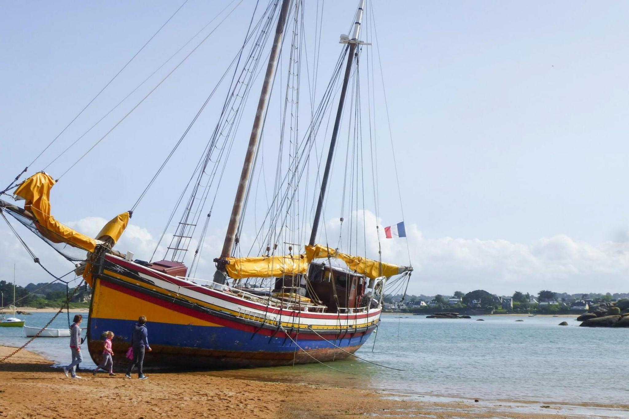 Den lille, typisk bretonske ejendom med to boligenheder ligger over Les Godelins-stranden, på den maleriske Goëlo-kyst på en fælles naturgrund. Det lyse og venligt indrettede naturstenshus byder på feriekomfort og et lille udendørs opholdsområde til udendørs spisning. Du kan opbevare parasoller, læhegn eller strandspil i den fælles strandhytte på stranden foran dig. Der er kun få skridt til at shoppe i den lille bymidte, og badestedets to smukke strande kan nås til fods på få minutter. Godelins-stranden ligger i læ og omgivet af høje klipper, den solrige Le Moulin-strand er ideel til svømning og alle former for vandsport. Den populære kystvandresti GR 34 fører langs havnen og strandene i mange kilometer og byder altid på betagende udsigtspunkter. Goëlos kyst er en meget naturskøn kyststrækning. Stejle kyster veksler med små bugter, fiskerihavne og sandstrande. De højeste klipper i Frankrig er i nærheden, ved "Pointe de Plouha". Fra Saint-Quay-Portrieux satte mange trawlere ud for at fange kammuslinger. Vi anbefaler især en dagstur til blomsterøen Bréhat (afgangssted nord for Paimpol), hvortil du for eksempel kan krydse med det traditionelle sejlskib fra Saint-Quay eller ombord på en fiskekutter med en frisk brise fra havet. luft.
