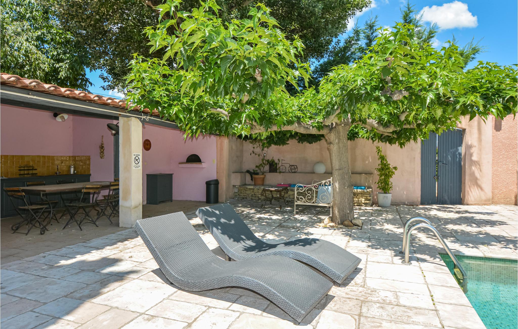 Dette feriehus har en fredelig beliggenhed i udkanten af Eyguières, mellem Alpillerne og Marseilles kyst. Indkøbsmulighederne kan I let nå til fods. Lav jeres mad i udekøkkenet, og spis i skyggen med udsigt til poolen. Besøg Salon-de-Provence, eller udforsk Provence, Alpillerne, St. Rémy-de-Provence og Les Baux-de-Provence med slottet fra middelalderen. På en time når I nationalparken Camargue, eller kør til sandstrandene ved Saintes-Maries-de-la-Mer.