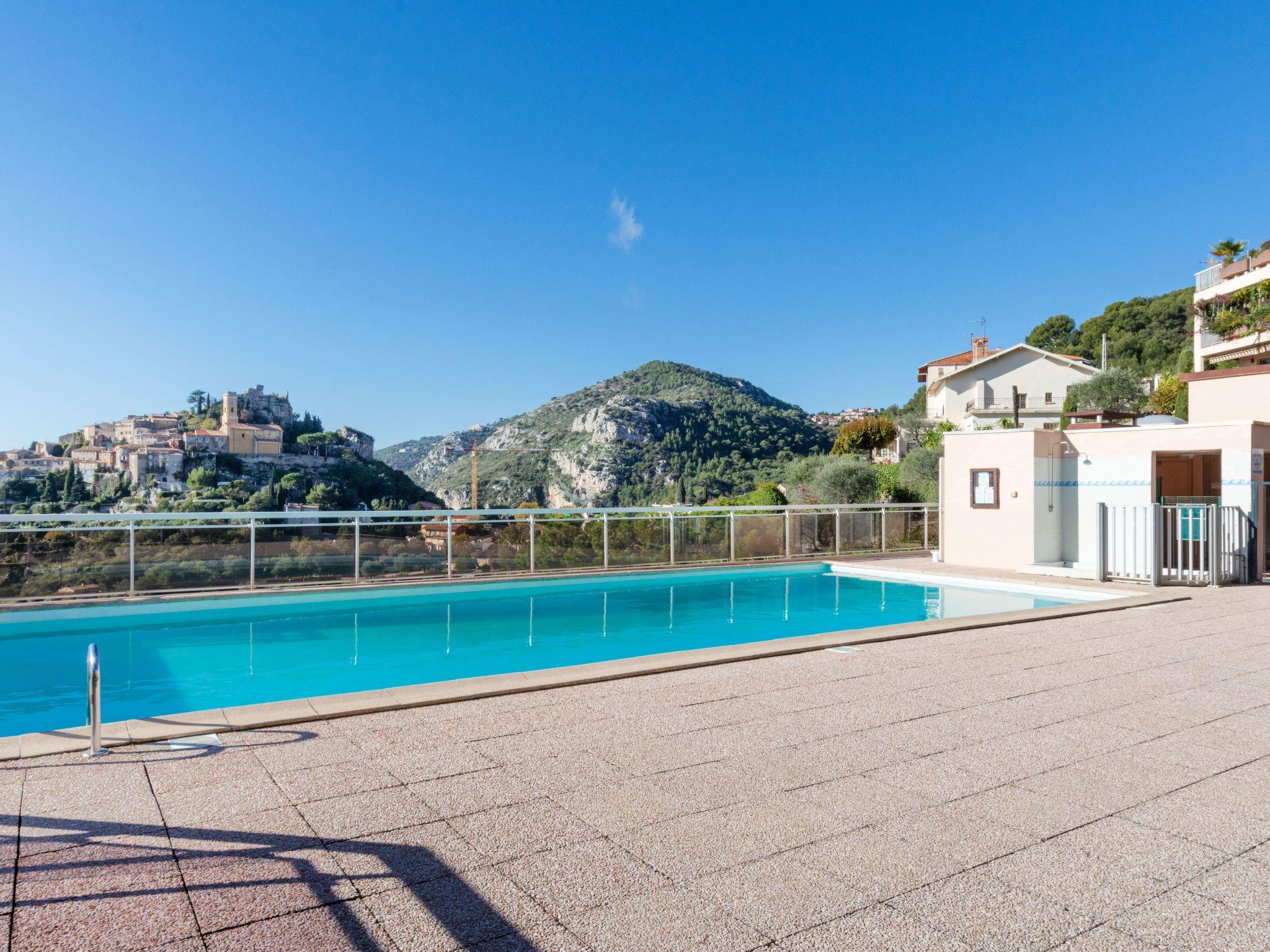 Eze 13 km from Nice: Beautiful residence "Les Balcons d'Eze", 4 storeys. 650 m from the centre of Eze Village, in a sunny, elevated position residential area (villas), south facing position. For shared use: swimming pool angular (13 x 6 m, depth 80 - 190 cm, seasonal availability: 01.May. and 31.Oct. pool opening hours: 09:00-22:00). Shower/WC in the pool area. In the complex: lift. Grocery, supermarket 600 m, restaurant 450 m, bus stop "Les flots bleus" 180 m, pebble beach "Plage d'Eze" 3 km. Nearby attractions: Parfumerie Fragonnard (visite labo) 500 m, Monaco 8 km, Nice 13 km, Vintimille 30 km, Cannes 37 m, Aqualand à Fréjus 68 km. Well-known lakes can easily be reached: Saint Cassien 62 m. Hiking paths: Parc National du Mercantour 67 m, Col de Vence 52 m. Only the wearing of swimsuits is authorized in the swimming pool of the residence.