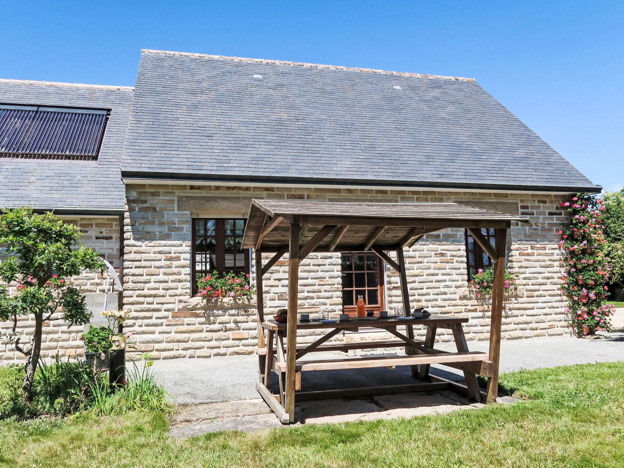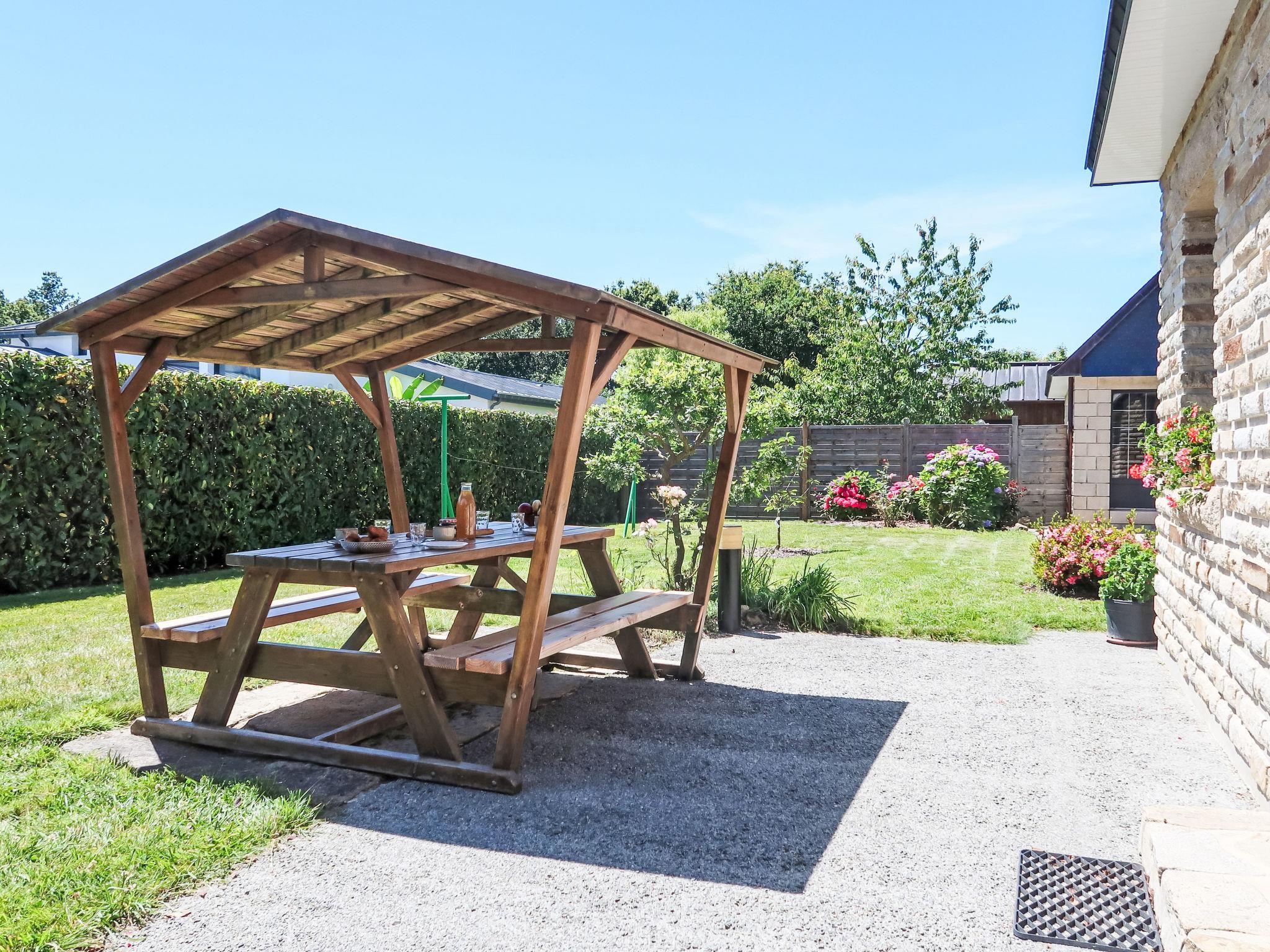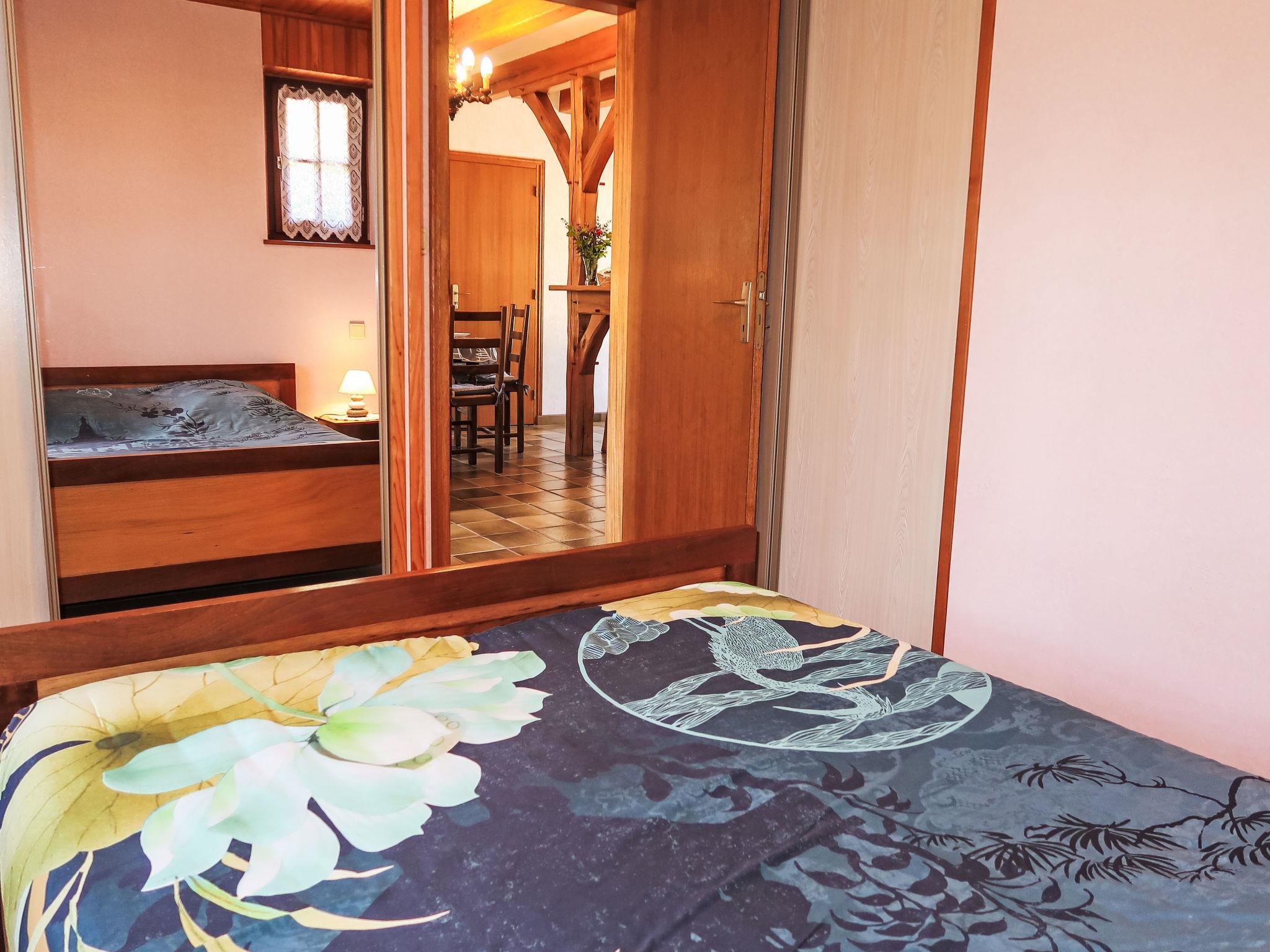 "Mestrezec", 3-room terraced house 50 m2. Beautiful and cosy furnishings: living/dining room with digital TV, flat screen, radio and electric shutters. Exit to the garden, to the terrace. 1 room with 1 double bed (2 x 70 cm, length 190 cm), electric shutters. 1 room with 2 beds (90 cm, length 190 cm), electric shutters. Open kitchen (oven, dishwasher, 4 gas rings, toaster, microwave, freezer, grill, electric coffee machine, Capsules for coffee machine (Nespresso)) with bar. Shower, sep. WC. Floor heating. Terrace. Terrace furniture, barbecue. Facilities: washing machine, iron, hair dryer. Internet (WiFi, free). Please note: non-smoking house. Maximum 1 pet/ dog allowed. Smoke alarm. Please note: access via 2 steps. The double bed (140 cm) is made up of 2 adjustable mattresses. Available: utility room (reached from outside) with freezer.