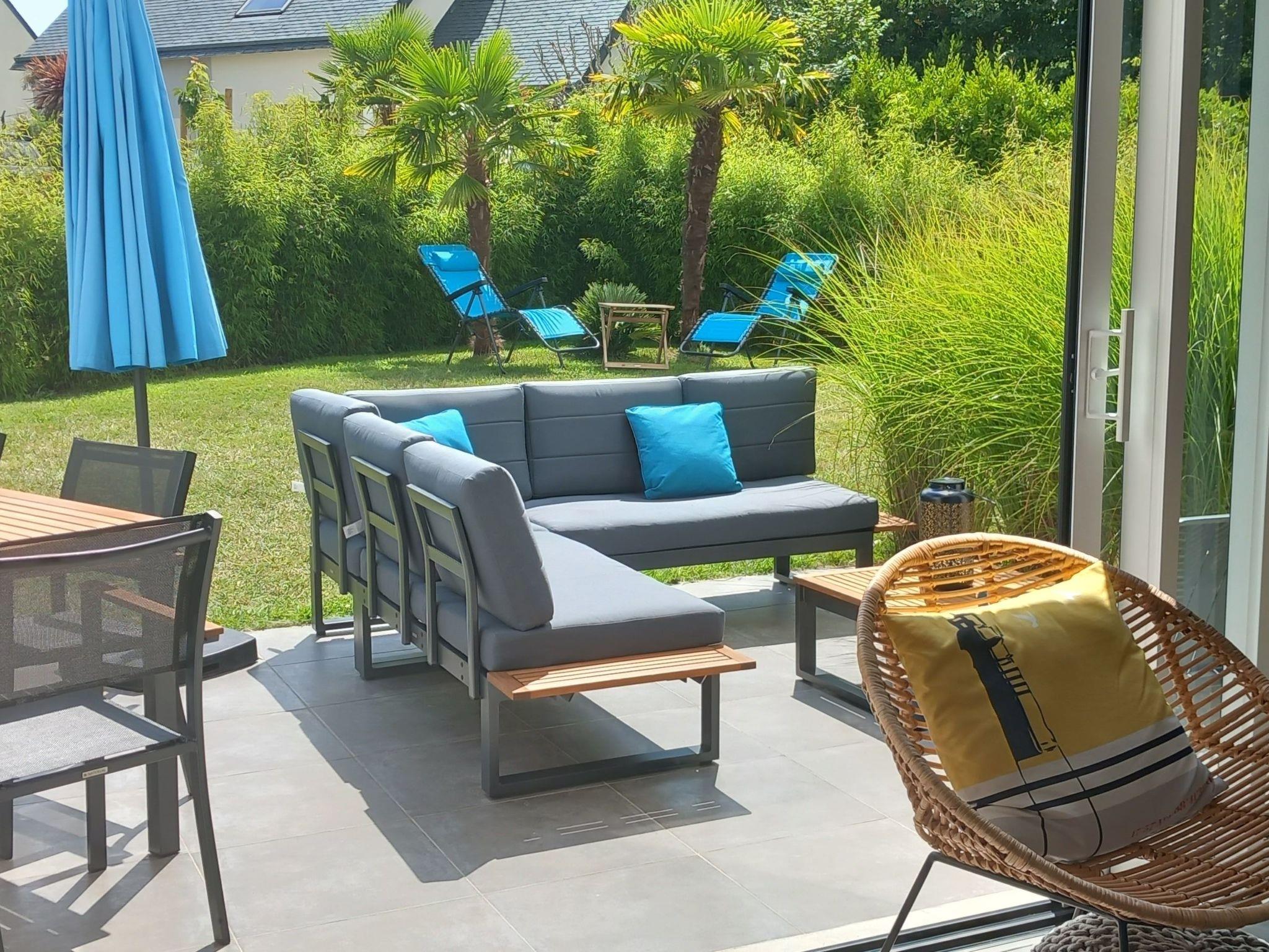 The interior of the house features a pleasant living room opening onto a fully-equipped kitchen, guaranteeing a convivial living space in which to share unique moments. The house has three bedrooms, one with a double bed (160x200) opening onto the garden and equipped with a flat-screen TV, a second bedroom also with a double bed (160x200), and a third with two single beds (90x200). The modern bathroom features a large Italian shower and double washbasin, while a separate toilet and a large garage for your car, bikes and water sports equipment complete the interior layout.