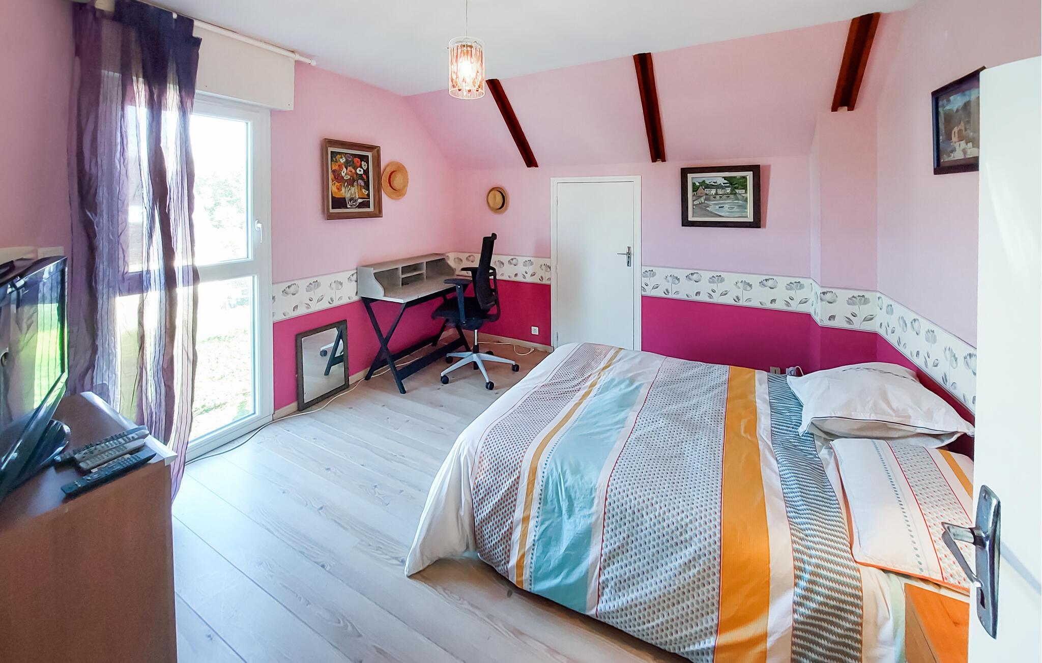 Tilbring en afslappende ferie i dette charmerende feriehus i Gouesnach, omgivet af masser af grønt og kun få kilometer fra de betagende strande i Bretagne. Den hyggelige stue med sine træbjælker og komfortable indretning giver jer en afslappet atmosfære, hvor I kan nyde aftenerne efter en dag fyldt med eventyrlige udflugter. Sæt jer til rette i sofaen, mens solen strømmer ind i rummet gennem de store vinduer, og lad dagen afslutte på en afslappende måde.