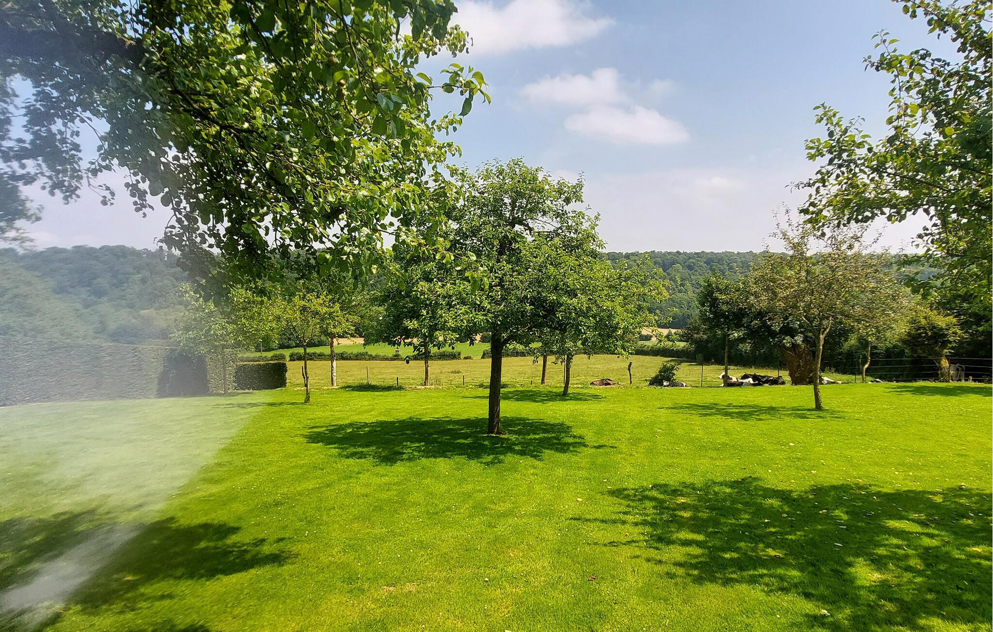 Beliggende mellem køer finder I æble- og pæretræer, som skaber en rolig og idyllisk atmosfære. Slap af på solterrassen, mens børnene hopper rundt i den store have.