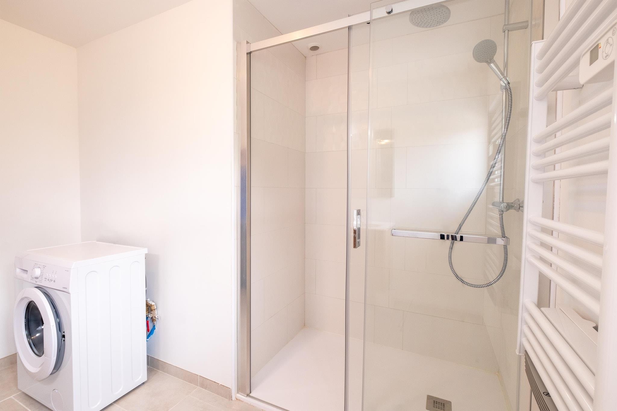Stueetage: (åbent køkken(elkedel, brødrister, komfur(glaskeramisk), kaffemaskine(kaffepude), ovn, mikrobølgeovn, køleskab(+ fryser)), stue / spisestue(Fjernsyn(Smart-TV), spisebord, hyggepejs, kakkelovn(træ)), soveværelse(dobbeltseng(160 x 200 cm)), badeværelse(bruser, håndvask, håndvask), toilet) På 1. etage: (Soveværelse med badeværelse(dobbeltseng(160 x 200 cm), bruser, toilet)) tremmeseng, vaskemaskine, terrasse(25 m2), terrasse(80 m2), have, havemøbler(10 personer), solstole, grill(trækul), swimmingpool(privat, udendørs, termotæppe til swimmingpool, 7 x 5 m., opened from May upto and including Oct), strygejern, føntørrer