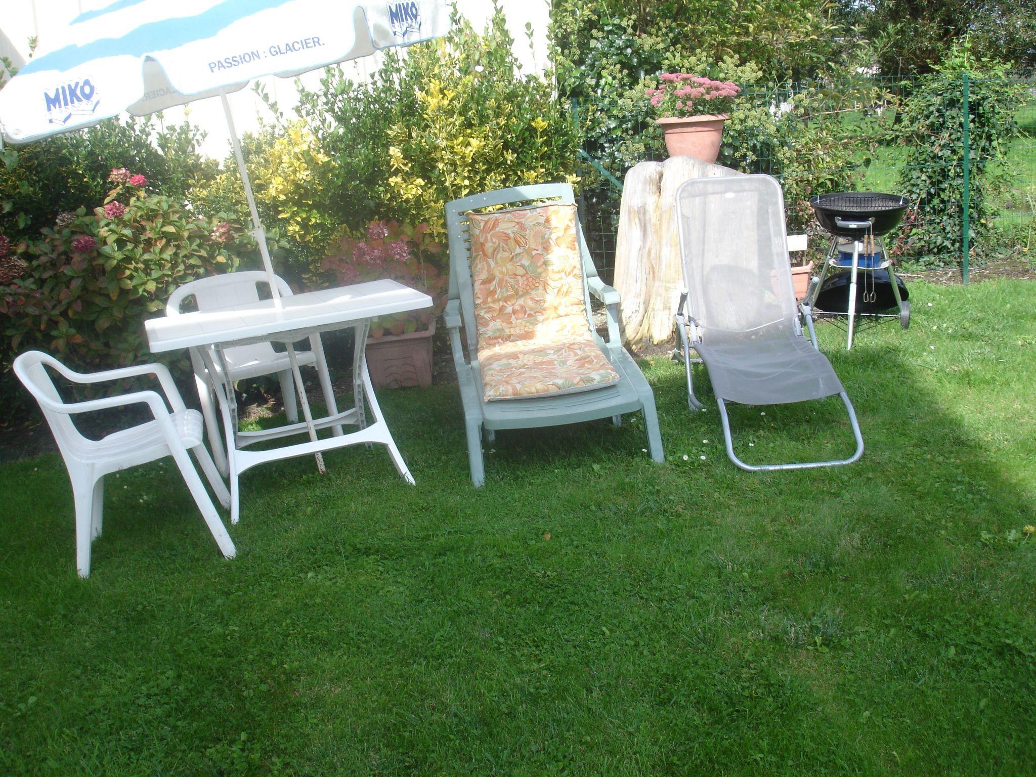 Detached single-storey bungalow, 65 m²;Comprising: 1 bedroom with a double bed (140cm) - 1 bedroom with a double bed (140cm) + 1 folding bed (1 person) Kitchen area equipped with microwave, mini electric oven, 4-ring gas cooker with electric oven, fridge with freezer compartment and all cooking utensils for 6 people - Dishwasher - table with 6 chairs. Very bright lounge with two armchairs and a two-seater B.Z., coffee table. Television (German channels) with DVD player and video recorder. WIFI available. Fully fenced 800 m² garden with lockable gate surrounding the bungalow. Garden furniture + parasols and barbecue - 4 bicycles available - Sandy beach 1 km away. Pets allowed at extra cost. Garage with washing machine available. Parking allowed on site. Gîte classified "Meublé tourisme 2 ** -