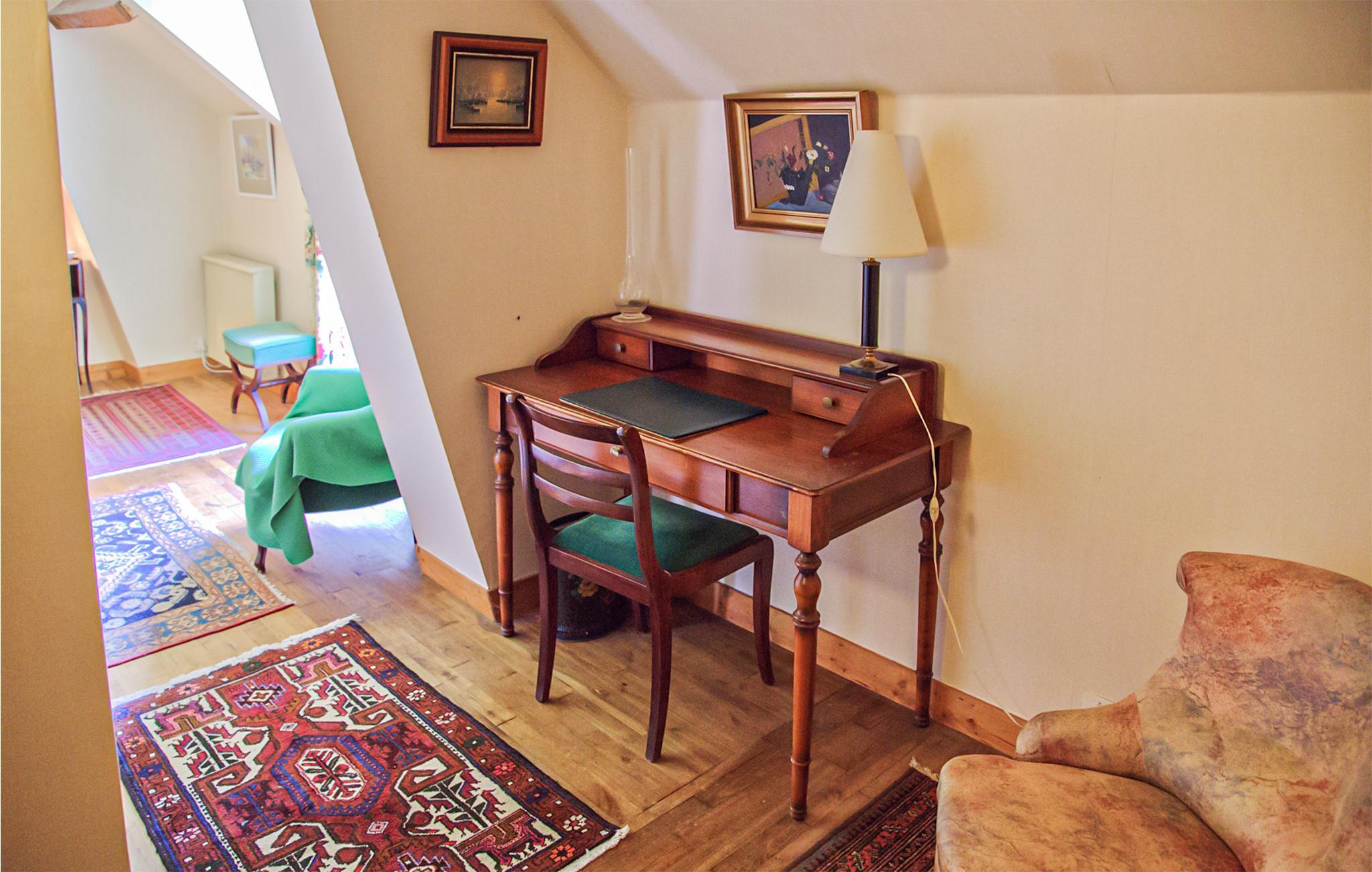 Denne tidligere gård blev bygget af kampesten og træ i 1850, og her vil I hurtigt føle jer hjemme. Indretningen er personlig og byder på et antikvarisk møbleret opholdsrum med varme detaljer og markante farver. Find jer godt til rette, nyd jeres tid sammen med familien eller vennerne og giv jer god tid til måltider og hyggelige aktiviteter. Udenfor er der en smuk grøn have og en opvarmet og afskærmet pool uden indkig. Her kan I spise morgenmad sammen enten i skyggen eller i solen eller investere jeres tid i en spændende roman.