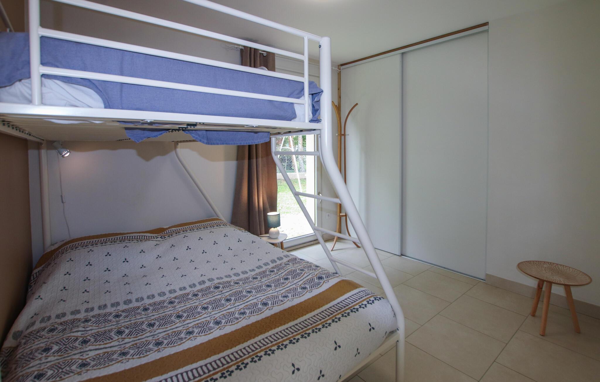 Soveværelse 10m2 (nr. 2) - 2 Sovepladser. (Dobbeltseng(e)). 1 Soveplads. (Etageseng(e)).