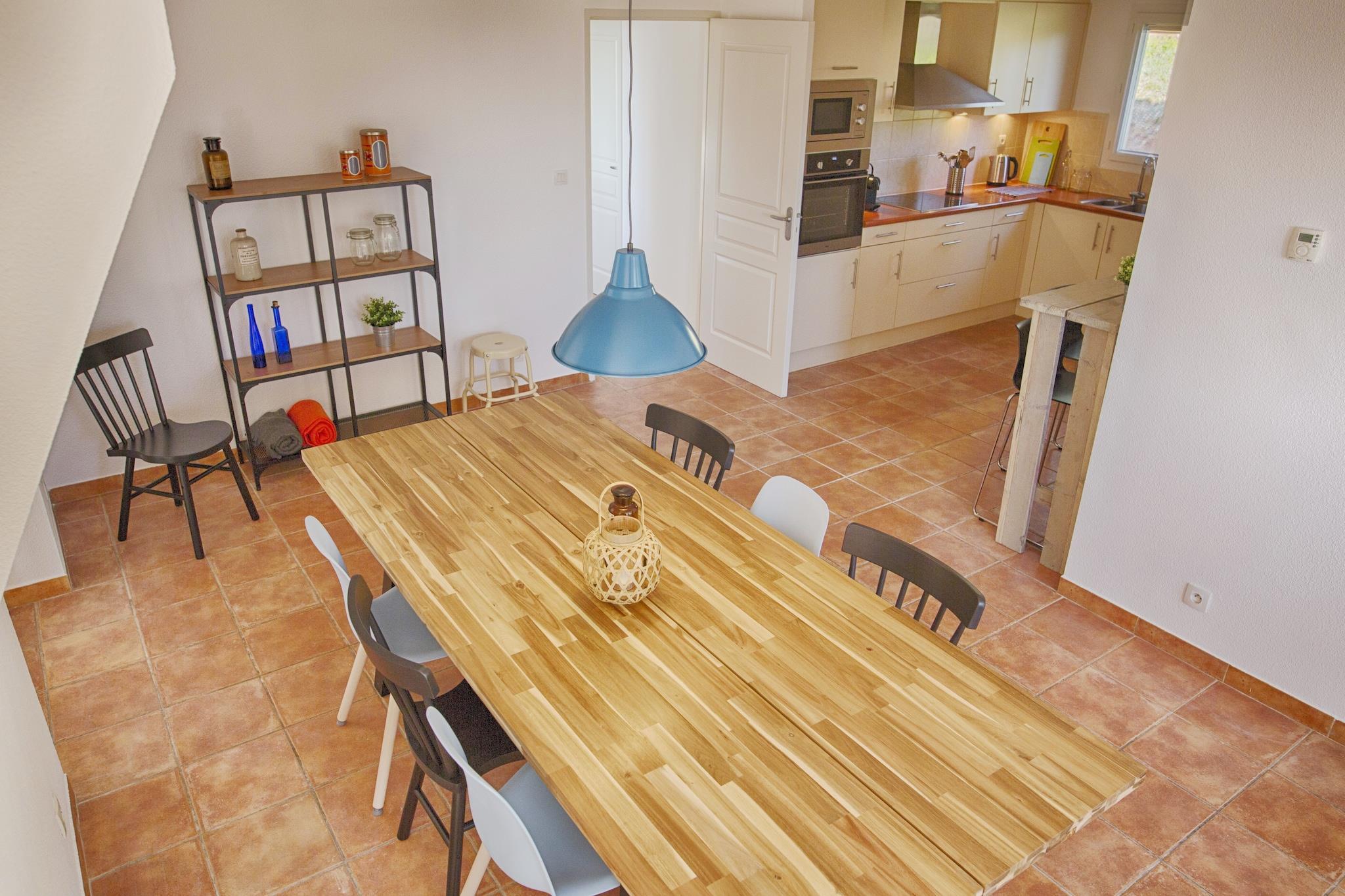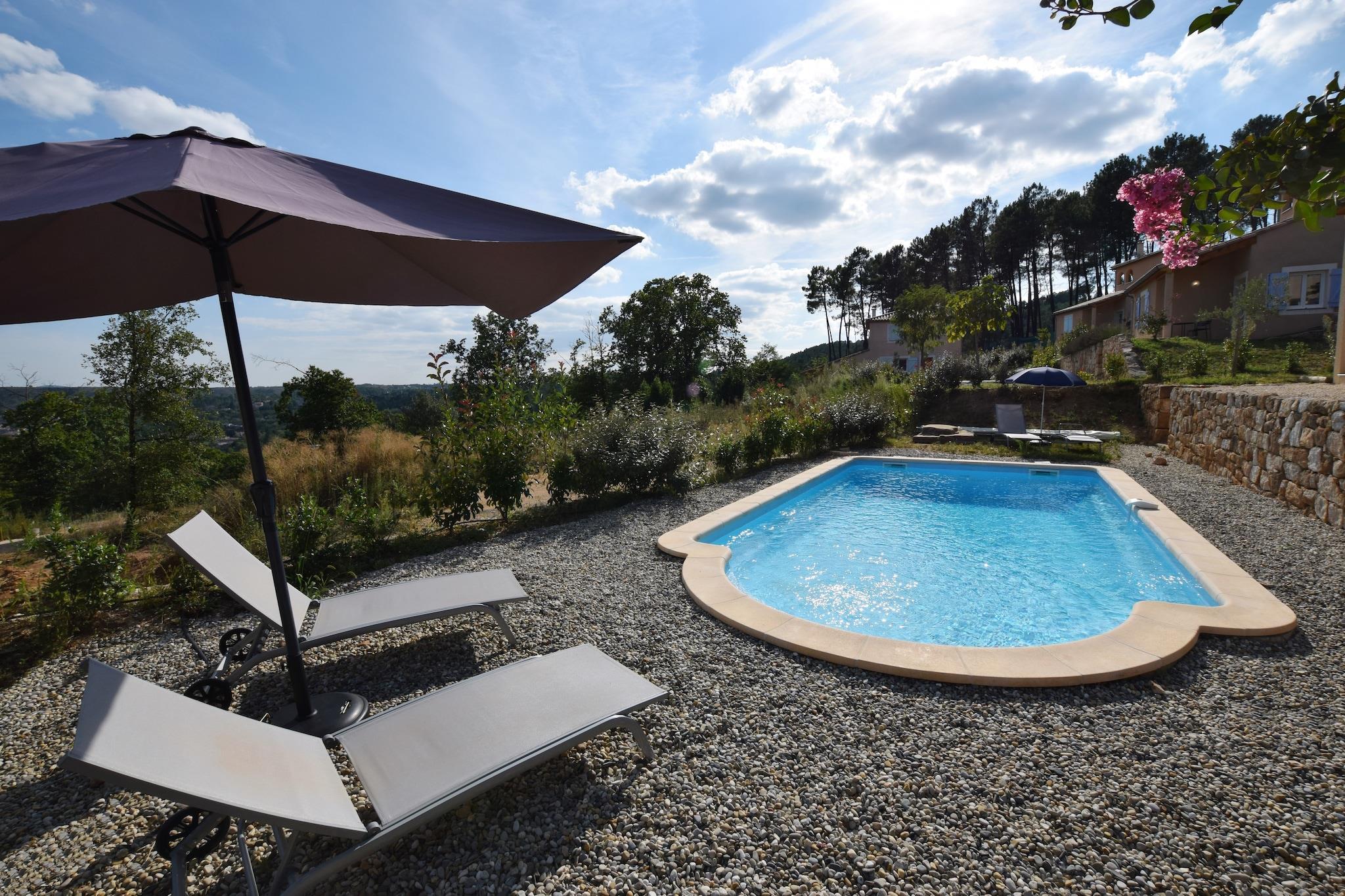 Dette moderne sommerhus med en fantastisk indretning er beliggende på en ejendom og bygget mod en bakke. Villaen og den private swimmingpool tilbyder fantastisk udsigt over det omkringliggende område og den hyggelige lille by Joyeuse. Indretningen af ??alle villaer er moderne, hyggeligt med en dejlig pejs i stuen. Joyeuse har en rig kulturel og historisk arv, herunder et slott fra det 16. århundrede, Tour de la Recluse og kastanjemuseet