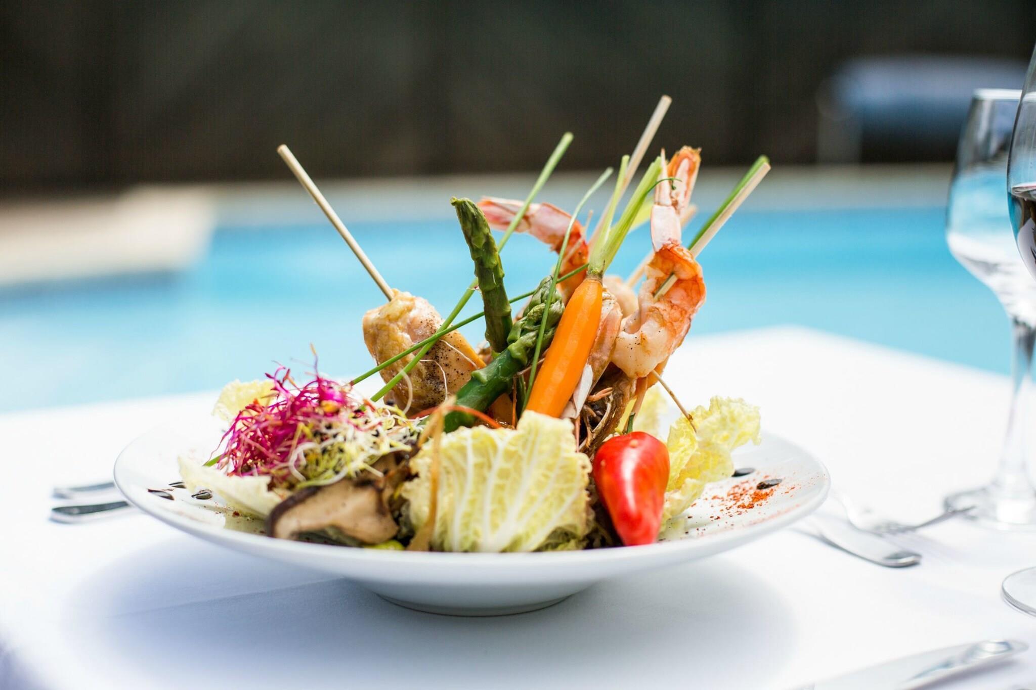 Stueetage: (Stue(dobbeltsovesofa, Fjernsyn), Køkken(kogeplade(elektrisk), kaffemaskine(kopper), combi-mikroovn, opvaskemaskine , køleskab(+ fryser)), badeværelse(bruser, toilet), terrasse, havemøbler) På 1. etage: (soveværelse(dobbeltseng), soveværelse(2x enkeltseng), badeværelse(badekar med bruser, toilet)) swimmingpool(deles med andre gæster), bordtennisbord(deles med andre gæster), bordfodbold(deles med andre gæster)