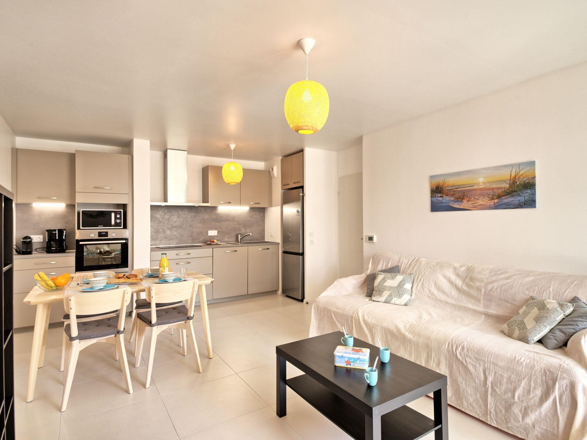 3-room apartment 60 m2 on 1st floor. Very beautiful furnishings: living/dining room with TV (flat screen). 1 room with 1 french bed (160 cm, length 200 cm). 1 room with 2 beds (90 cm, length 190 cm). Open kitchen (oven, dishwasher, 4 ceramic glass hob hotplates, toaster, kettle, microwave, freezer, electric coffee machine, Capsules for coffee machine (NESPRESSO) extra). Shower, sep. WC. Gas heating. Terrace 8 m2, roofed, south facing position. Terrace furniture. Facilities: washing machine, dryer, iron, baby cot. Internet (WiFi, free). Please note: non-smokers only. Smoke alarm. Offer by a private individual according to Art. 155, IV of CGI. 4405500322949