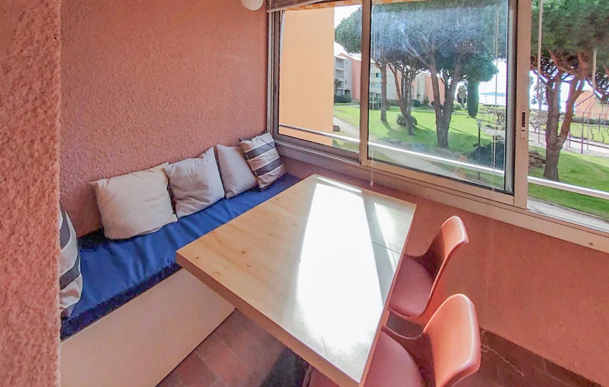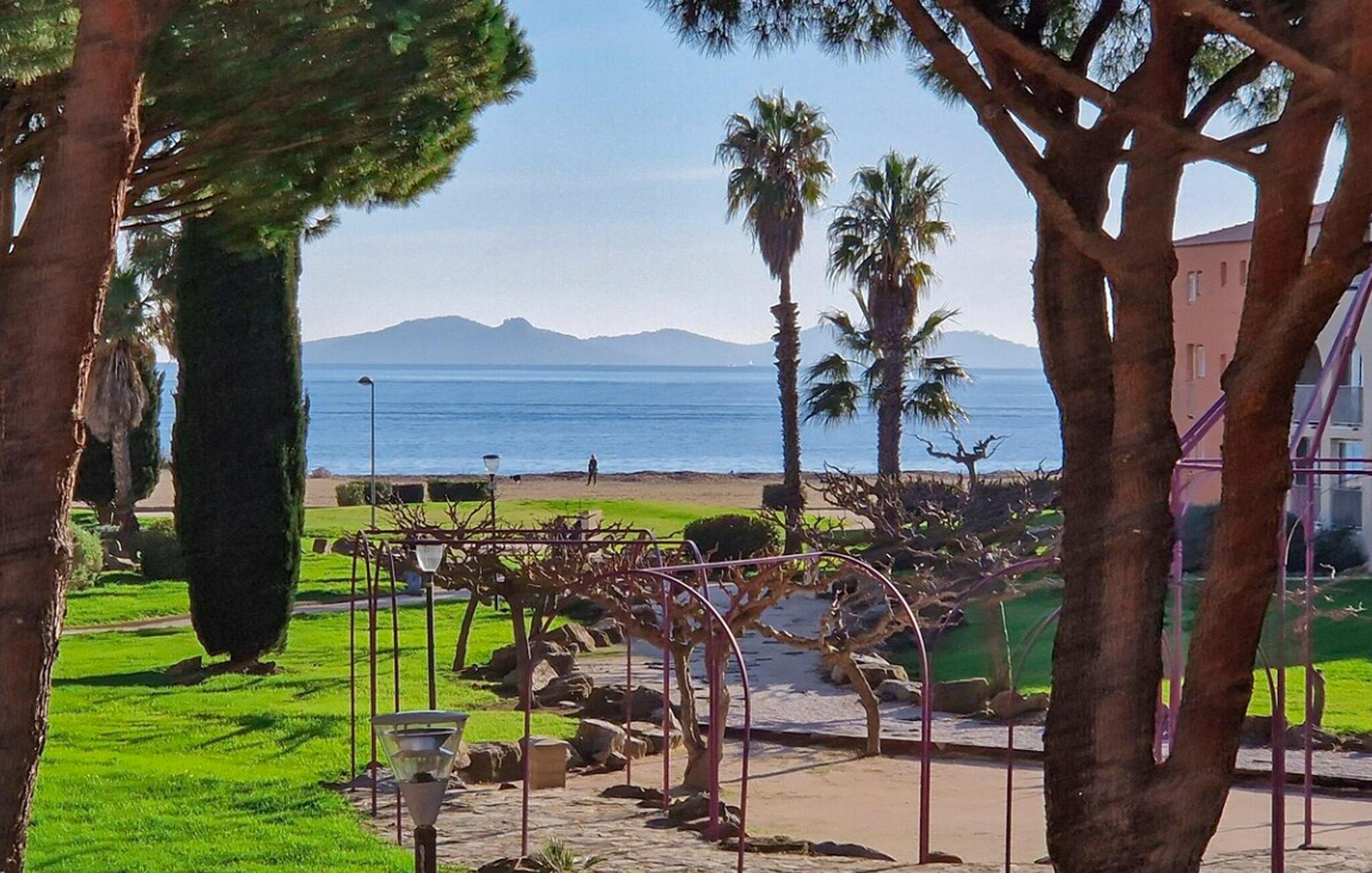 Beliggende direkte ved Middelhavskysten i La Londe-les-Maures, er denne praktisk indrettede ferielejlighed ideel til en solrig og varieret ferie med familie eller venner. Planlæg jeres aktiviteter med lækre måltider med udsigt over det grønne, og efter en begivenhedsrig dag kan I slappe af på sofaen med et brætspil eller en god bog.