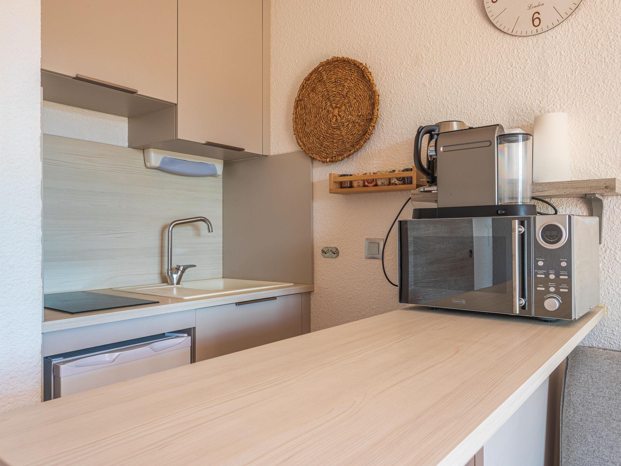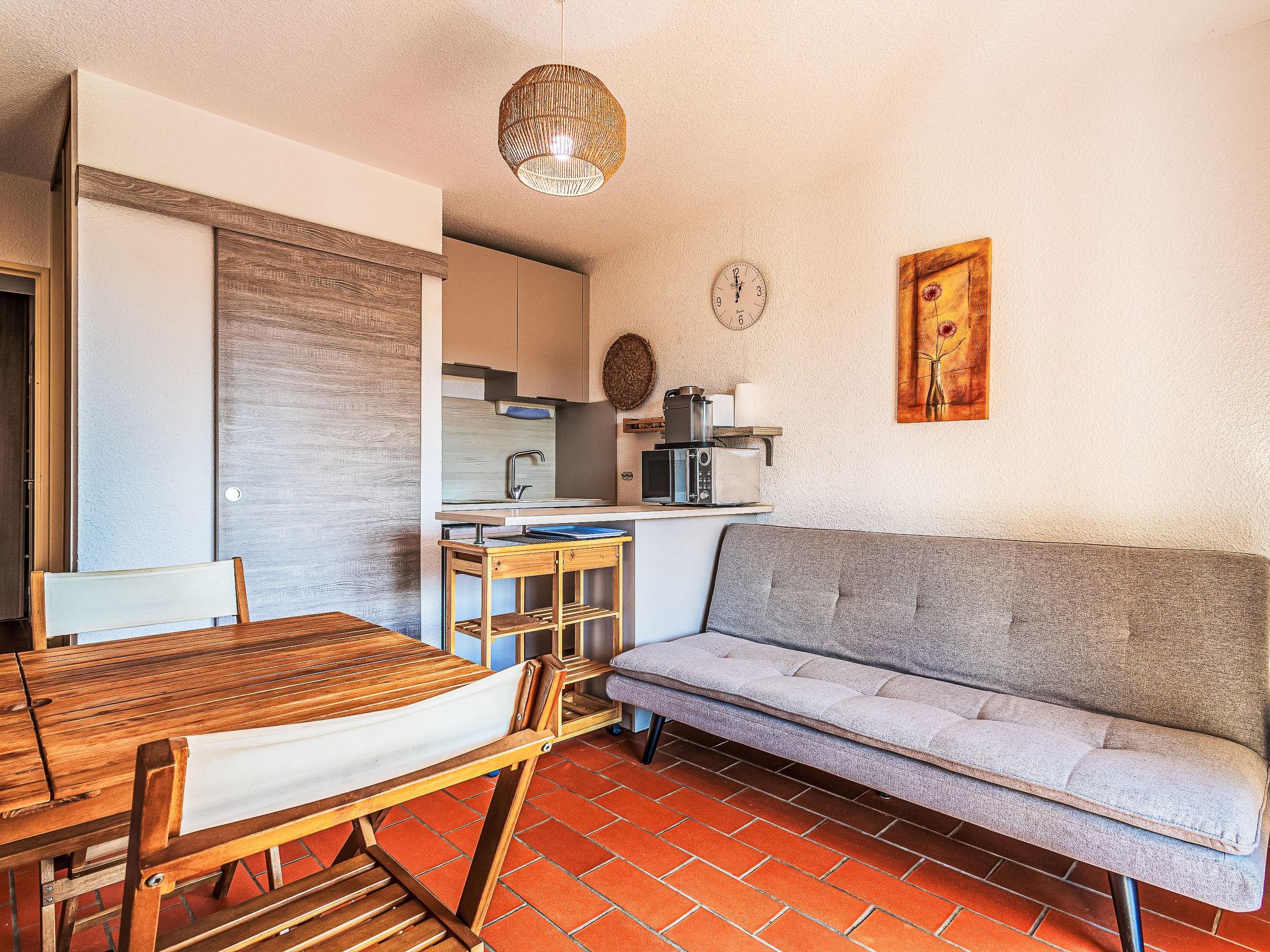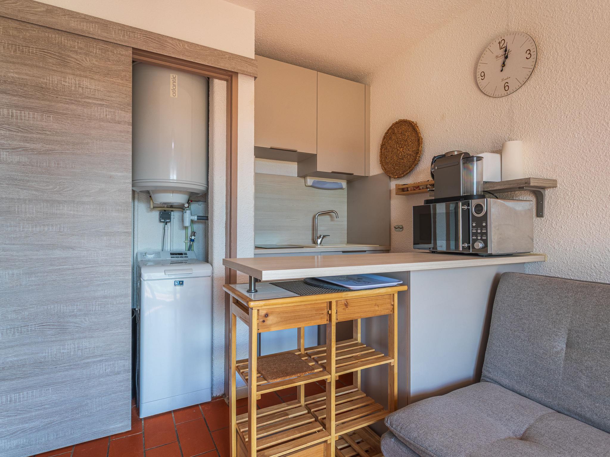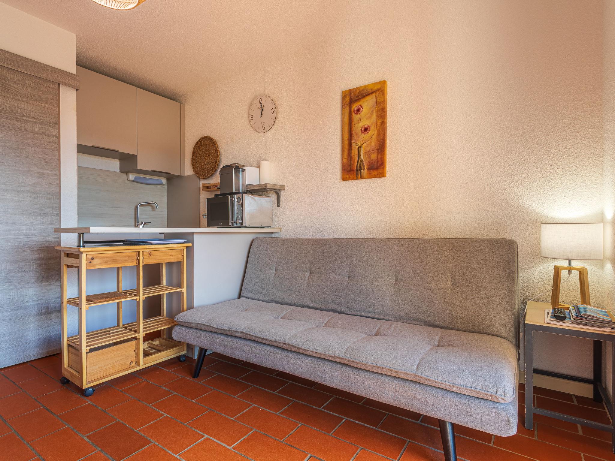 2-room apartment 24 m2 on 1st floor. Bright, comfortable and beautiful furnishings: living/dining room with 1 sofabed (140 cm, length 190 cm), dining table and TV (flat screen), electric heating and air conditioning. Exit to the terrace. 1 room with 1 french bed (140 cm, length 190 cm). Kitchenette (2 induction hot plates, toaster, kettle, microwave, electric coffee machine). Bath/WC. Terrace 6 m2. Terrace furniture. View of the garden. Facilities: washing machine. Internet (WiFi, extra). Parking space n 103. Please note: fridge without freezer. TV only FR. Smoke alarm, no lift. Offer by a private individual according to Art. 155, IV of CGI. 83071000760WO