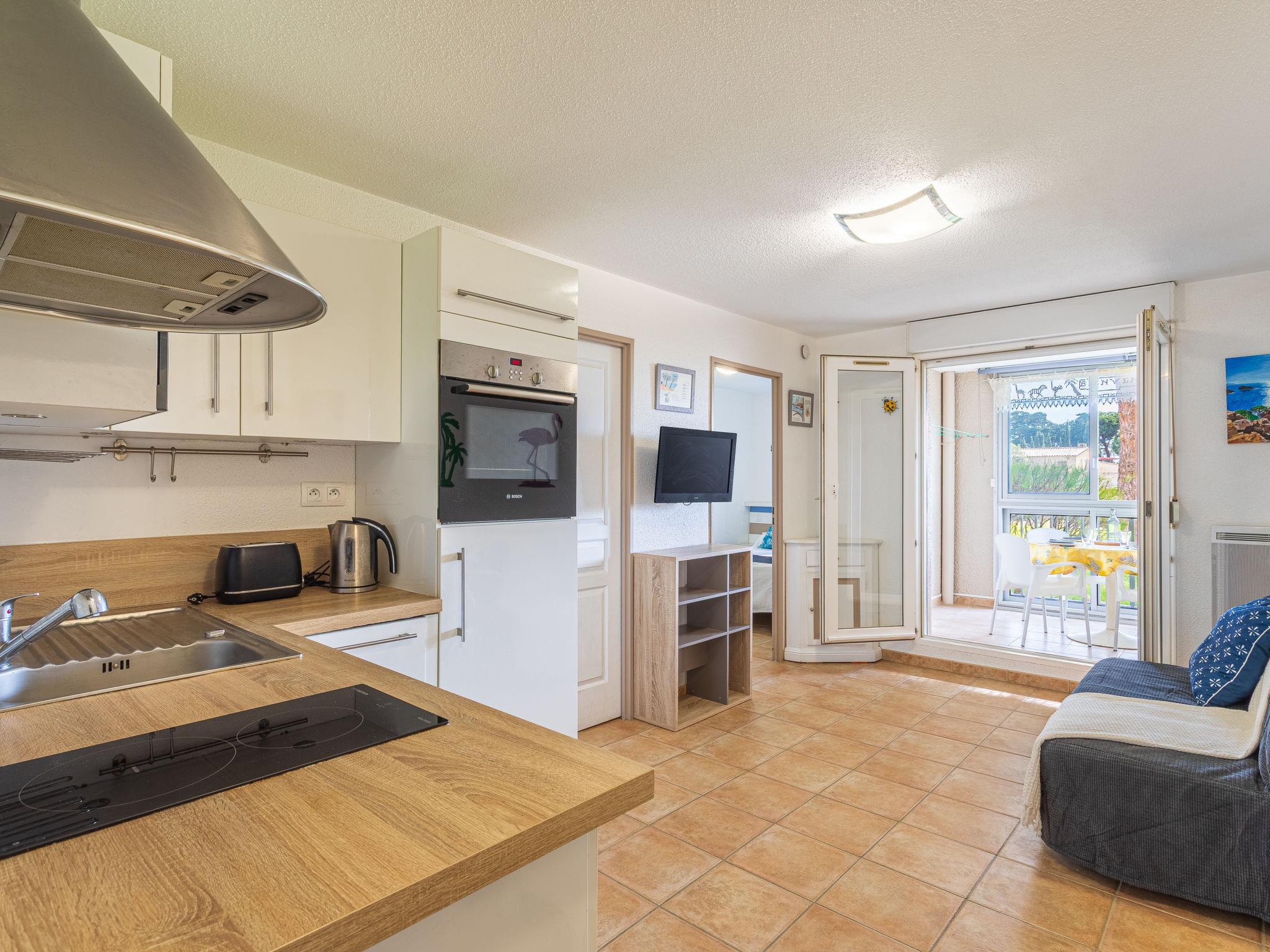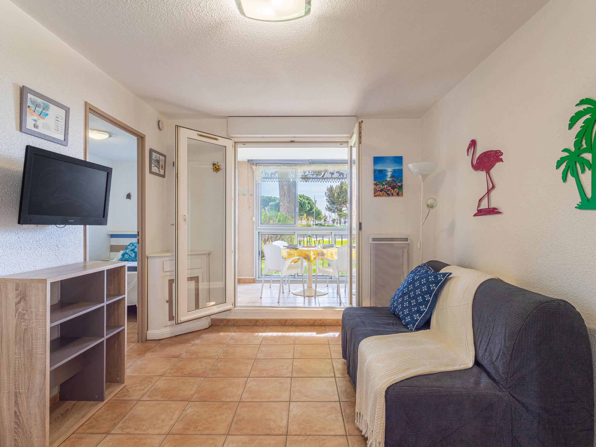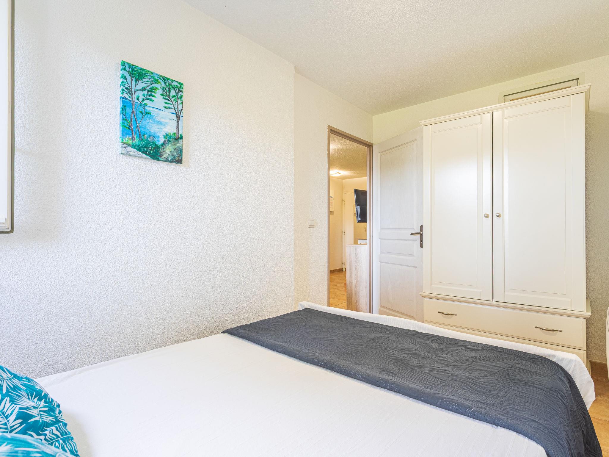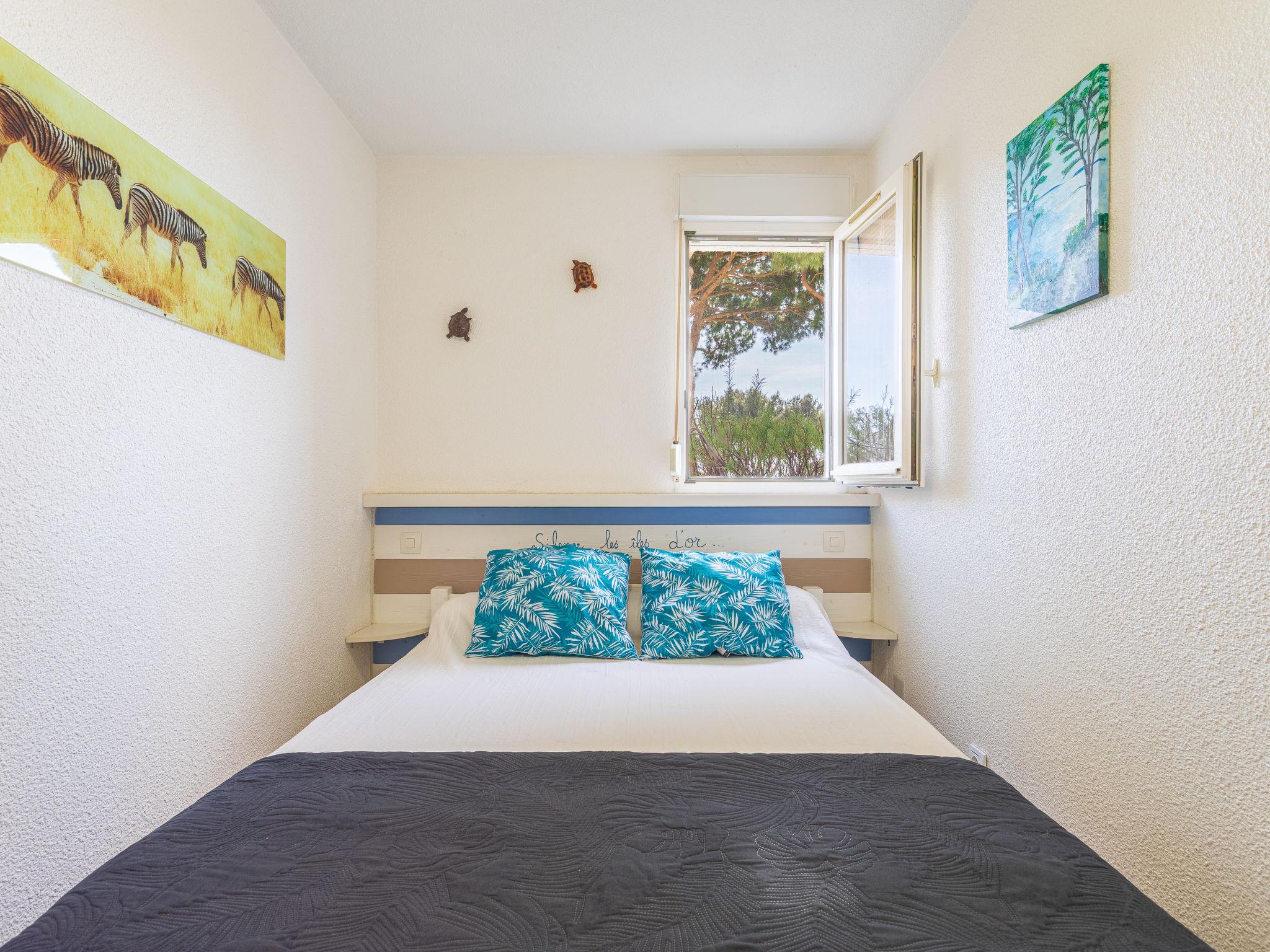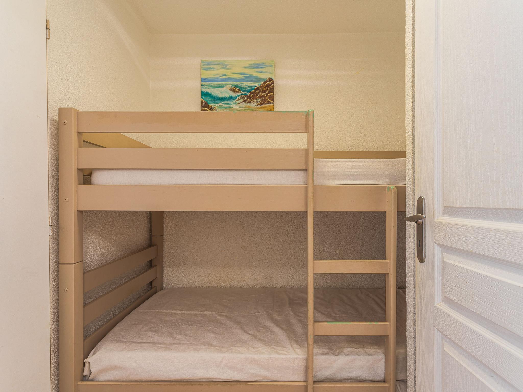 2-room apartment 34 m2, on the ground floor. Spacious and bright, comfortable and beautiful furnishings: living/dining room with 1 double sofabed (140 cm, length 190 cm), dining table and TV (flat screen), fan. Exit to the loggia. 1 room with 1 french bed (140 cm, length 190 cm), fan. Sleeping alcove with 1 x 2 bunk beds (90 cm, length 190 cm). Open kitchen (oven, dishwasher, 2 ceramic glass hob hotplates, toaster, kettle, microwave, freezer, electric coffee machine). Shower/WC. Electric heating. East facing position. Covered balcony. View of the sea. Facilities: washing machine. Internet (WiFi, extra). Please note: TV only FR. Smoke alarm. Offer by a private individual according to Art. 155, IV of CGI. 83071000333CR