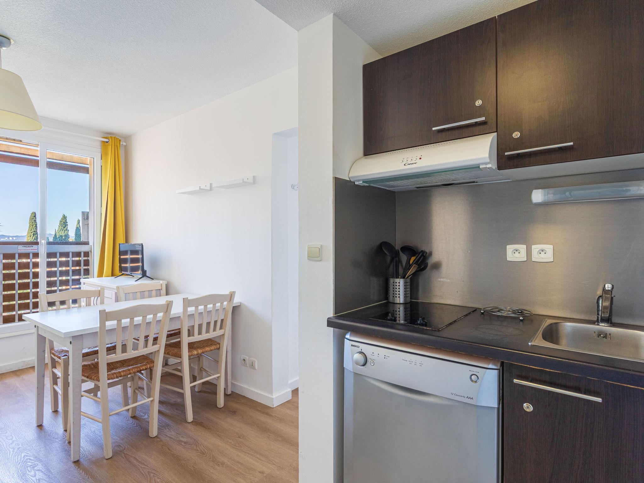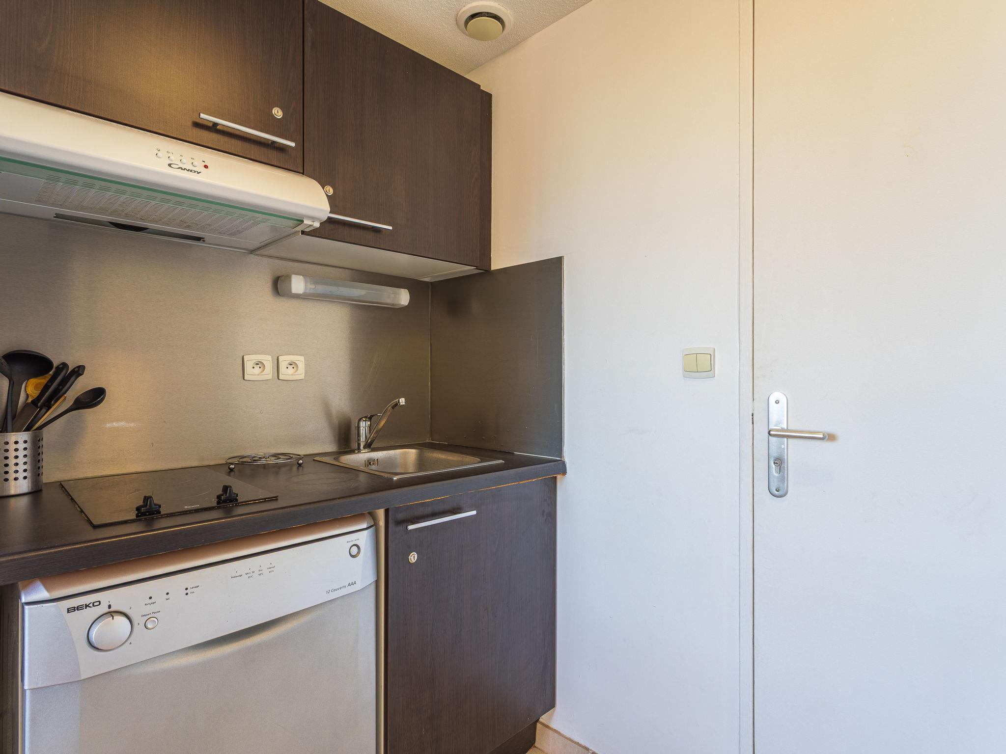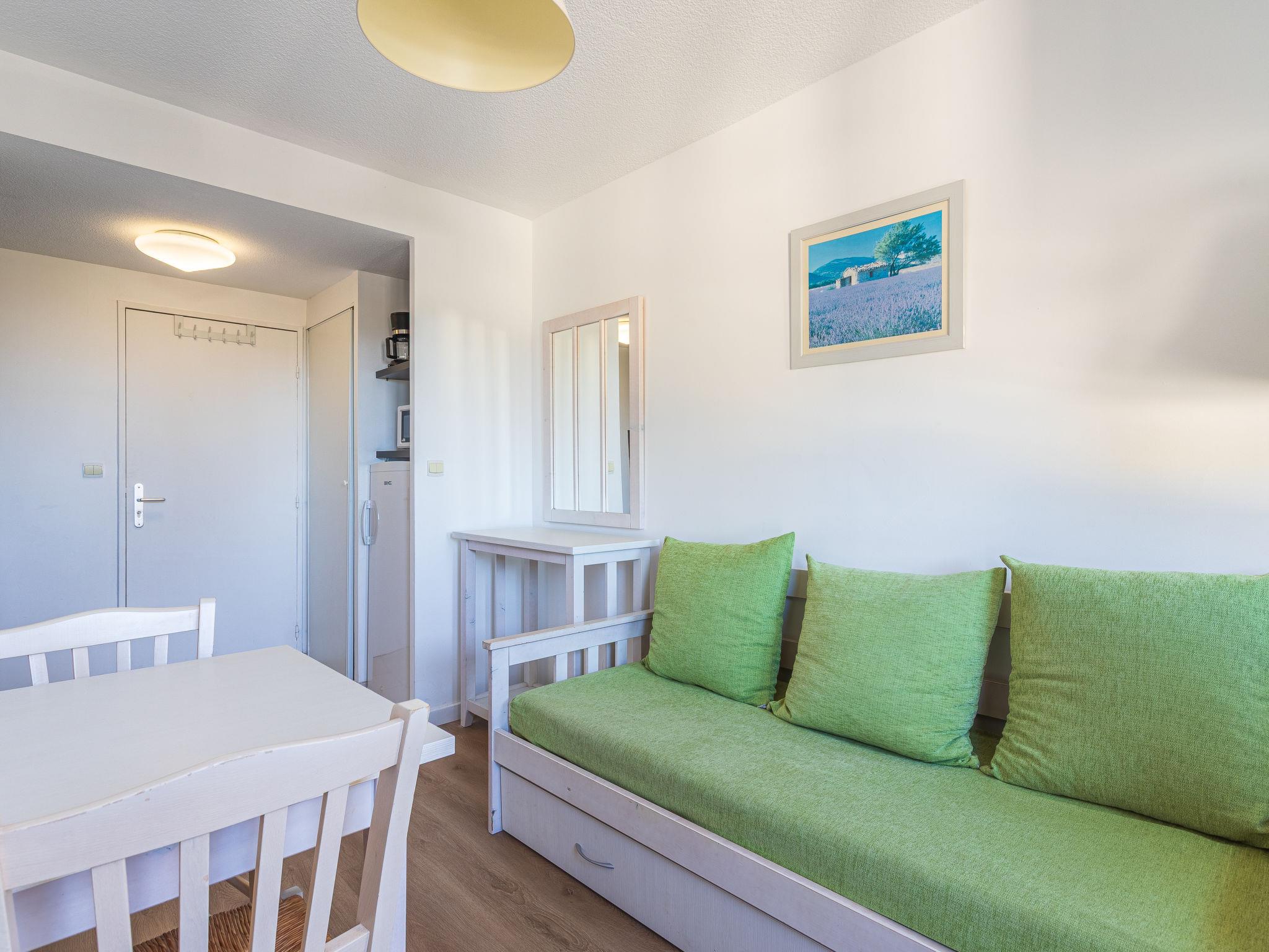 2-room apartment 27 m2 on 3rd floor, south-west facing position. Bright, comfortable and beautiful furnishings: living/dining room with 1 pull-out bed (2 pers. 2 x 90 cm, length 190 cm), dining table and TV (flat screen). 1 room with Dressing room with 1 french bed (140 cm, length 190 cm), air conditioning. Kitchenette (dishwasher, 2 induction hot plates, toaster, kettle, microwave, freezer, electric coffee machine). Shower/WC. Electric heating. Facilities: washing machine, iron. Internet (WiFi, extra). Please note: suitable for families. TV only FR. Smoke alarm, no lift. Offer by a private individual according to Art. 155, IV of CGI. 83071000535K