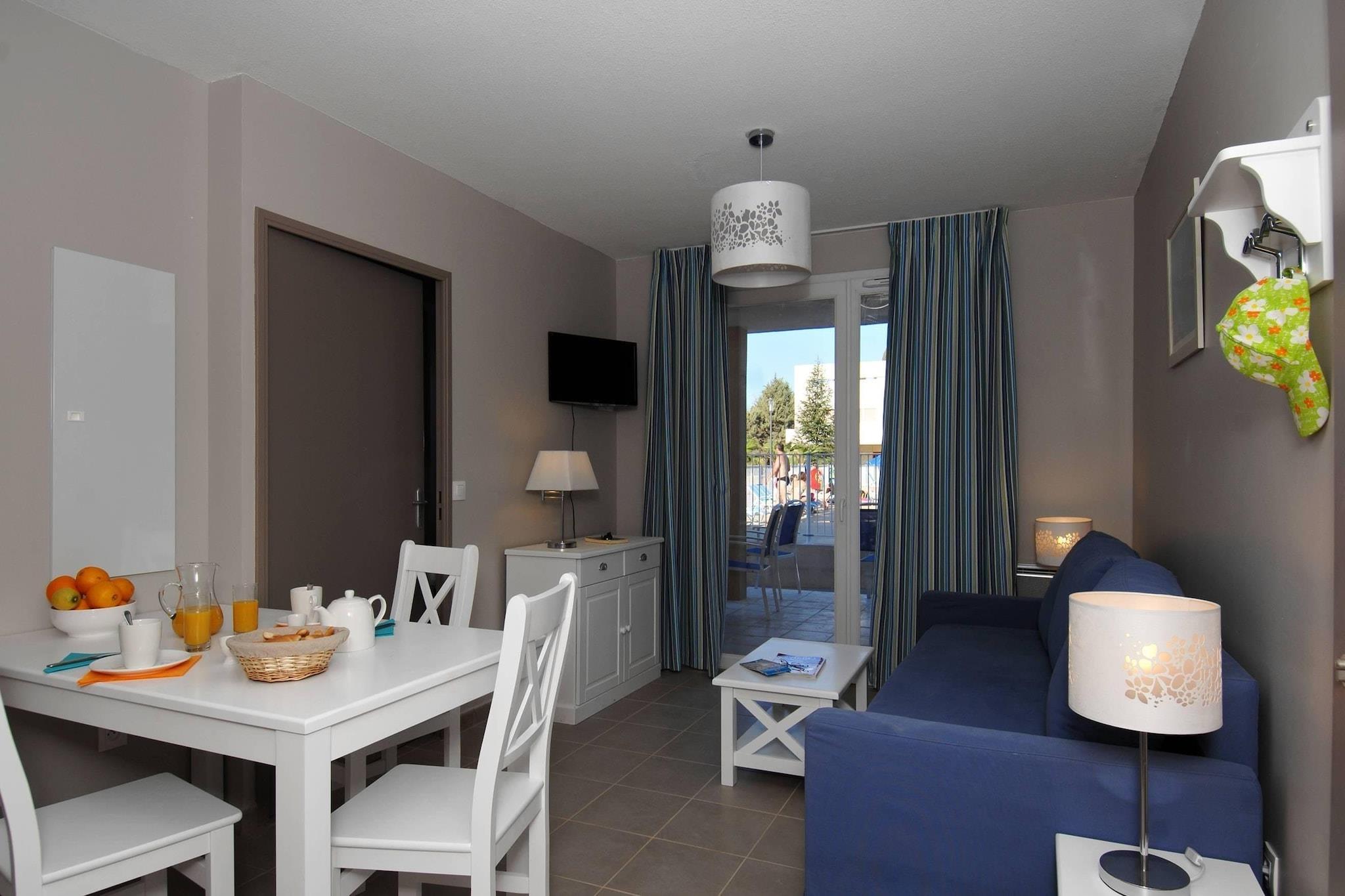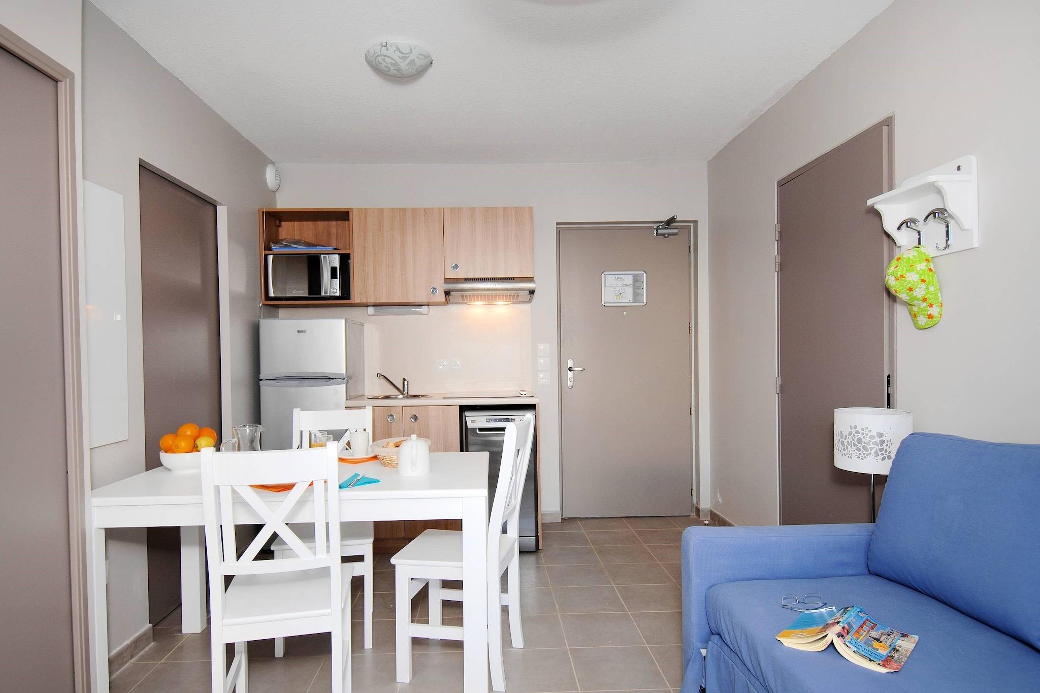 Tekøkken(kogeplade, brødrister, kaffemaskine, mikrobølgeovn, køle-fryseskab), Stue/soveværelse(dobbeltseng eller 2 enkeltsenge Senge), badeværelse(badekar eller bruser, toilet), swimmingpool(deles med andre gæster, udendørs)