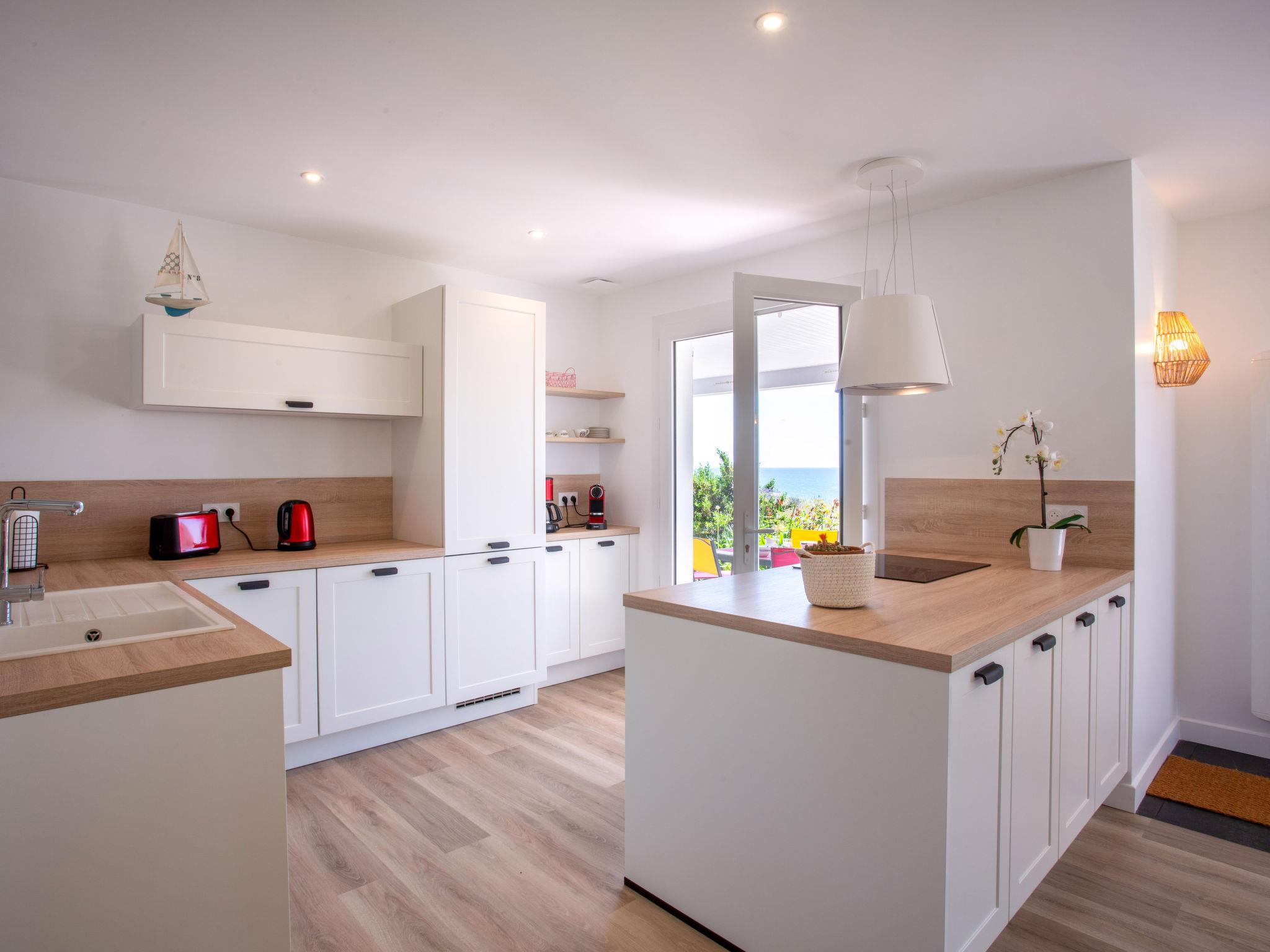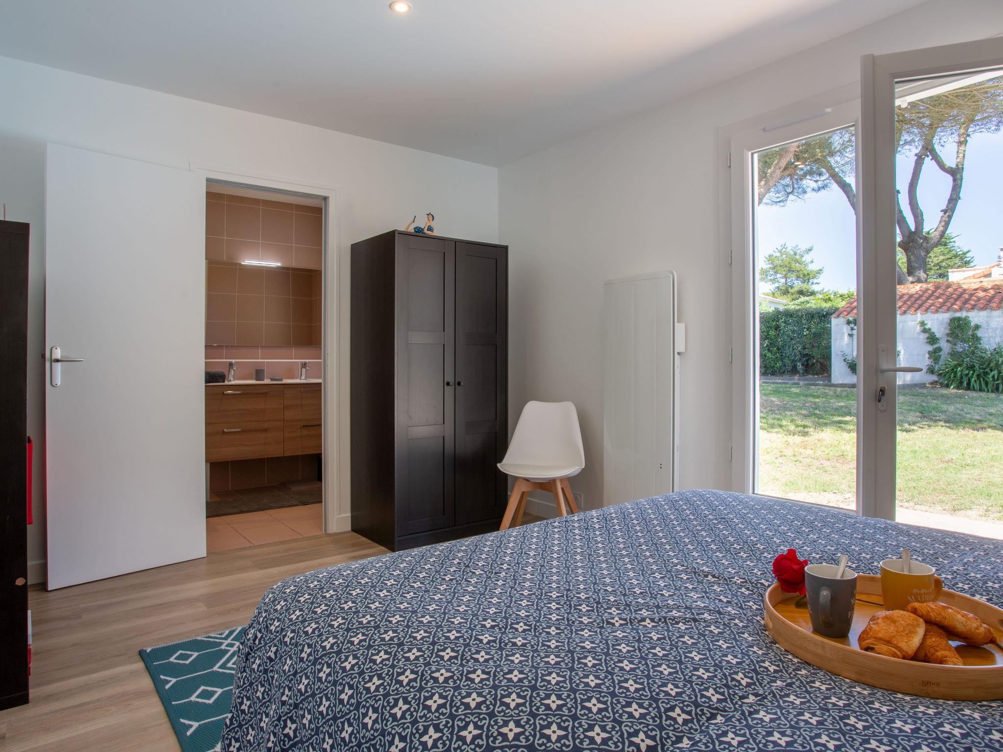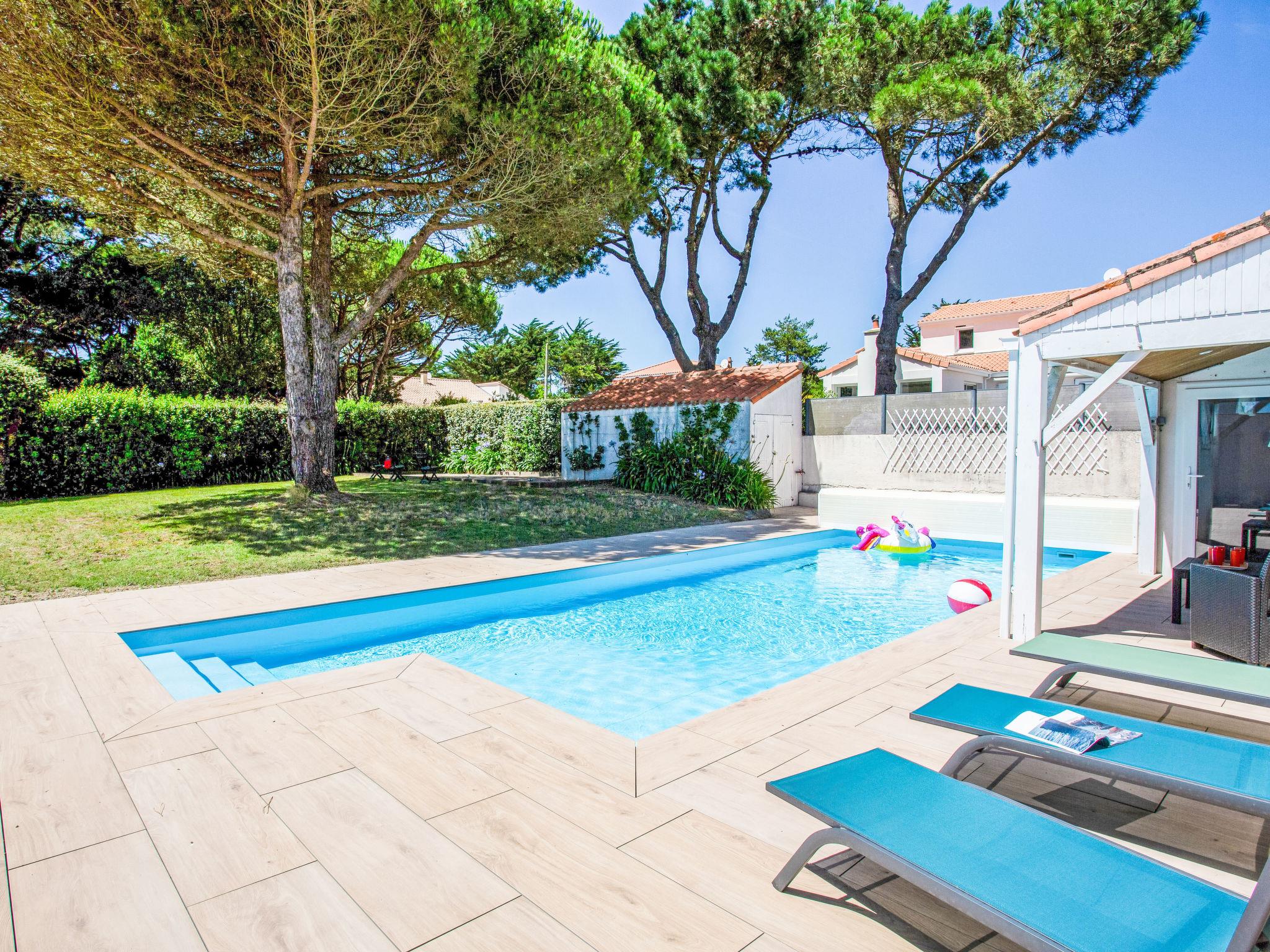 "Le Bigorneau Préfaillais", 4-room house 104 m2, south facing position. Spacious and bright, fully renovated in 2024, beautiful and tasteful furnishings: living/dining room with panoramic window north facing position and south facing position with dining table and TV (flat screen). Exit to the terrace, south facing position. 1 room with 1 french bed (1 x 160 cm, length 200 cm), shower/WC and double hand-basin. Exit to the swimming pool. 1 room with 2 beds (90 cm, length 190 cm). 1 room with 1 french bed (1 x 160 cm, length 200 cm). Large, open kitchen (oven, dishwasher, 1 ceramic glass hob hotplate, 4 gas rings, toaster, kettle, freezer, electric coffee machine, Capsules for coffee machine (Nespresso Krups) extra, cooking island). Shower/WC. Electric heating. Terrace 25 m2, south facing position, garden 400 m2, north facing position and south facing position. Terrace furniture. Marvellous view of the sea. Facilities: washing machine, children's high chair, baby cot for up to 2 year olds, hair dryer. Internet (WiFi, free). Parking (fenced 2 cars). Please note: non-smoking house. Smoke alarm. The pool mentioned in the description is for private use. Offer by a commercial proprietor according to Art. 155, IV, CGI 44136000050QV