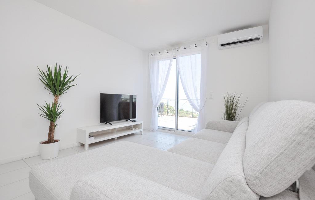 Lejligheden ligger i landregionen til Cote d'Azur og byder på en storslået udsigt over havet. Her kan I slappe af i en stilfuld atmosfære, som er præget af en lys og moderne indretning. Efter en lang dag på farten kan I læne jer tilbage i sofaen og snakke om dagens bedste oplevelser.