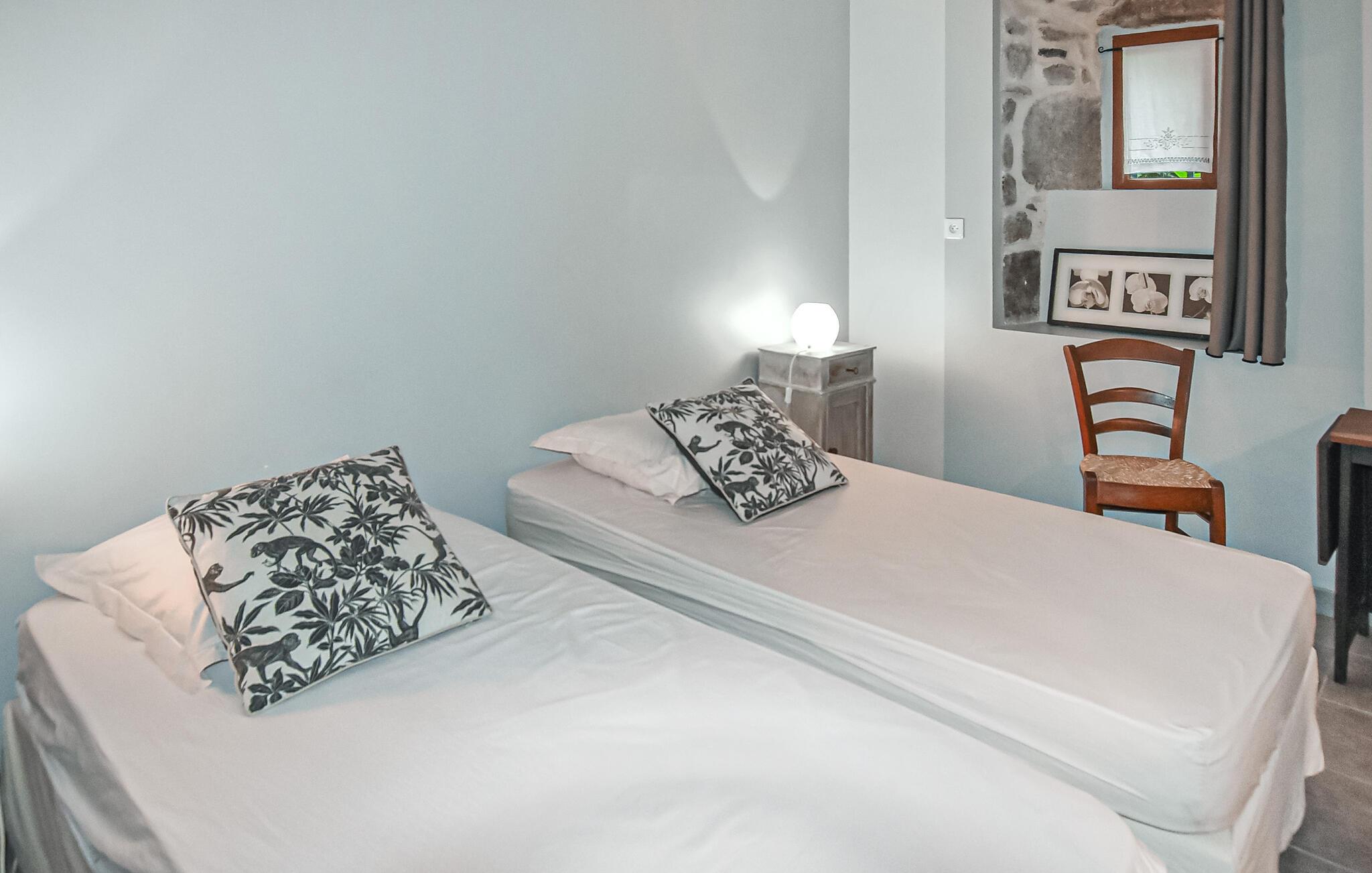 Nyd en afslappende ferie i dette autentiske feriehus, tæt på mange attraktive destinationer. Dette charmerende stenhus byder jer velkommen til hjertet af Monts d'Ardèche Regional Naturpark og inviterer jer til at tilbringe afslappende dage med venner eller familie. Tilbered lækre måltider, som I kan nyde ved det indbydende spisebord efter en lang dag med udforskning, og afslut dagen med en sjov spilleaften eller en god bog. Jeres panoramaterrasse med udsigt over dalen er det perfekte sted til morgenmad under åben himmel. Nyd et glas vin her ved solnedgang, og tilbered aftensmaden på grillen. Gå en tur langs Ardèche-flodens bredder, og tag en dukkert i det klare vand. Beundr Pont I Diable (Djævlebroen) og Ray-Pic-vandfaldet på en vandretur. Udforsk Aubenas og Vallon-Pont-d'Arc, og oplev de berømte Aven d'Orgnac-huler. Cykl gennem charmerende landsbyer som Vogüé eller Balazuc, prøv lokale specialiteter på regionale markeder, og besøg de historiske slotte i området.