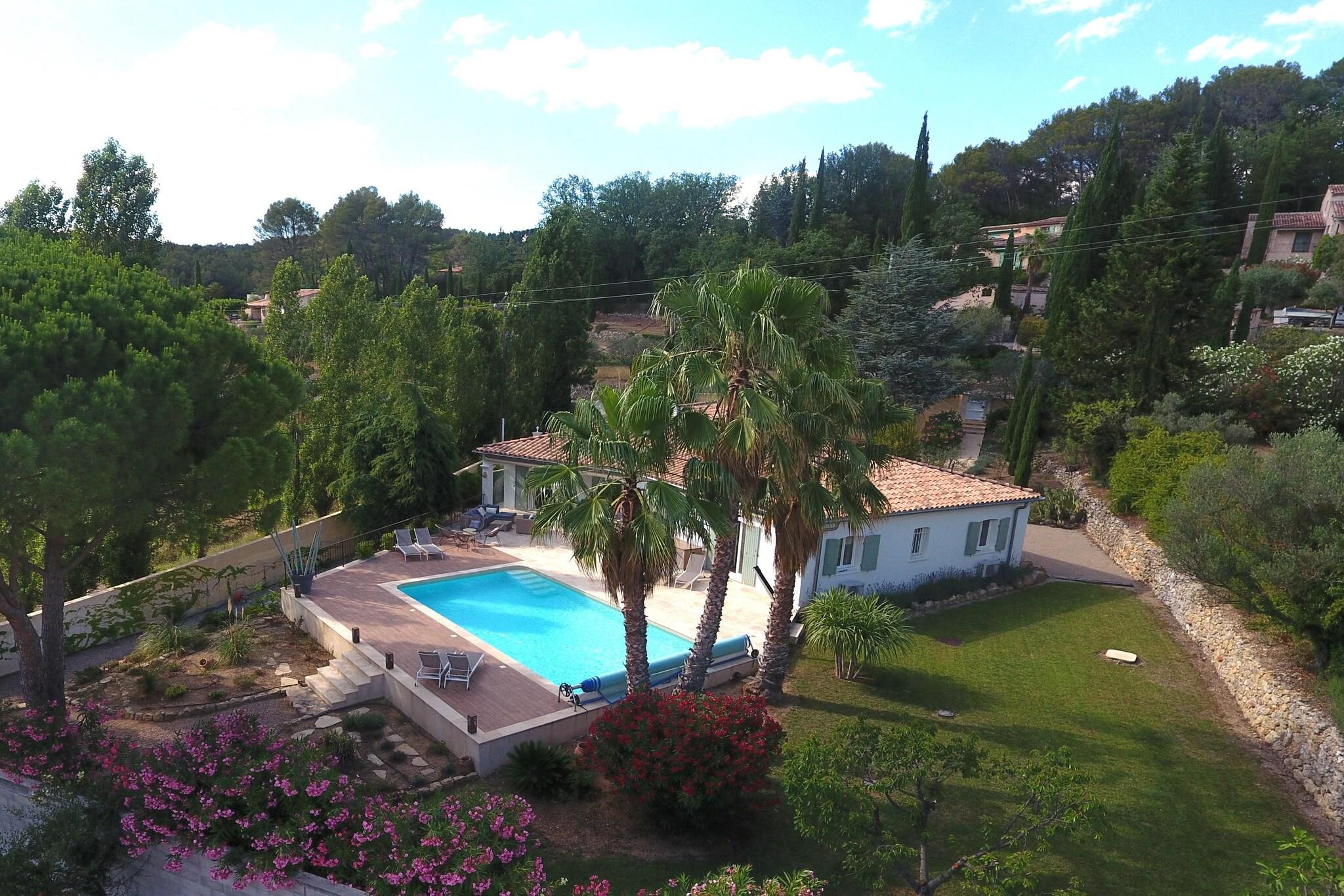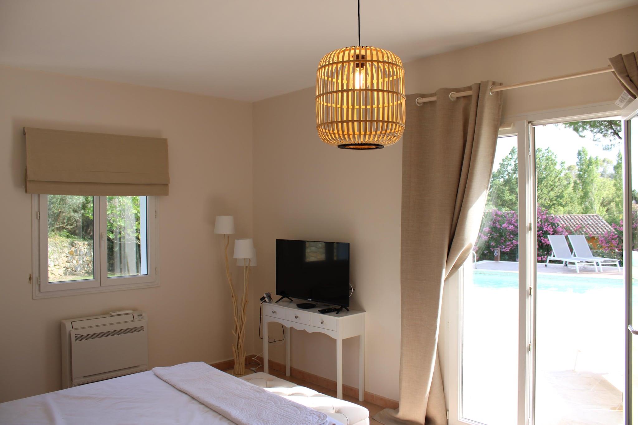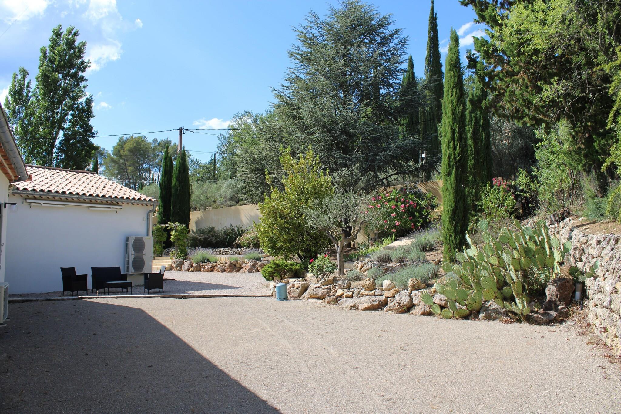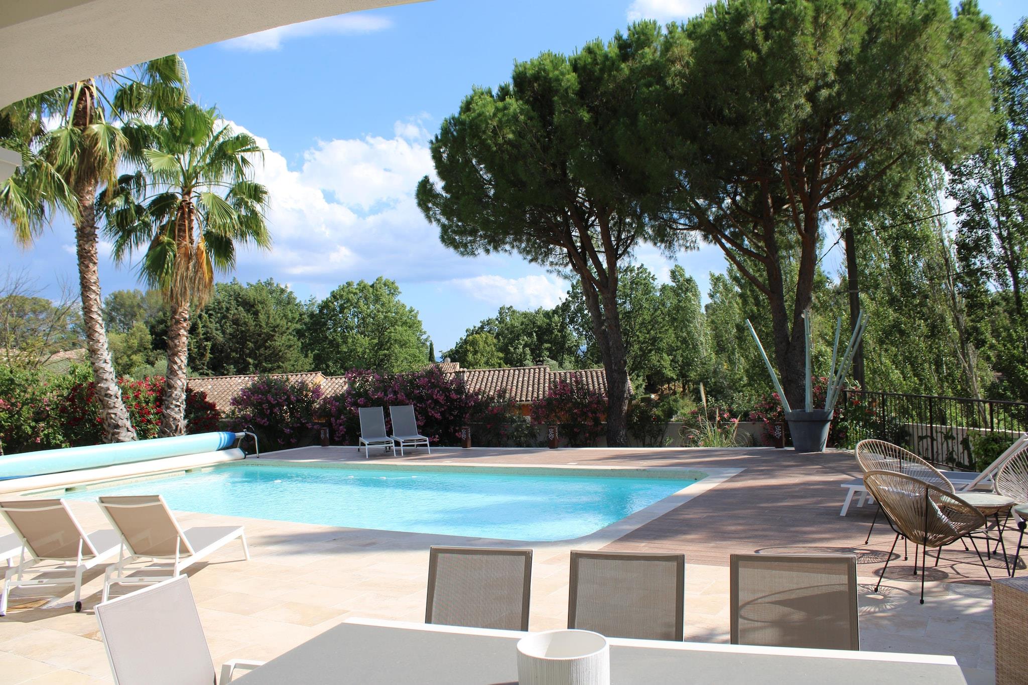 Omgivet af landlige grønne områder og langs en stille vej mellem Lorgues og Saint-Antonin-du-Var, ligger den smukke Villa des Trois Palmiers på en 1700 m² stor ejendom med en jeu de boules-bane og palmer. Vel igennem den elektriske indgangsport er der plads til ca. 4 biler. Lorgues er en charmerende provencalsk landsby i hjertet af Provences berømte vinregion. Det er en ideel destination for rejsende, der leder efter fred og afslapning i maleriske omgivelser. Landsbyen er kendt for sin middelalderlige arkitektur og smalle gader, hvor du kan finde adskillige butikker, restauranter og caféer. Der er også talrige historiske seværdigheder at opdage, såsom den romanske kirke og borgruinerne. Ankomsthallen fører til en stor stue med masser af lysindfald og direkte adgang til terrasseområdet og swimmingpoolen. Det enkle interiør får alt til at se rummeligt ud, og der er en siddegruppe med hvide sæder og et rummeligt spisebord. Dernæst vil du finde et fuldt udstyret køkken til at tilberede et lækkert måltid. Det store soveværelse er beliggende mod syd med en smuk udsigt over poolen og et af soveværelserne er ideelt for børnene. Huset er udstyret med aircondition og gulvkøling. Begge systemer kan laves om til varmeanlæg på koldere dage. Den overdækkede terrasse med et dejligt udendørsbord giver den nødvendige skygge, du kan arrangere hyggelige grillfester og nyde solrige dage i eller omkring poolen på de komfortable liggestole. Tænd for swimmingpoolvarmen sker altid efter anmodning og mod betaling og er kun muligt uden for sommermånederne. I månederne juli og august har vandet i sig selv en vidunderlig temperatur.