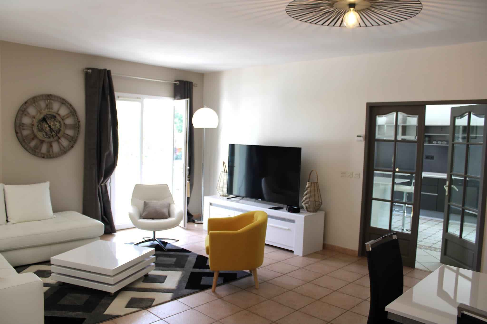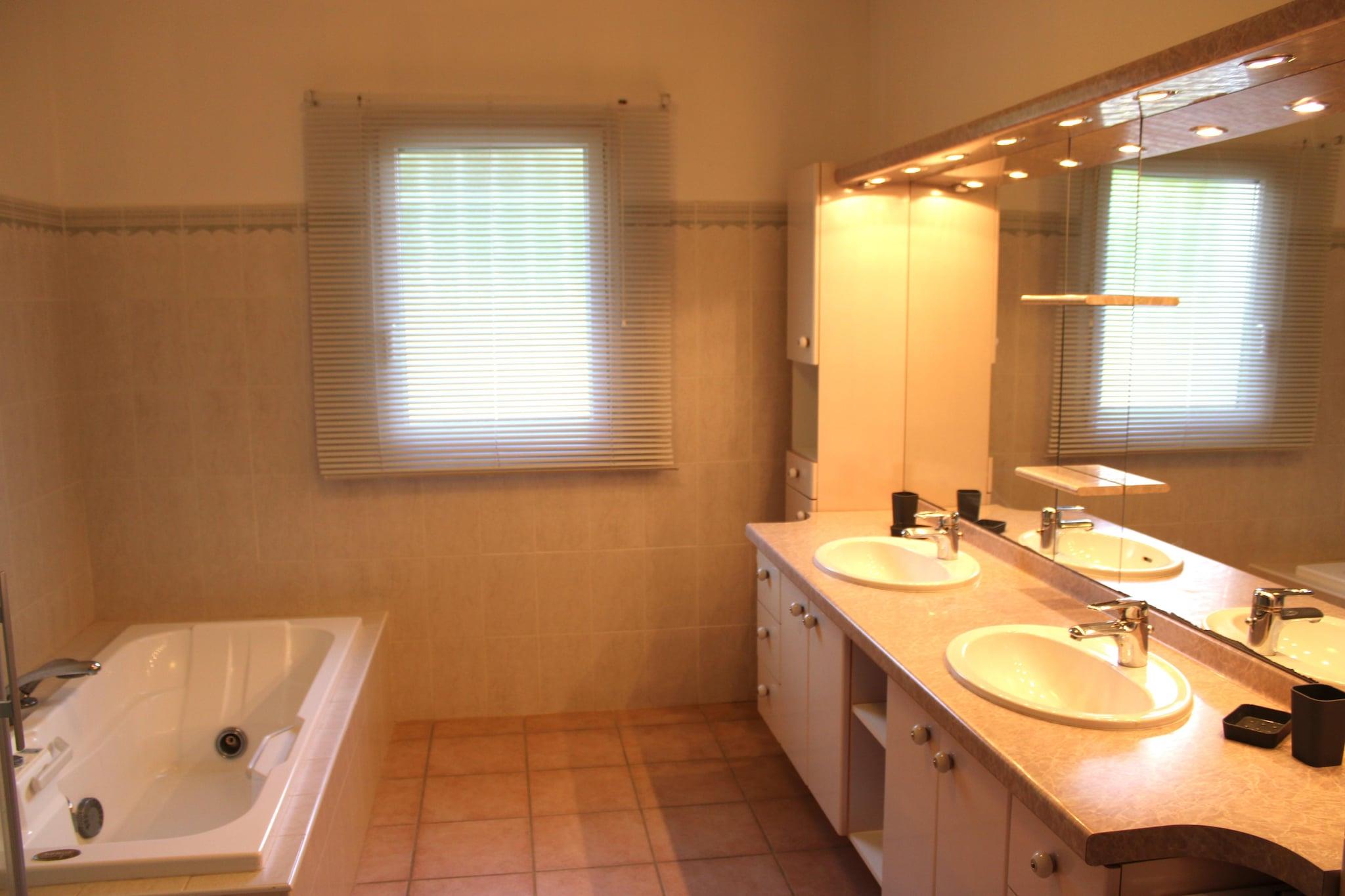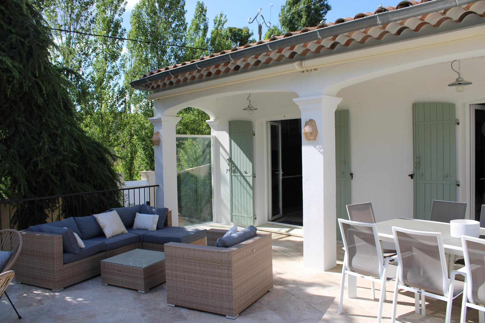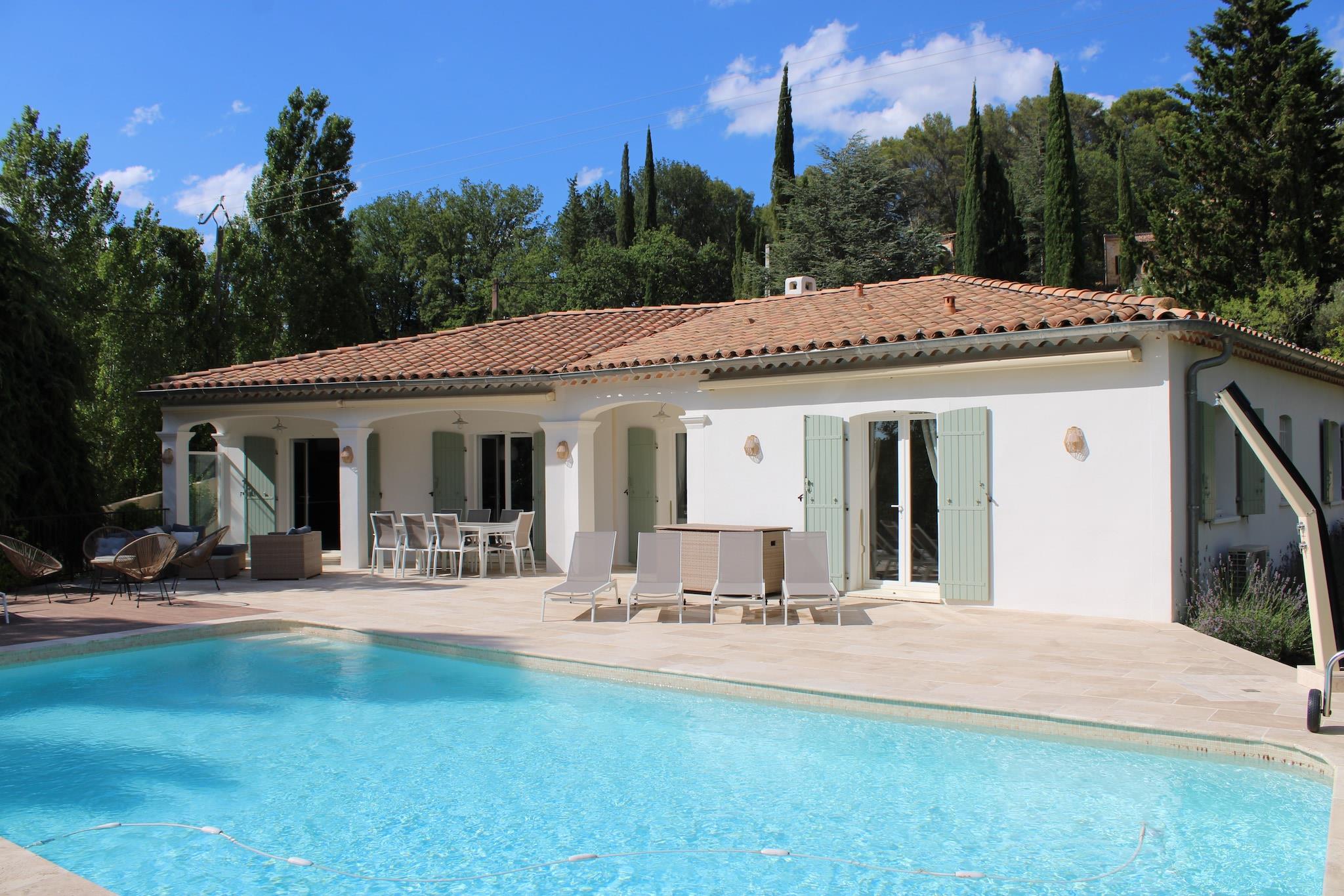 Omgivet af landlige grønne områder og langs en stille vej mellem Lorgues og Saint-Antonin-du-Var, ligger den smukke Villa des Trois Palmiers på en 1700 m² stor ejendom med en jeu de boules-bane og palmer. Vel igennem den elektriske indgangsport er der plads til ca. 4 biler. Lorgues er en charmerende provencalsk landsby i hjertet af Provences berømte vinregion. Det er en ideel destination for rejsende, der leder efter fred og afslapning i maleriske omgivelser. Landsbyen er kendt for sin middelalderlige arkitektur og smalle gader, hvor du kan finde adskillige butikker, restauranter og caféer. Der er også talrige historiske seværdigheder at opdage, såsom den romanske kirke og borgruinerne. Ankomsthallen fører til en stor stue med masser af lysindfald og direkte adgang til terrasseområdet og swimmingpoolen. Det enkle interiør får alt til at se rummeligt ud, og der er en siddegruppe med hvide sæder og et rummeligt spisebord. Dernæst vil du finde et fuldt udstyret køkken til at tilberede et lækkert måltid. Det store soveværelse er beliggende mod syd med en smuk udsigt over poolen og et af soveværelserne er ideelt for børnene. Huset er udstyret med aircondition og gulvkøling. Begge systemer kan laves om til varmeanlæg på koldere dage. Den overdækkede terrasse med et dejligt udendørsbord giver den nødvendige skygge, du kan arrangere hyggelige grillfester og nyde solrige dage i eller omkring poolen på de komfortable liggestole. Tænd for swimmingpoolvarmen sker altid efter anmodning og mod betaling og er kun muligt uden for sommermånederne. I månederne juli og august har vandet i sig selv en vidunderlig temperatur.