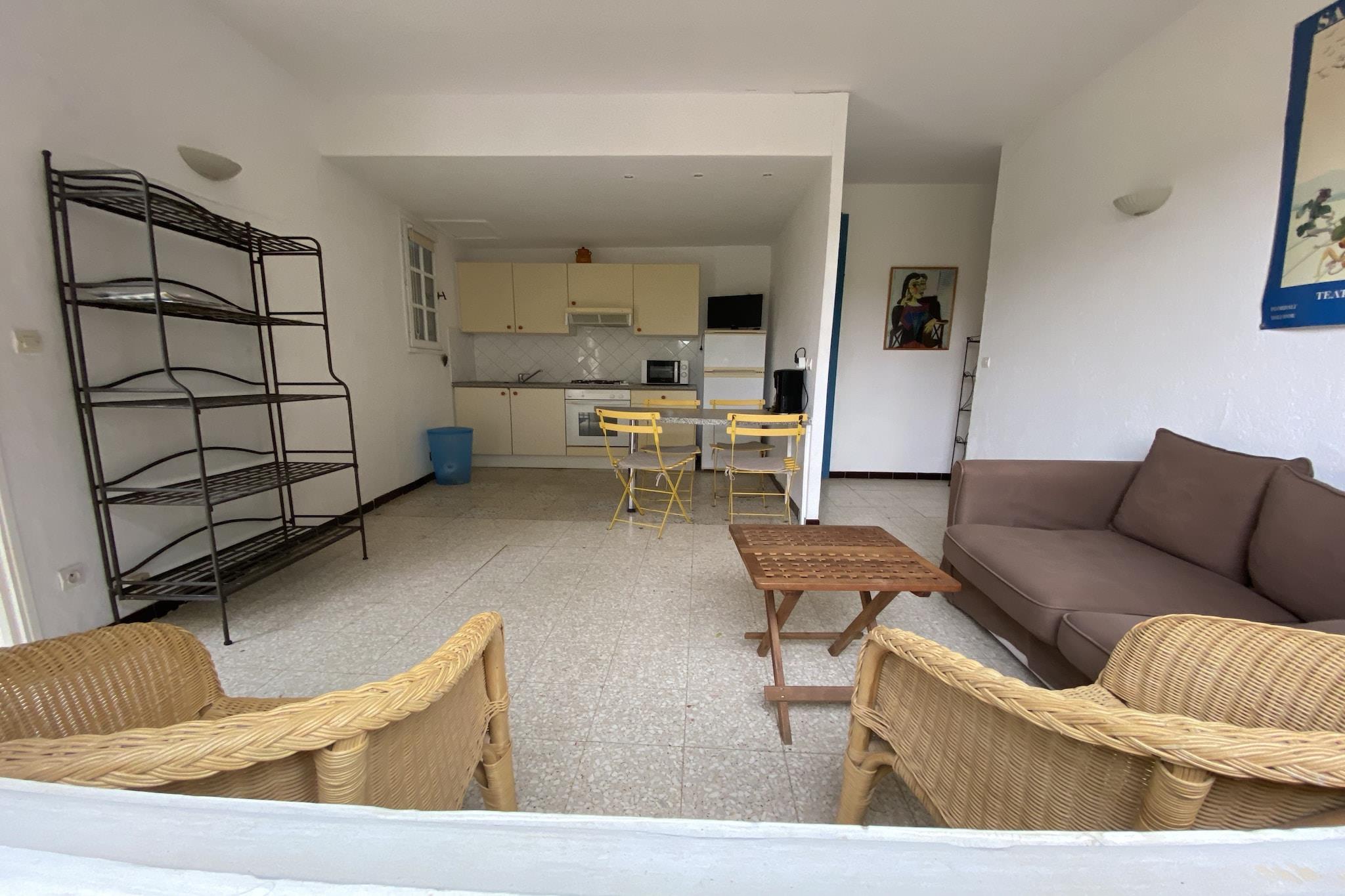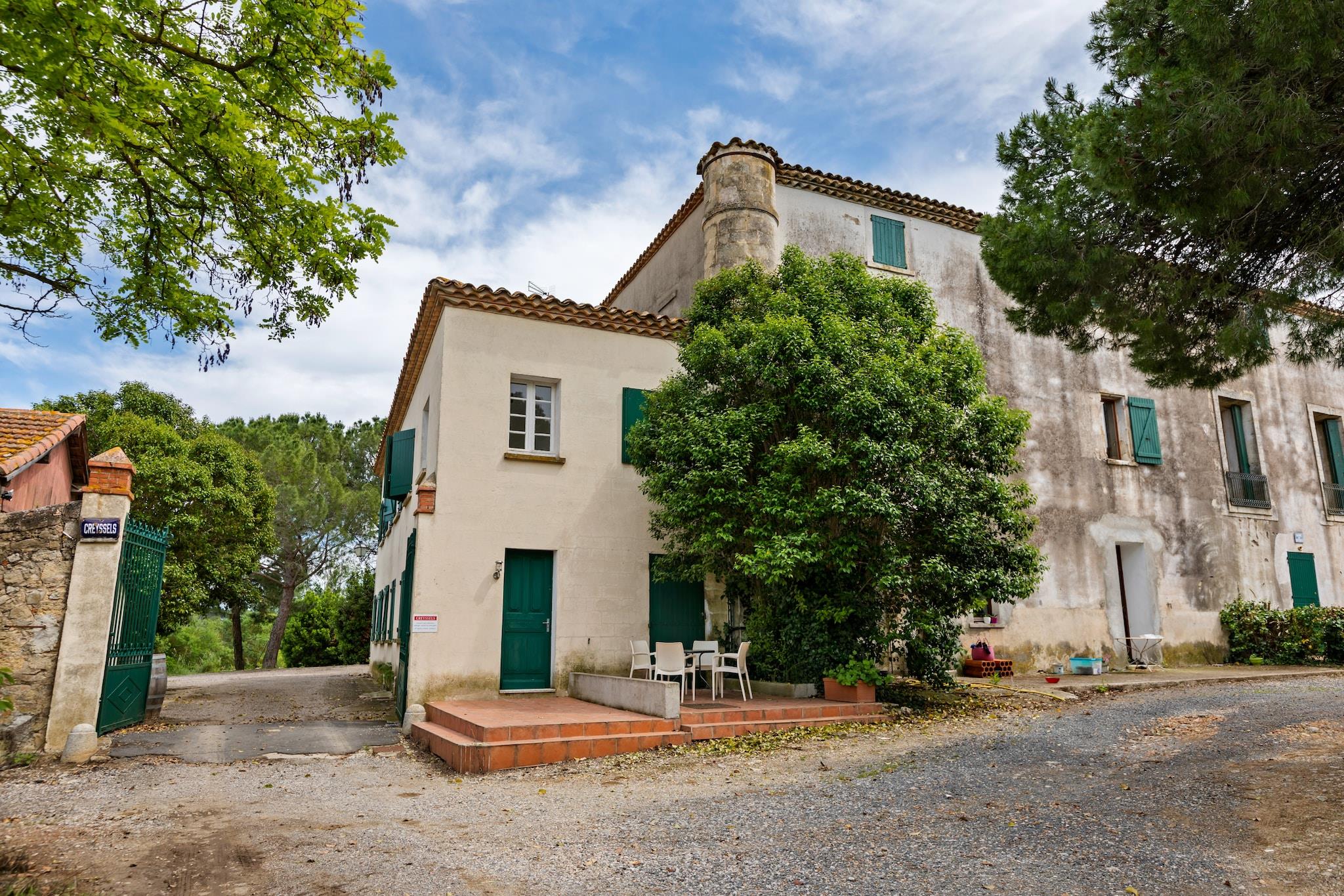 Beliggende blandt vinmarkerne i Monprimblanc tilbyder denne hyggelige 2-værelses lejlighed et fredeligt tilflugtssted for familier eller venner. Beliggende kun 10 km fra havet, kombinerer det landlig charme med adgang til kysten. Fra onsdag til søndag kan du nyde lækre måltider tilberedt af ejerne i deres køkken på stedet, parret med lokale vine. Søndag aftener byder på festlig musik indtil midnat, hvilket tilføjer et livligt præg til dit ophold. Lejligheden ligger på første sal i en smukt restaureret bygning og omfatter en privat have i en stor park. Gæsterne kan slappe af ved den fælles swimmingpool med udsigt over landskabet eller nyde spil i fællesrummet med bordfodbold og trådløs internetadgang. Børn er velkomne, med legeredskaber, en høj stol og en børneseng. Udforsk det nærliggende Mèze (5 km) med sin charmerende havn og søndagsmarked, eller tag til Cap d'Agde, Sète og Montpellier.