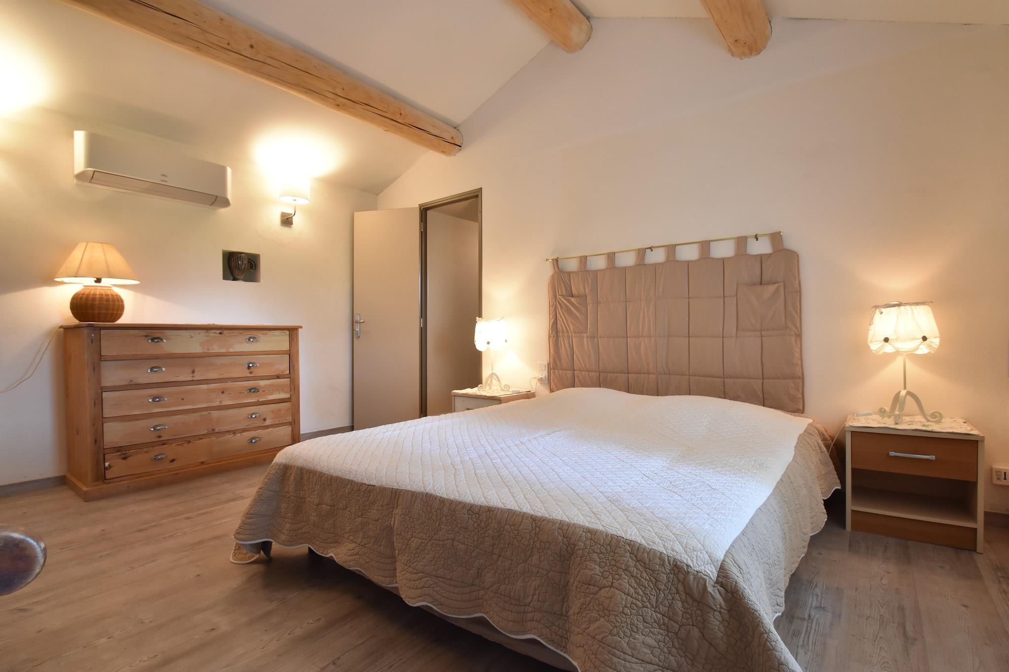 Med en fantastisk udsigt over Mont Ventoux er denne villa i Malaucène enhver ferierejsendes drøm, der går i opfyldelse. Med en kapacitet til 6 personer i sine 3 soveværelser har denne ejendom en privat infinity-swimmingpool, hvor du kan nyde en svømmetur midt i udsigten, og en overdækket terrasse til at slappe af i naturens skød. Du kan besøge Malaucènes bymidte med butikker, caféer, restauranter osv., 2 km, og tennisbanen 3 km. Genoplad dine trætte sjæle ved flodens skønhed, 15 km væk. Du kan slappe af på liggestolene og blive solbrændt, mens børnene kan lege i haven. Aircondition samt opvarmning er tilgængelig for at holde dig komfortabel indendørs. Parkering er på stedet. Der er også køkken og grill til rådighed, så du kan nyde at lave mad. Barneseng og høj stol er også tilgængelig på anmodning. Marseille Lufthavn ligger 100 km derfra. Bemærk- Fra 1. januar 2024 vil du være i stand til at genoplade dine elbiler med en pakke på EURO50/bil/uge.