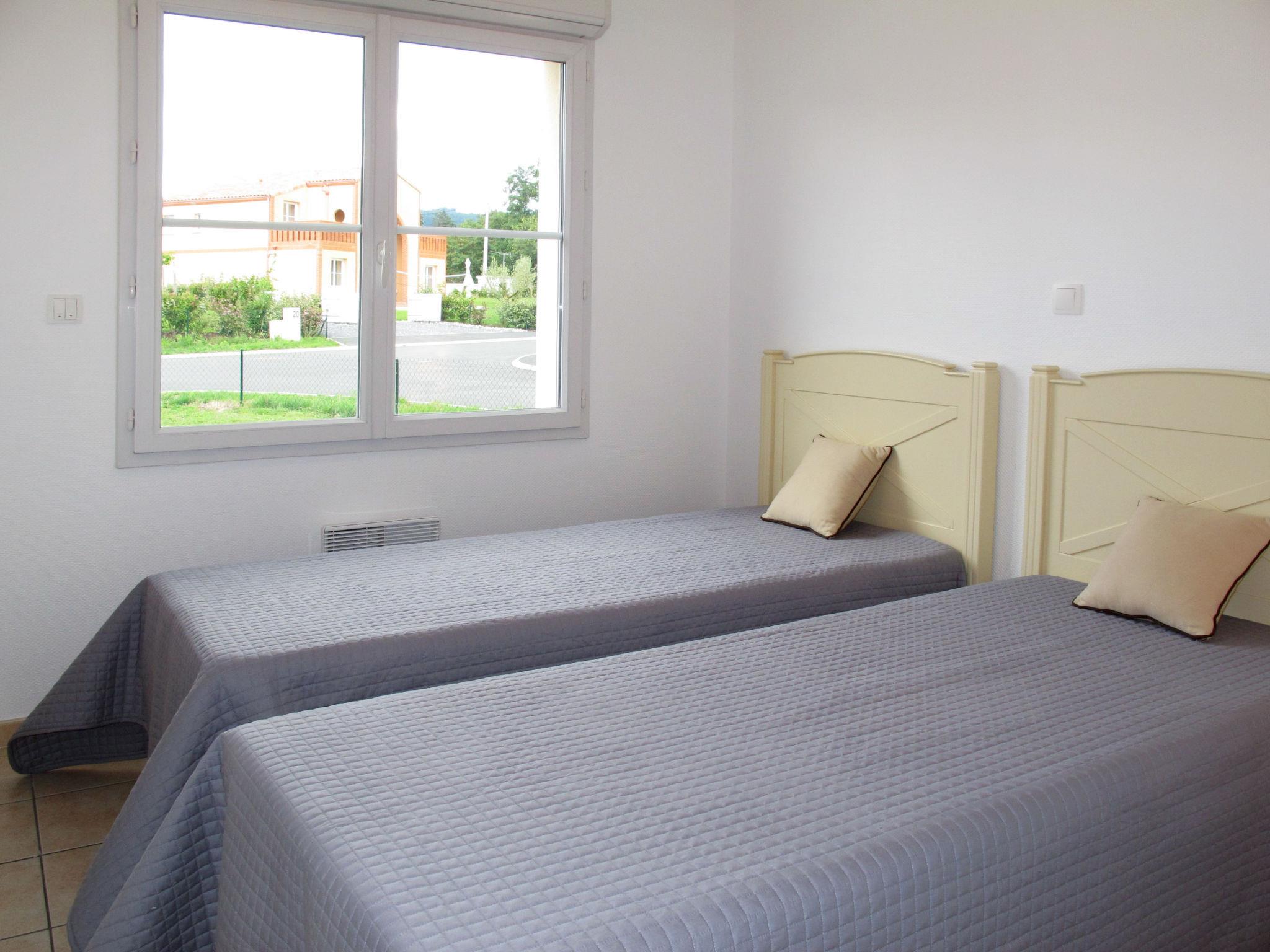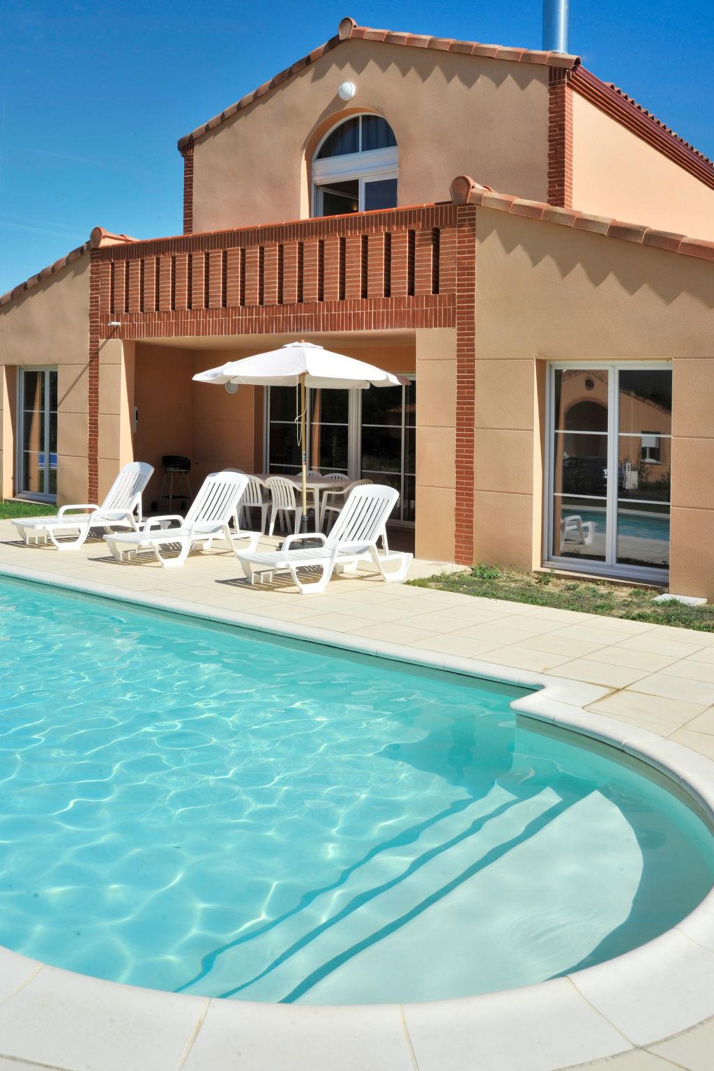 Resort "Domaine Royal Green". 3 km from the centre of Mazamet, 17 km from the centre of Castres, 60 km from the centre of Albi, 100 km from the sea. For shared use: property 2 ha with lawn and plants. Private: natural state property 800 m2 with lawn, swimming pool (8 x 4 m, seasonal availability: 11.Apr. - 17.Oct.) with internal staircase. Terrace. In the complex: reception. Bread roll service. Parking at the house. Supermarket 3 km, restaurant 600 m, bus stop "Labruguière" 13 km, indoor swimming pool 3 km, bathing lake "Lac de Montagnès" 10 km. Golf course (18 hole) 600 m. Please note: the photograph shows a typical example. The holiday properties may differ in living space, floorplan, equipment and furnishing.