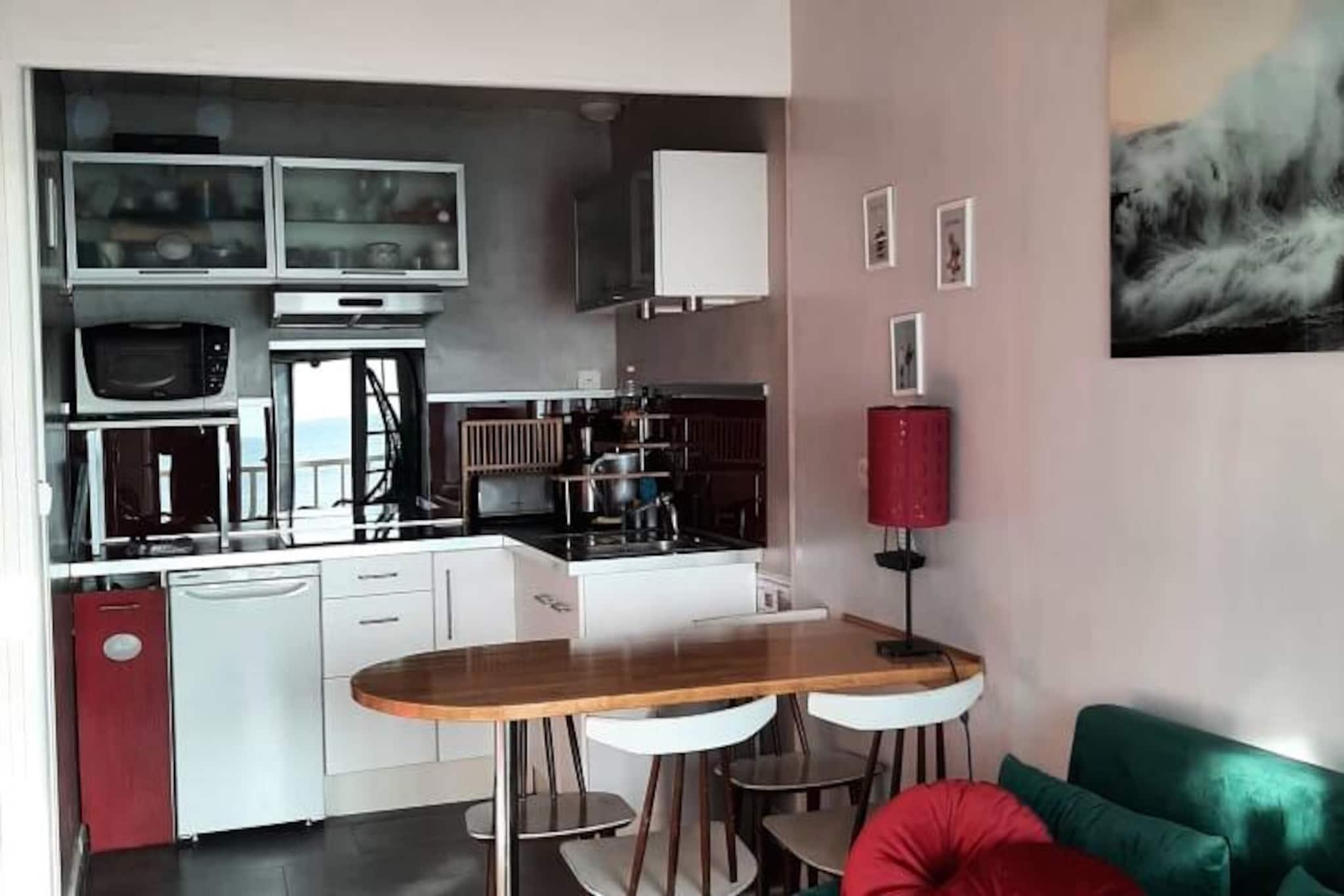 Forestil dig at vågne op til den beroligende lyd af bølger og synet af havet, der strækker sig uendeligt foran dig. Denne charmerende lejlighed ved havet, der er klassificeret som et 2-stjernet møbleret turistophold, tilbyder den perfekte romantiske ferie eller fredelige tilbagetrækning. Lejligheden ligger på 4. sal og belønner dig med en enestående panoramaudsigt over fyrtårnet, det glitrende hav og de dramatiske klipper langs kysten – en udsigt, der gør hvert trin op ad trappen værd. Her smelter roen og kunsten at leve sammen og skaber uforglemmelige minder. Indvendigt er lejligheden omhyggeligt designet med henblik på komfort og afslapning. Den hyggelige stue indbyder til afslapning med dine yndlingsprogrammer på tv, mens det fuldt udstyrede køkken og spiseplads danner rammen om intime middage. Det moderne badeværelse tilføjer et strejf af bekvemmelighed, og det omhyggeligt indrettede soveværelse med sin bløde dobbeltseng og blide kyststemning sikrer en god nats søvn. Et lille skrivebordshjørne giver et roligt sted at skrive postkort eller arbejde. For et strejf af romantik kan du sætte dig i de hængende kærestestole på altanen og lade den betagende udsigt fortrylle dig. Denne lejlighed ligger i hjertet af Tréport, hvor du har nem adgang til byens livlige charme. Gå en tur langs strandpromenaden, udforsk de lokale butikker eller nyd friske fisk og skaldyr på de nærliggende restauranter. Bemærk, at strandpromenaden er lukket for trafik fra kl. 11 til 22 i sommermånederne og i weekenderne, hvilket sikrer en fredelig og fodgængervenlig atmosfære. Uanset om du søger en fredelig oase eller et romantisk eventyr ved havet, er denne lejlighed dit perfekte tilflugtssted. Book dit ophold, og lad dig fortrylle af den franske kysts skønhed.
