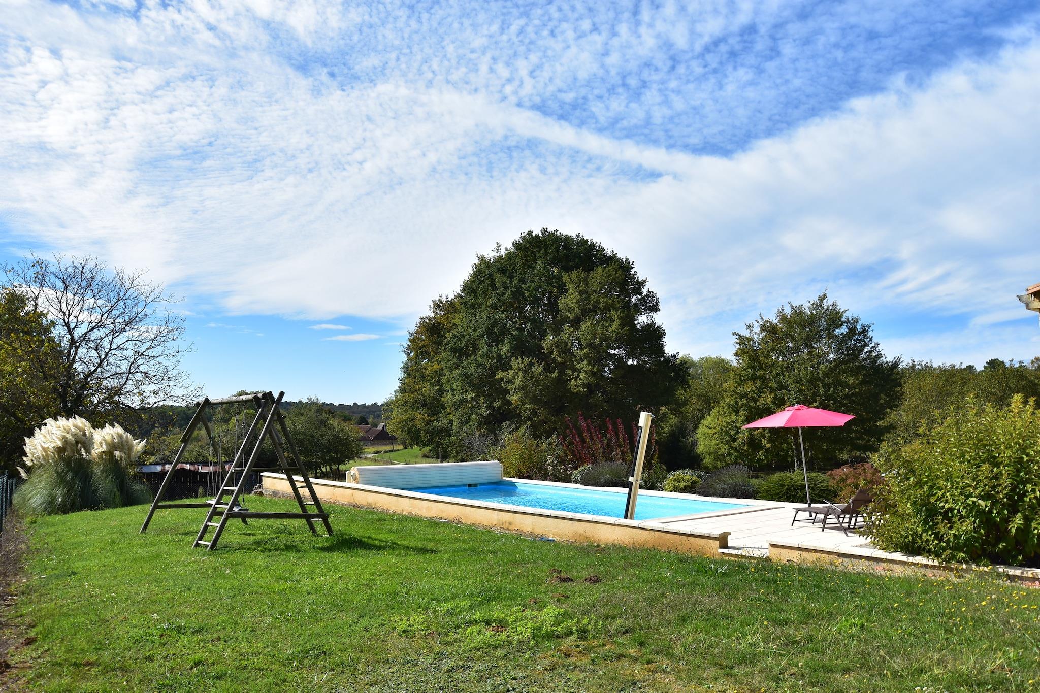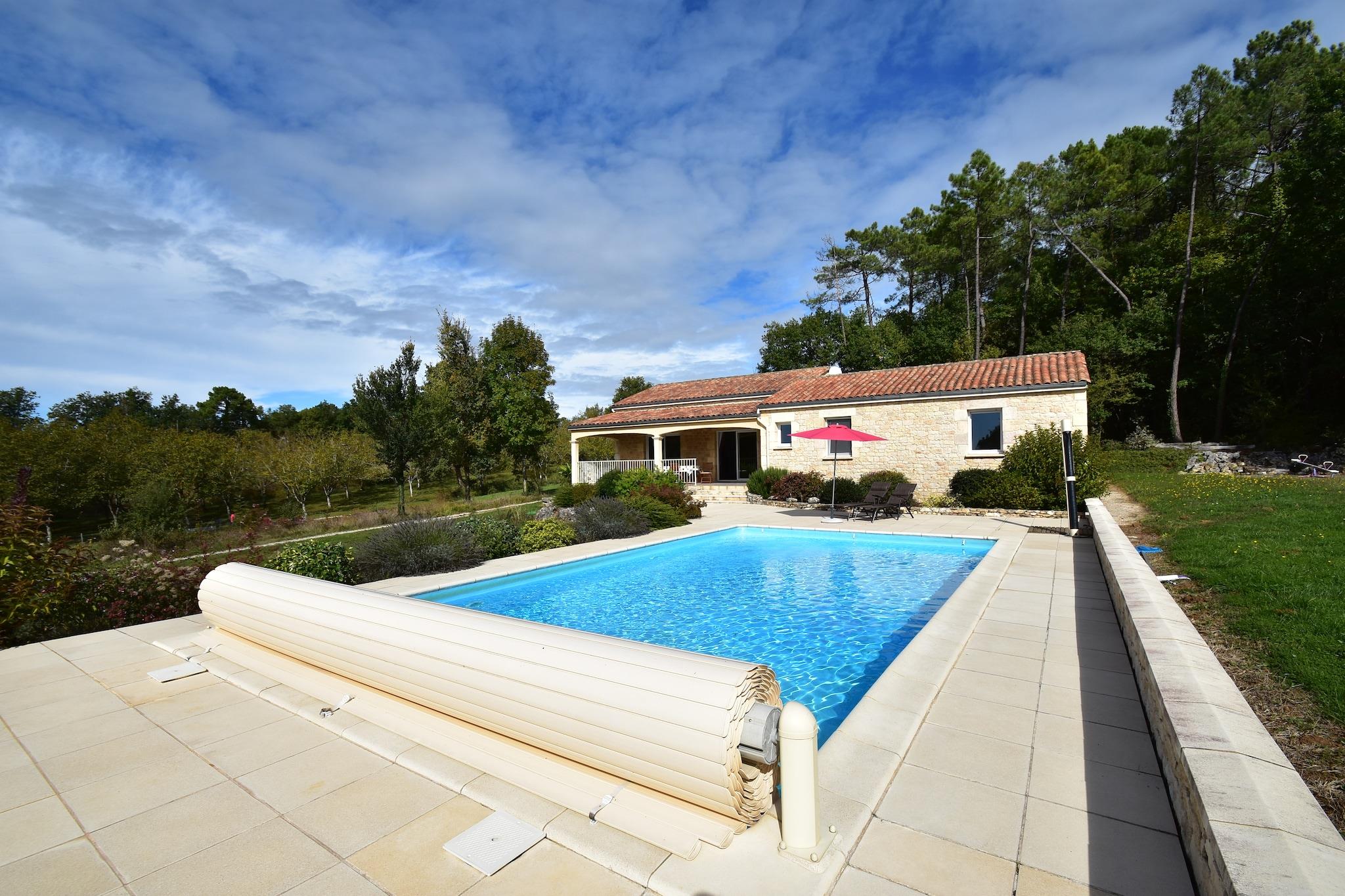 Dette hus ligger på pilgrimsrejsen til Santiago de Compostella. Det blev bygget med meget kærlighed og omsorg i 2011. Omkring har du en stor, solrig have med legeplads, gynger, en sandkasse, et dias og en dejlig elektrisk lukkbar privat swimmingpool! Tag en dukkert, og så gå i sol på en af solsenge! Der er to overdækkede terrasser; en gårdhave med møbler og grill ved poolen og en plads på bagsiden på bowlingbane med en (anden) grill. Indendørs er indretningen pæne og velplejede. Du vil føle dig hjemme på ingen tid! Området er særligt velegnet til vandreture og cykling! På cykel kommer du hurtigt til Les Arques (5 km) for at besøge Zadkine-museet. Efter en lækker frokost på restaurant La Récréation kan du cykle videre til Smuk sø Frayssinet (7 km) til en eftermiddag ved vandet. Du kan finde en anden lille sø i Cazals (5 km) .Andre dejlige steder i området er Gourdon (23 km) med sit livlige centrum og udsigtspunkt og bastiden Villefranche- du-Périgord (17 km) i Dordogne regionen.
