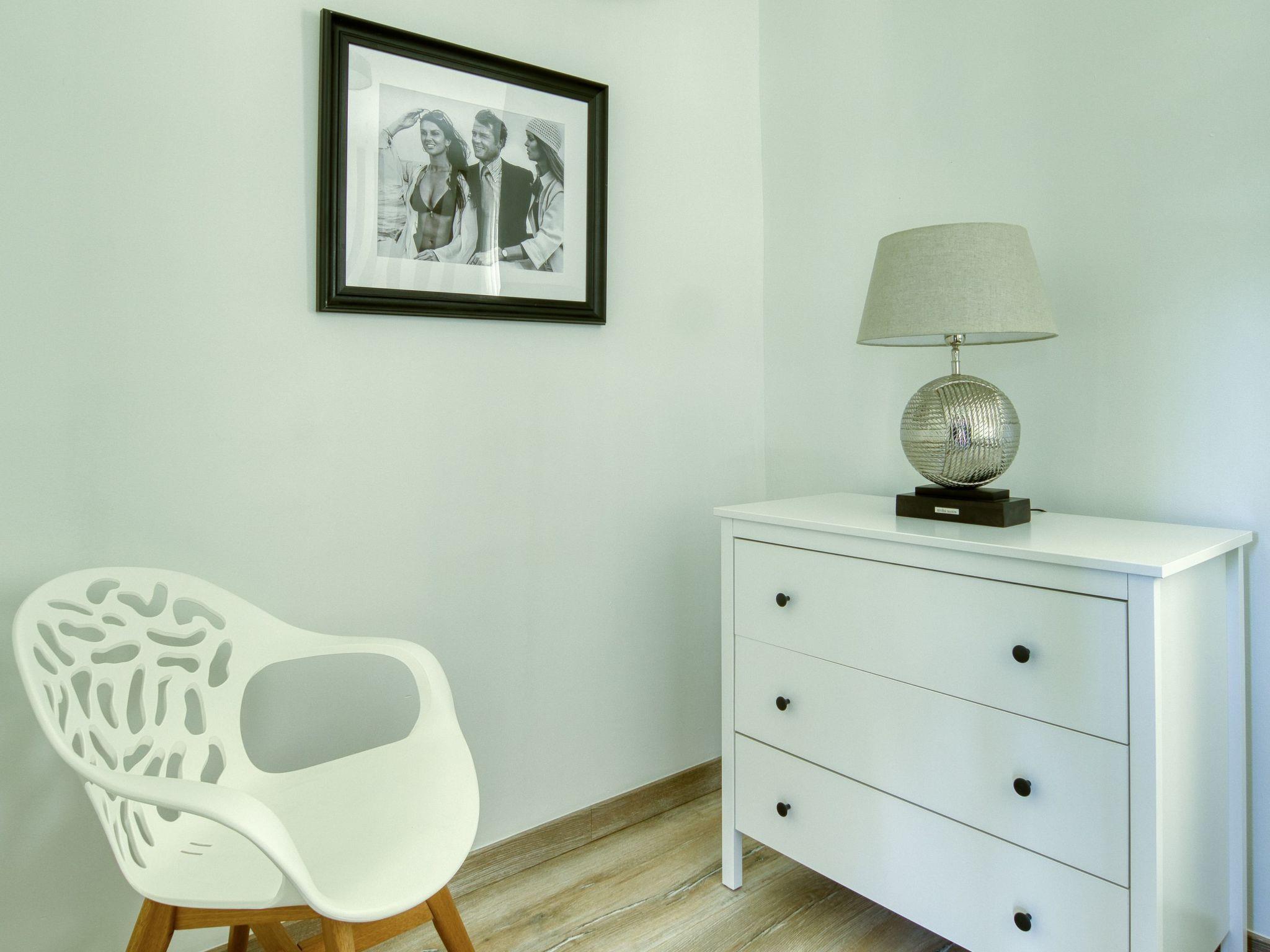 The interior leaves nothing to be desired. Three comfortable double bedrooms, including a master bedroom with walk-in wardrobe and balcony, as well as an open-plan kitchen/living room with dining area provide the ideal setting for a relaxing family holiday. The two bedrooms on the ground floor are equipped with box-spring beds and air conditioning to ensure a perfect night's sleep. In addition, modern amenities such as a fully equipped kitchen, washing machine, WiFi and UHD TV with soundbar and access to Netflix and Prime (own subscription required) make your stay comfortable and enjoyable.