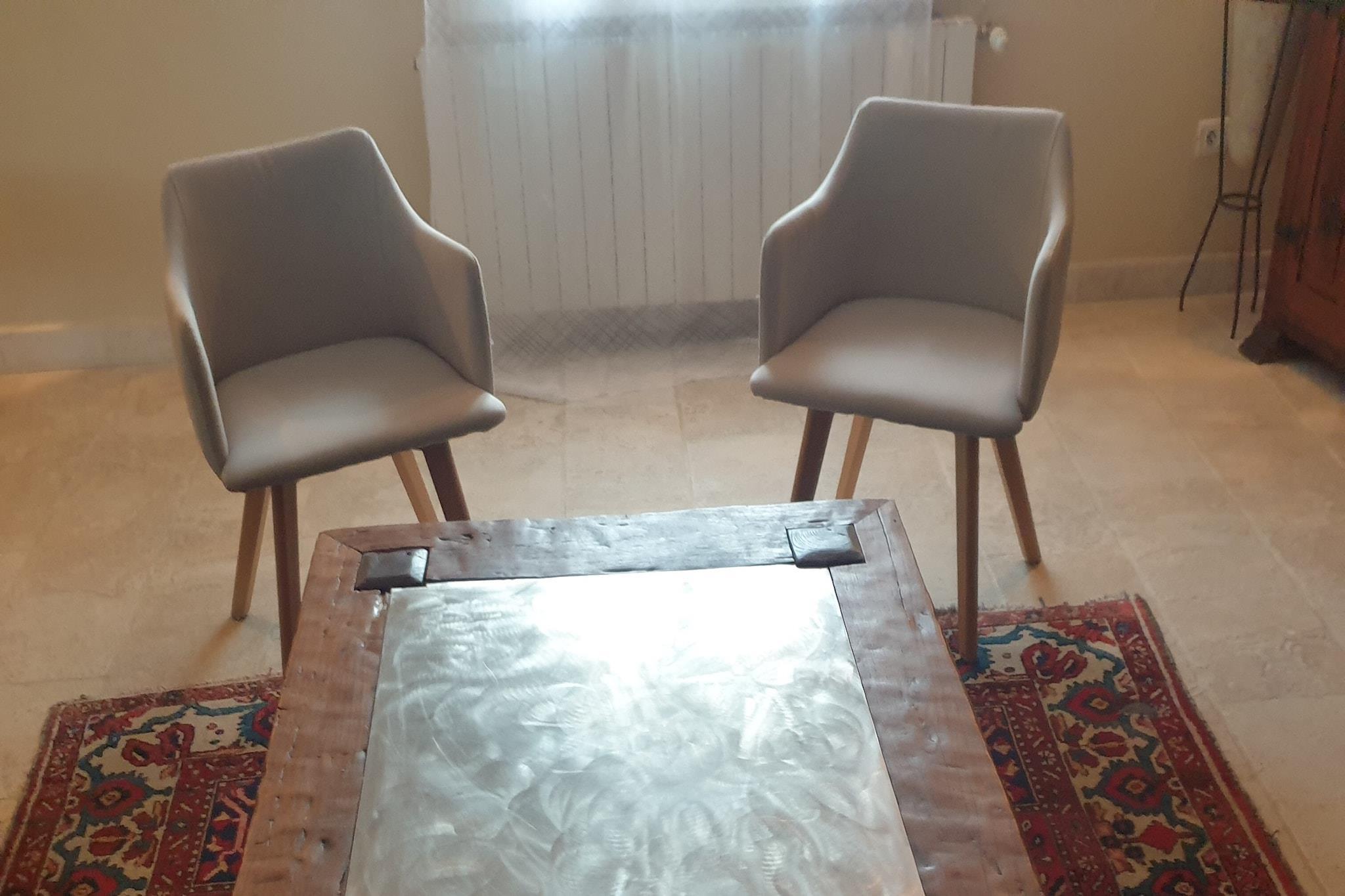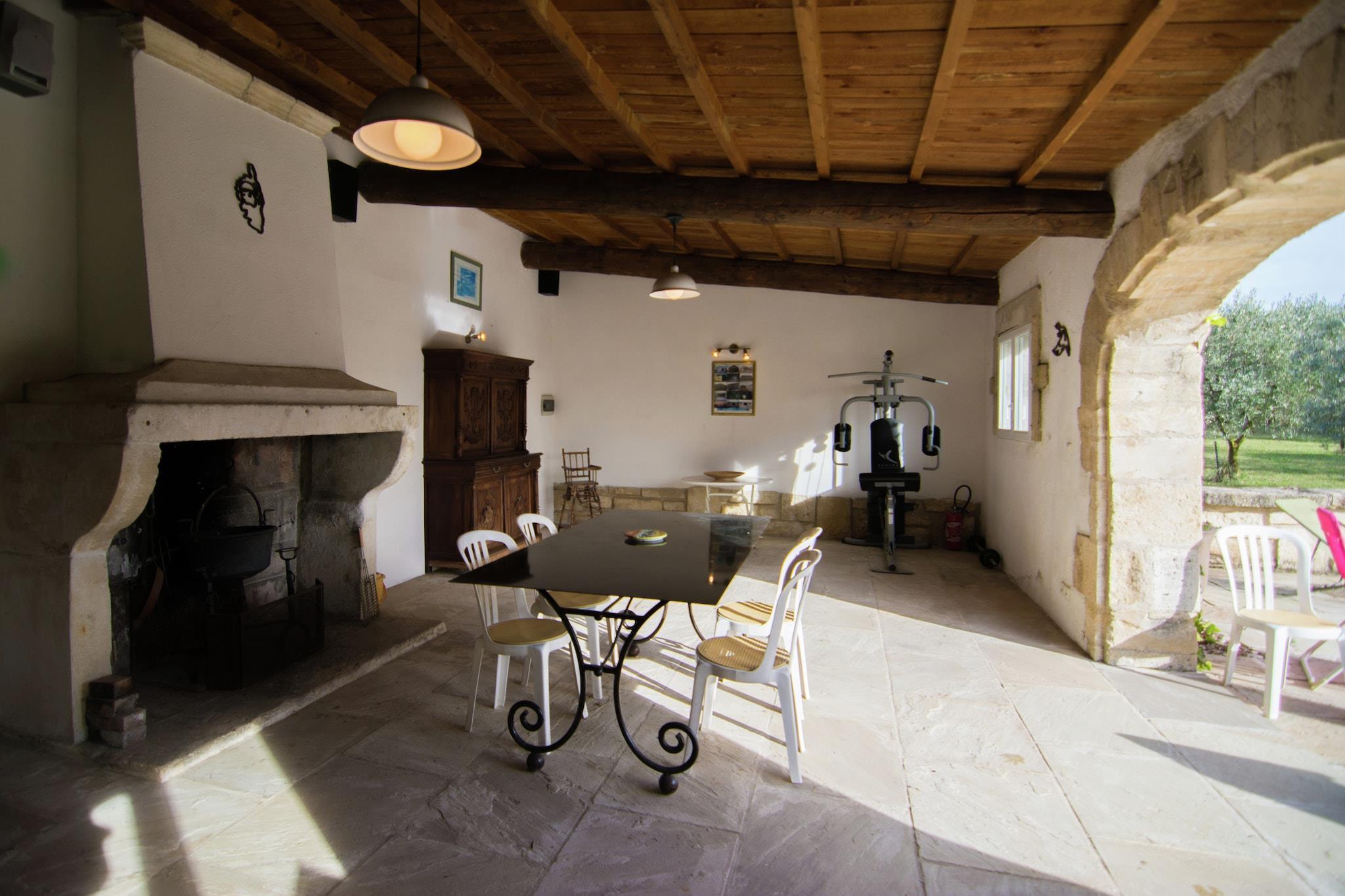 Gemt væk blandt vinmarkerne i Montfrin, tilbyder denne smukke ferievilla en fredelig flugt kun få minutter fra Nîmes. Ideel til familier eller venner, hjemmet kan rumme op til 5 gæster og har to soveværelser, to badeværelser og et charmerende interiør med traditionelt murværk og møbler. Den fuldt lukkede have er fyldt med palmer og århundredgamle oliventræer og omfatter en privat swimmingpool med massagedyser, en terrasse med liggestole og et dejligt udendørs køkken til at tilberede måltider al fresco. Beliggende kun 1,5 km fra centrum af Montfrin finder du et bageri, butikker, restauranter og et livligt marked hver tirsdag. Regionen er rig på attraktioner: Pont du Gard (11 km), Uzès (27 km), Avignon (25 km) og Nîmes (27 km) er alle inden for rækkevidde. For naturelskere tilbyder søen Bouscarrasse og bambuslunden fredfyldte udflugter, mens fiskeriet er kun fem minutters gang fra huset. Denne villa blander rustik charme med moderne komfort, hvilket gør den til en perfekt base for at udforske det sydlige Frankrig. Uanset om du slapper af ved poolen, nyder lokale vine eller opdager historiske byer, lover det et mindeværdigt og foryngende ophold.