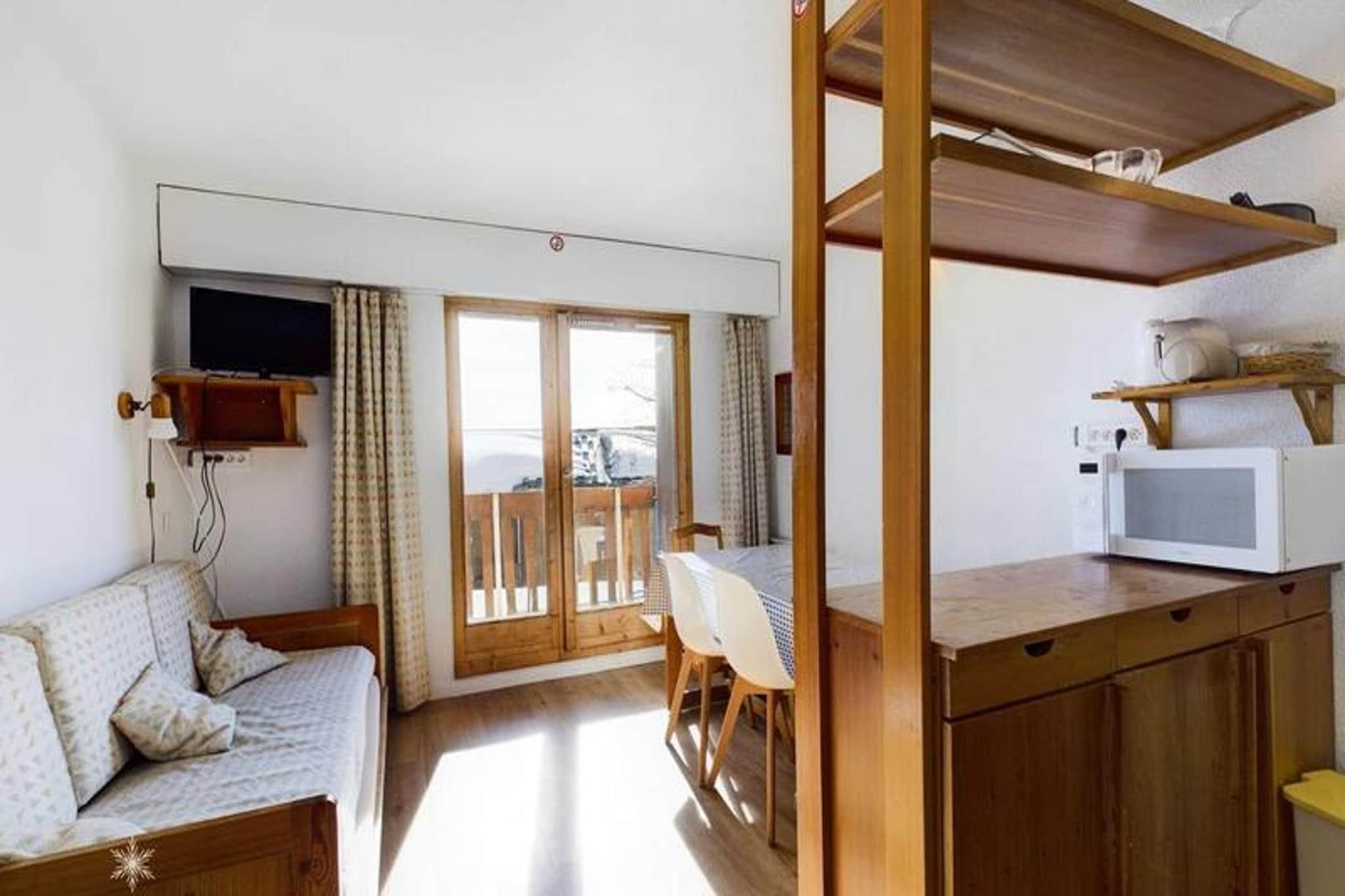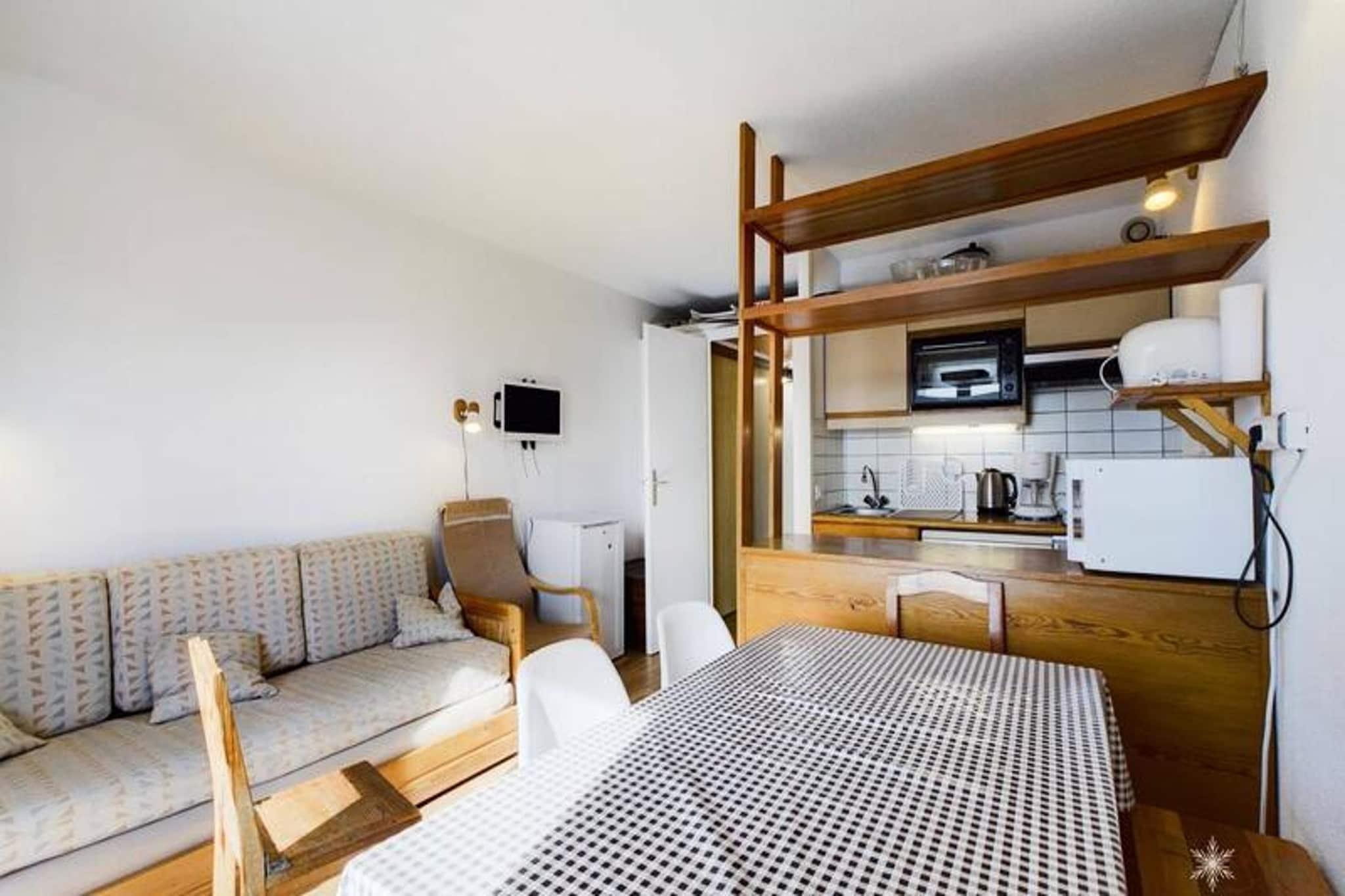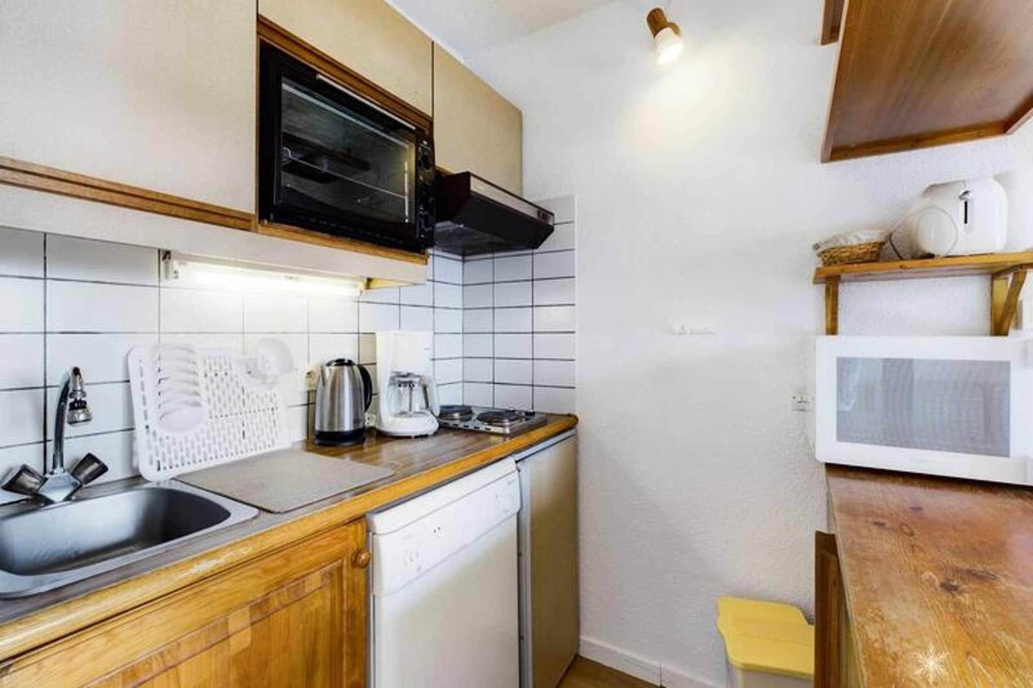 Denne hyggelige studiohytte p? 29 m², beliggende p? haveniveau i en stille bolig, kan rumme op til 6 g?ster. Rummet omfatter en stue med en sovesofa til to, en kahyt med to k?jesenge og en indgang med et ekstra s?t k?jesenge. Et badev?relse med separat toilet sikrer ekstra bekvemmelighed. Syd-vest eksponering og en balkon giver en charmerende udsigt, perfekt til at slappe af efter en dag p? pisterne. Lejligheden er ikke k?ledyrsvenlig og inkluderer ikke t?ppe, hvilket g?r den til en ren og allergivenlig mulighed. Beliggende i centrum af resortet, er lejligheden kun 200 meter fra skilifterne, som tilbyder hurtig adgang til pisterne. G?sterne vil nyde bekvemmeligheden ved n?rliggende butikker, caf?er og lokale markeder, der giver alt det n?dvendige for et behageligt ophold. Uanset om du st?r p? ski om vinteren eller udforsker de natursk?nne stier om sommeren, giver beliggenheden nem adgang til en r?kke aktiviteter og feriestedets livlige atmosf?re. Tek?kkenet er udstyret med to elektriske kogeplader, en miniovn, en mikrob?lgeovn, et k?leskab og en opvaskemaskine, hvilket sikrer enkel tilberedning af m?ltider. Et fladsk?rms-tv med TNT tilf?jer underholdningsmuligheder. Bem?rk venligst, at slutreng?ring, lagner og h?ndkl?der ikke er inkluderet og kr?ver et till?gsgebyr p? stedet. En dejlig kombination af bekvemmelighed og charme g?r denne lejlighed til et fremragende valg for din bjergferie.