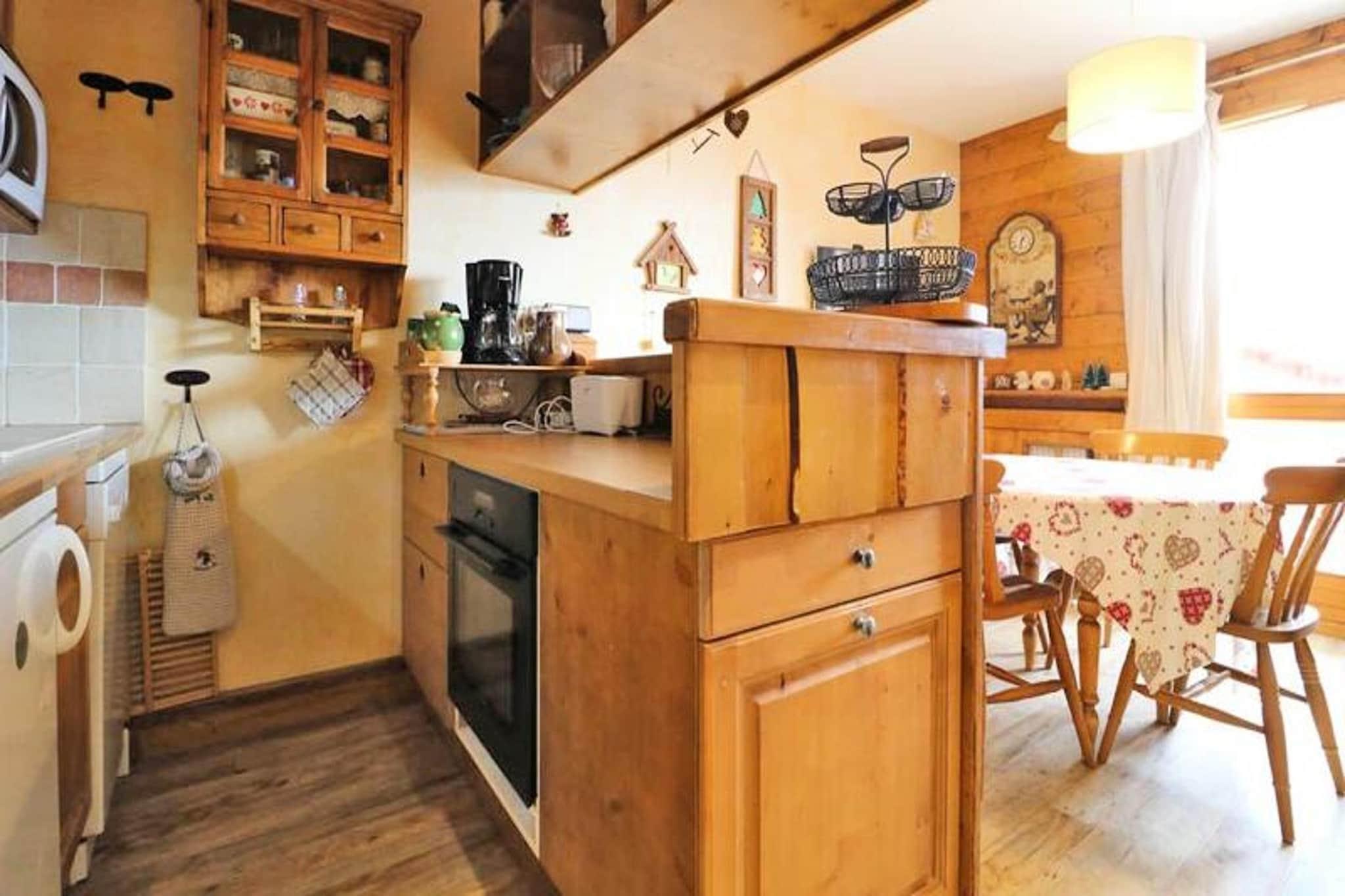 Denne charmerende 3-v?relses lejlighed, beliggende p? 2. sal i en bolig, byder p? et rummeligt 43m² boligareal perfekt til op til 6 personer. Indkvarteringen omfatter et sovev?relse p? mezzanin med dobbeltseng, et andet sovev?relse med to enkeltsenge og et badev?relse med badekar. For nemheds skyld er et skiskab og en parkeringsplads i k?lderen inkluderet. Ejendommen er k?ledyrsfri og designet til komfort med sofa, tv, dvd, cd-afspiller og radio. Der kr?ves et depositum ved indtjekning, og boligen er ikke-ryger. Denne lejlighed ligger i hjertet af feriestedet, kun 150 meter fra skilifterne og 80 meter fra daginstitutionen Les Galopins. Du vil v?re t?t p? butikker, caf?er og restauranter, hvilket g?r det nemt at nyde den lokale kultur og k?kken. Omr?det byder p? en r?kke udend?rs aktiviteter med skil?jper, vandrestier og fritidsmuligheder i n?rheden. Lokale markeder og butikker kan ogs? udforskes, hvilket giver adgang til friske r?varer og souvenirs. Lejligheden har et fuldt udstyret k?kken med keramisk kogeplade, k?leskab, opvaskemaskine, ovn og mikroovn. Fra stuen er der udgang til en terrasse med en fantastisk sydvendt udsigt, perfekt til afslapning efter en dag p? pisterne. Sengelinned, h?ndkl?der og slutreng?ring er tilg?ngelige mod et till?gsgebyr. Varme er inkluderet for din komfort under hele dit ophold.