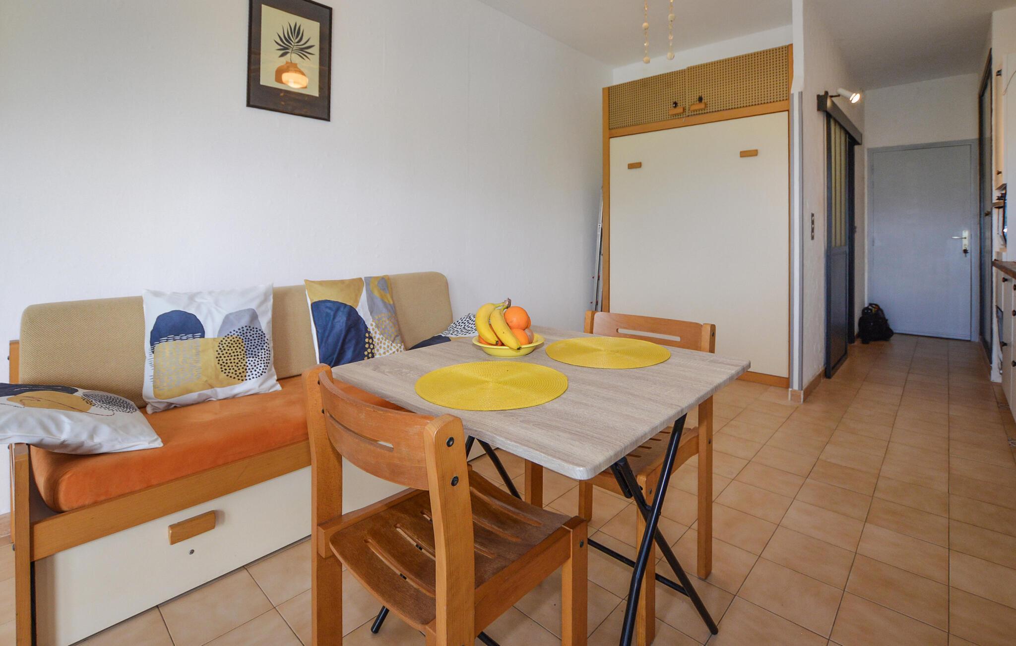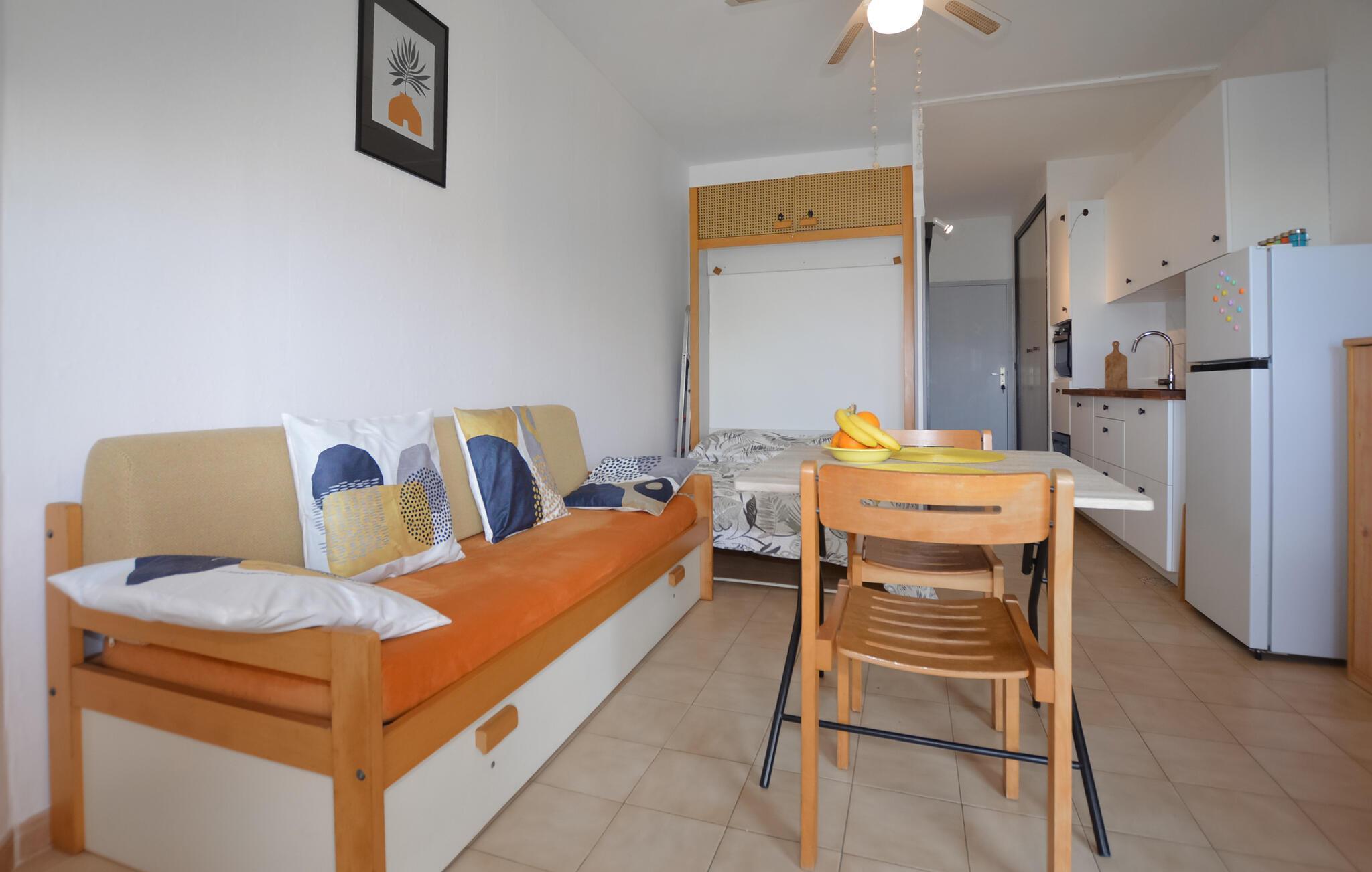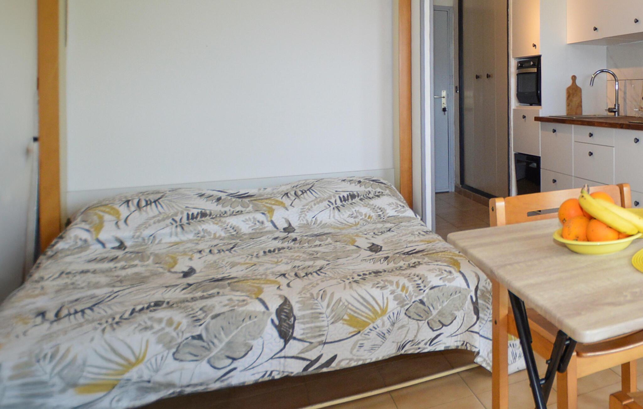 Romantisk for to eller som en lille familie tilbyder dette praktisk indrettede studio jer en hyggelig base for en afvekslende ferie nær stranden. Tryl middelhavsretter frem, planlæg jeres udflugter ved det indbydende spisebord, og afslut en lang dag ved havet med et brætspil.