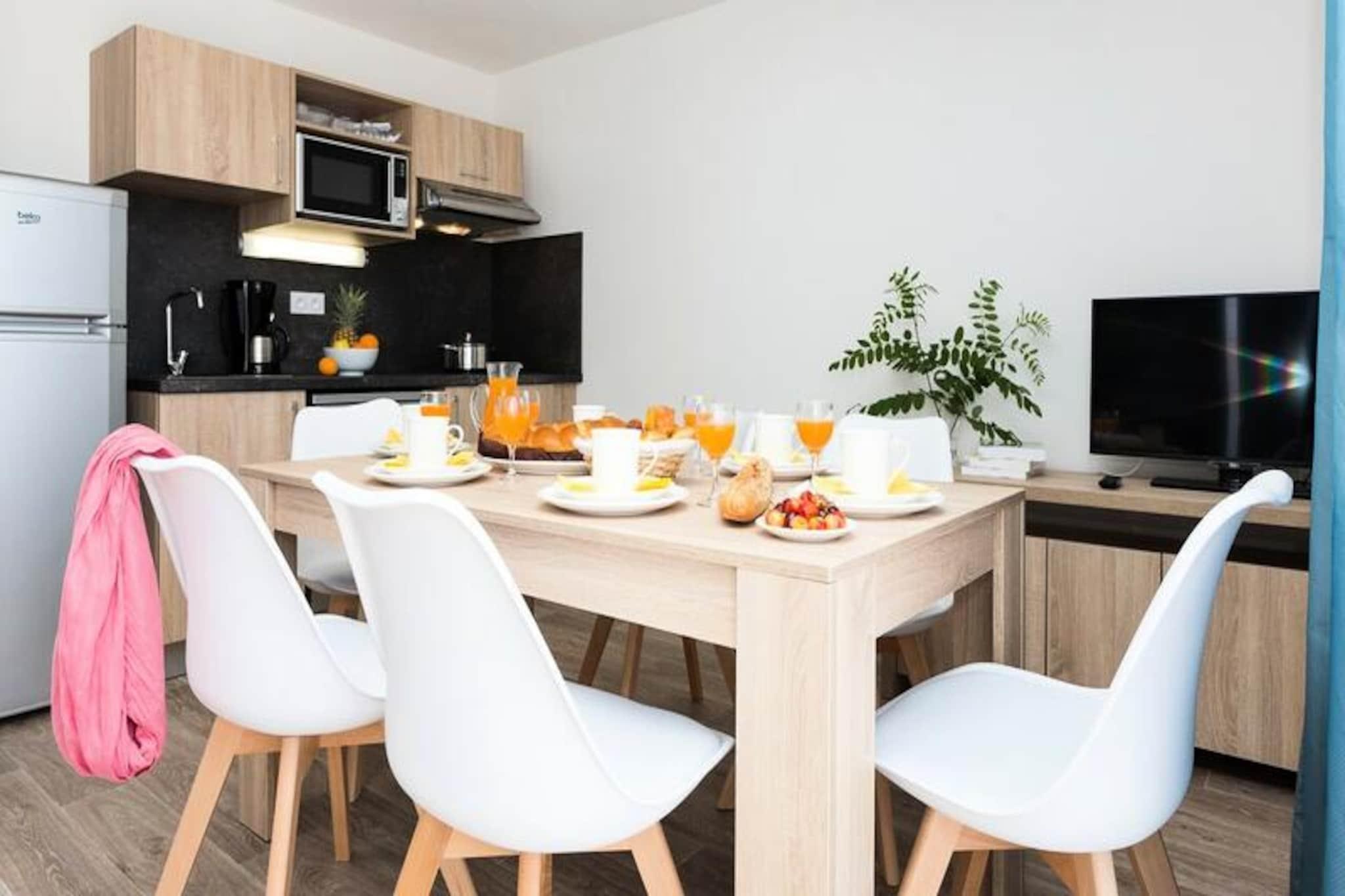Vil du have en feriebolig mellem hav og natur? Prestige Odalys Le Domaine des Pins Residence er lavet til dig! I hjertet af Bois de la Chaise, det mest berømte sted i Noirmoutier, byder Residence dig velkommen i enestående naturlige omgivelser. Spredt over 93 hektar land, omkranset af åer og meget værdsat for sit rolige miljø, vil Bois de la Chaise forføre dig. Hvad angår Plage des Dames, ligger den cirka 700 m fra dit lejemål i Pays de la Loire. Med sit milde klima og smukke solskin er Noirmoutier Loire-destinationen at besøge. Velsmagende og naturligt, feriestedet har charmerende aktiver, der kombinerer strandenge, klitter og stenegeskove. Under dit ophold kan du nyde en opvarmet semi-indendørs swimmingpool, soppebassin, hammam, legeplads, bowlingbane og bordtennis. Med den traditionelle arkitektur på øen er residensen dekoreret med hvide facader og blå skodder. Din feriebolig i Noirmoutier består af 7 bygninger og tilbyder indkvartering lige fra studiolejligheder til 2 personer til 3-værelses lejligheder til 7 personer. Studio 2 personer. Stue med seng til 2 personer. Udstyret tekøkken. Badeværelse og toilet. Wifi adgang - gratis Kæledyr tilladt - EURO70/kæledyr/ophold (7 nætter og mere) - EURO15/nat (mindre end 7 nætter) Depositum (ekstra) - 500 Slutrengøringspakke - slutophold ekstra rengøring inkluderet (undtagen køkkenområde og opvask) Babysæt - tilgængelig til udlån ved reservation (seng + højstol + bad) Sengetøj - inkluderet Håndklæder - inkluderet Parkering - gratis udvendig (1 plads pr. lejlighed, efter reservation) Opvarmet swimmingpool - fri adgang til den opvarmede semi-overdækket swimmingpool og soppebassinet (åben fra midten af ??marts til slutningen af ??oktober) Turistskat (ekstra gebyr) - betales på stedet i henhold til gældende takst Fjernsyn - gratis