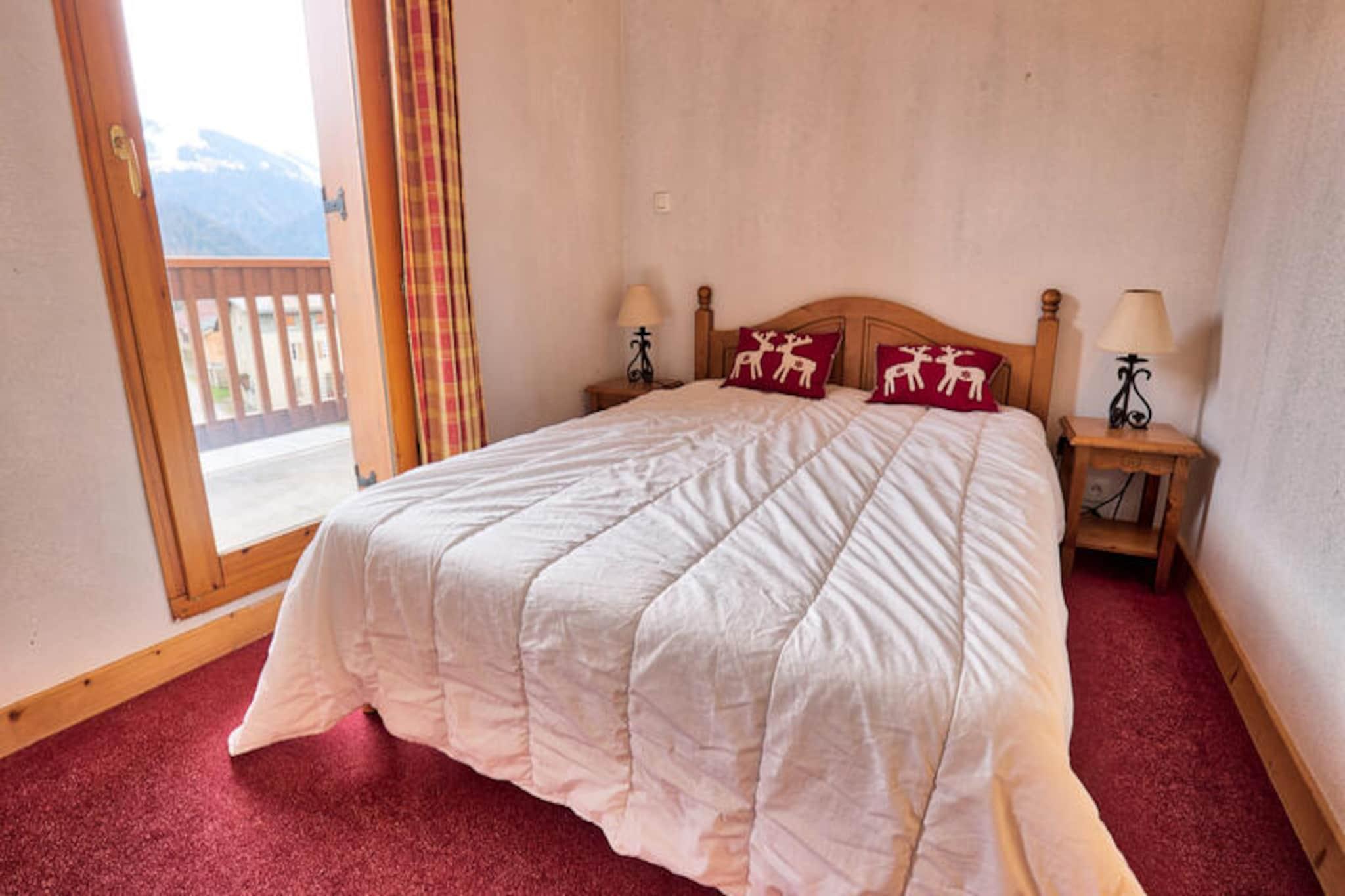 Midt i den maleriske charme i Notre Dame de Bellecombe tilbyder denne rummelige duplexlejlighed et roligt alpint tilflugtssted i hjertet af skisportsstedet Espace Diamant. Med sin førsteklasses beliggenhed kun 5 minutters gang fra pisterne og i en eksklusiv bolig med indendørs swimmingpool kombinerer denne ejendom bekvemmelighed med luksus for at skabe den perfekte bjergflugt. Vågn op til en betagende udsigt over de omkringliggende tinder fra de sydøstvendte altaner på begge etager, og fordyb dig i den autentiske savoyard-atmosfære i denne indbydende landsby. \n\nLejligheden på 87 m² har komfortabel plads til op til 10 gæster, hvilket gør den ideel til familier eller vennegrupper. Den har to soveværelser med dobbeltsenge, to soveværelser med to enkeltsenge og ekstra sovemuligheder i stuen, hvilket sikrer fleksibilitet for alle. Det åbne køkken er fuldt udstyret med moderne apparater, herunder keramisk kogeplade, mikrobølgeovn, varmluftsovn og opvaskemaskine, hvilket gør madlavning til en leg. To badeværelser, et med bruser og et med badekar, sammen med to separate toiletter, giver ekstra bekvemmelighed for større grupper. Gæsterne kan også nyde godt af adgang til et skirum, overdækket parkering og valgfrie faciliteter såsom sauna og Wi-Fi.\n\nUd over boligen tilbyder landsbyens centrum et livligt udvalg af butikker, restauranter og underholdning, alt sammen inden for gåafstand. Om vinteren kan skiområdet Espace Diamant prale af 192 km pister, der henvender sig til alle niveauer, mens sommeren forvandler regionen til et paradis for vandrere og mountainbikere. Nærliggende attraktioner omfatter stoleliften Mont Rond, som tilbyder en fantastisk panoramaudsigt over Mont Blanc, og familievenlige faciliteter som tennisbaner og legepladser kun 150 meter væk.\n\nUanset om du søger spændende skieventyr, rolige sommervandreture eller blot en hyggelig alpin ferie, tilbyder denne ejendom en harmonisk blanding af komfort, bekvemmelighed og naturlig skønhed. Skab uforglemmelige minder i hjertet af de franske alper, hvor hver årstid bringer sin egen unikke charme.
