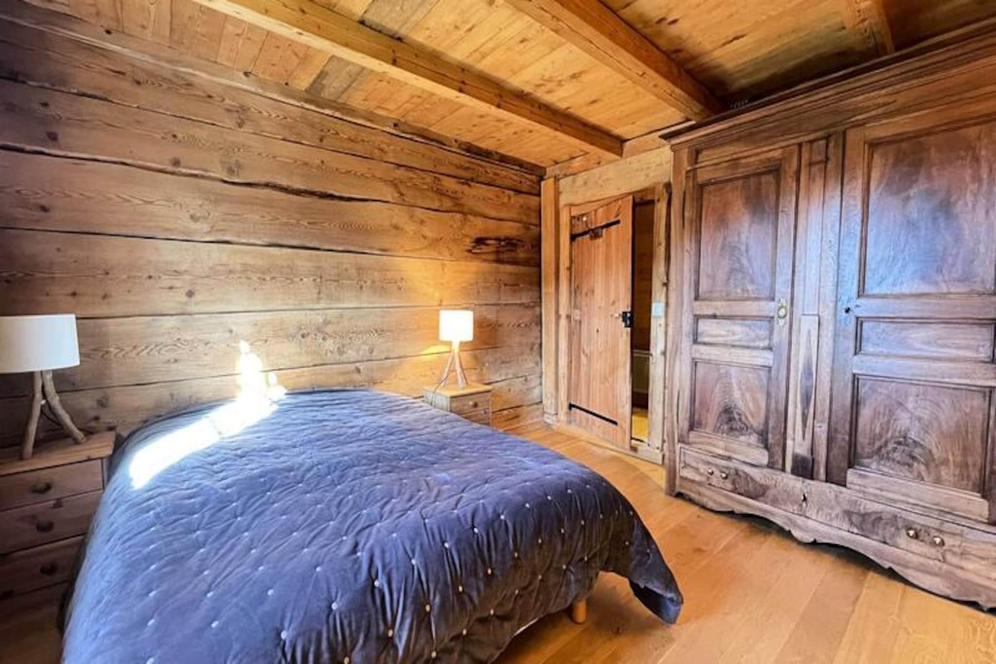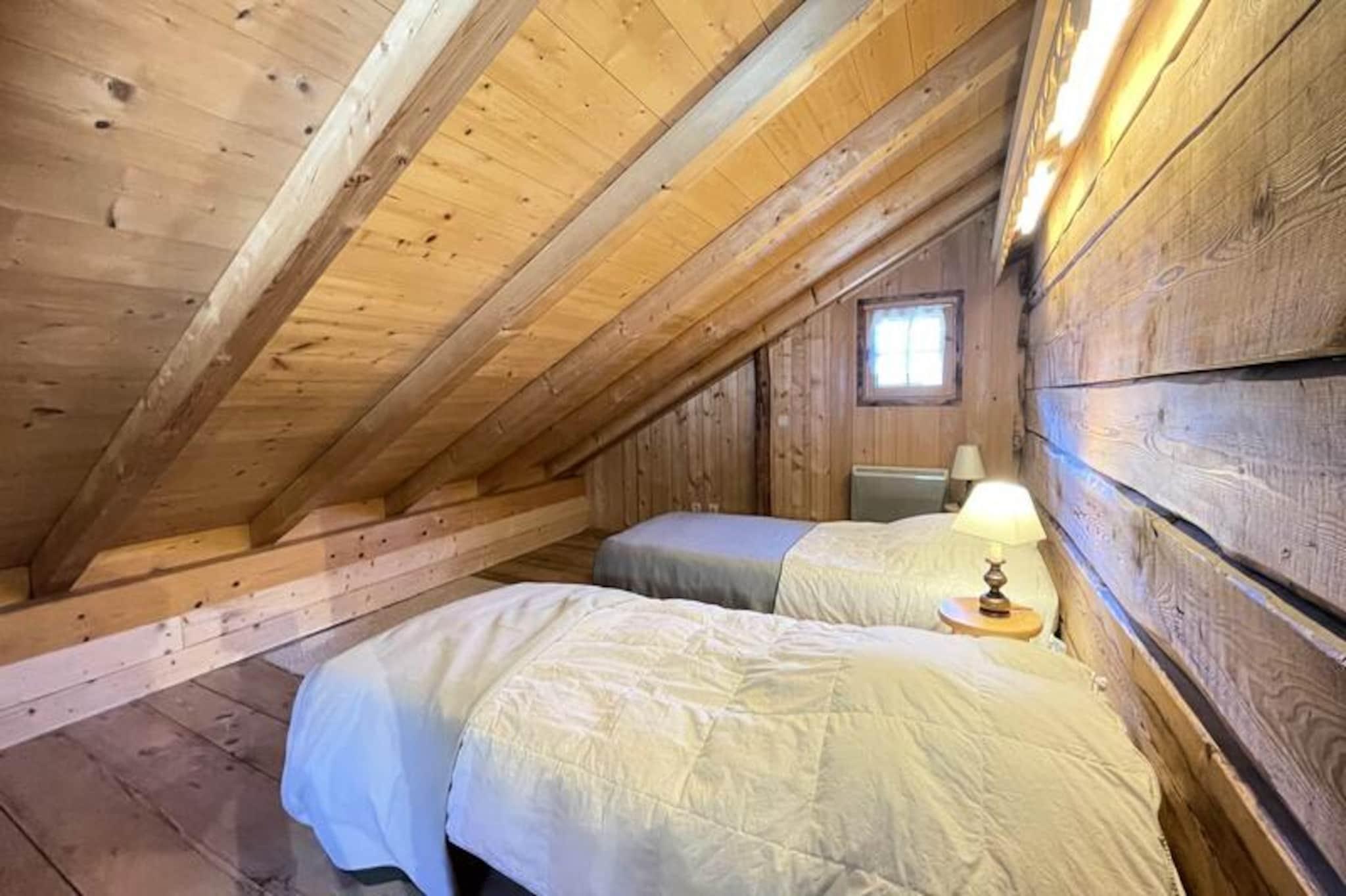 Midt i det betagende alpine landskab i Notre Dame de Bellecombe tilbyder denne charmerende Savoyard-hytte et unikt tilflugtssted for dem, der søger ro og eventyr. Omgivet af majestætiske tinder og kun 500 meter fra Boulangère-skiliften, giver den problemfri adgang til det berømte skiområde Espace Diamant, der kan prale af 192 km sammenhængende pister. Uanset om du er her for at grave dig gennem uberørt sne eller udforske frodige sommerstier, er denne hytte den perfekte base for din bjergflugt. Den sydvestvendte balkon inviterer dig til at nyde panoramaudsigten over de omkringliggende tinder, inklusive den ikoniske Mont Blanc, mens du nyder den friske alpine luft. \n\nIndenfor blander hytten traditionel charme med moderne komfort. Hovedplanen har et fuldt udstyret køkken, der åbner ud til en hyggelig opholds- og spisestue, perfekt til at dele måltider og historier efter en dag med eventyr. Et soveværelse med dobbeltseng, et separat toilet og et brusebad fuldender planløsningen. Ovenpå, der er tilgængelig via en stejl trappe, finder du et andet soveværelse, to mezzanin-rum med enkeltsenge og et arbejdsområde til dem, der har brug for at holde kontakten. Gennemtænkte faciliteter såsom WiFi, vaskemaskine/tørretumbler og privat parkering sikrer et problemfrit ophold.\n\nChaletens beliggenhed placerer dig tæt på den pulserende landsby Notre Dame de Bellecombe, kun 5 km væk, hvor du kan udforske lokale butikker og restauranter. Om sommeren tilbyder Mont Rond-stoleliften adgang til fantastiske udsigter, mens nærliggende stier og Flumet-søen lover uendelige udendørsaktiviteter. For vintersportsentusiaster gør liftkort med rabat og opbevaring af udstyr din ferie endnu mere bekvem.\n\nUanset om du rejser som familie, en gruppe venner eller søger en romantisk ferie, tilbyder dette autentiske chalet en uforglemmelig alpin oplevelse. Lad skønheden i Val d'Arly og den varme Savoyard-gæstfrihed skabe minder, du vil værdsætte for livet.