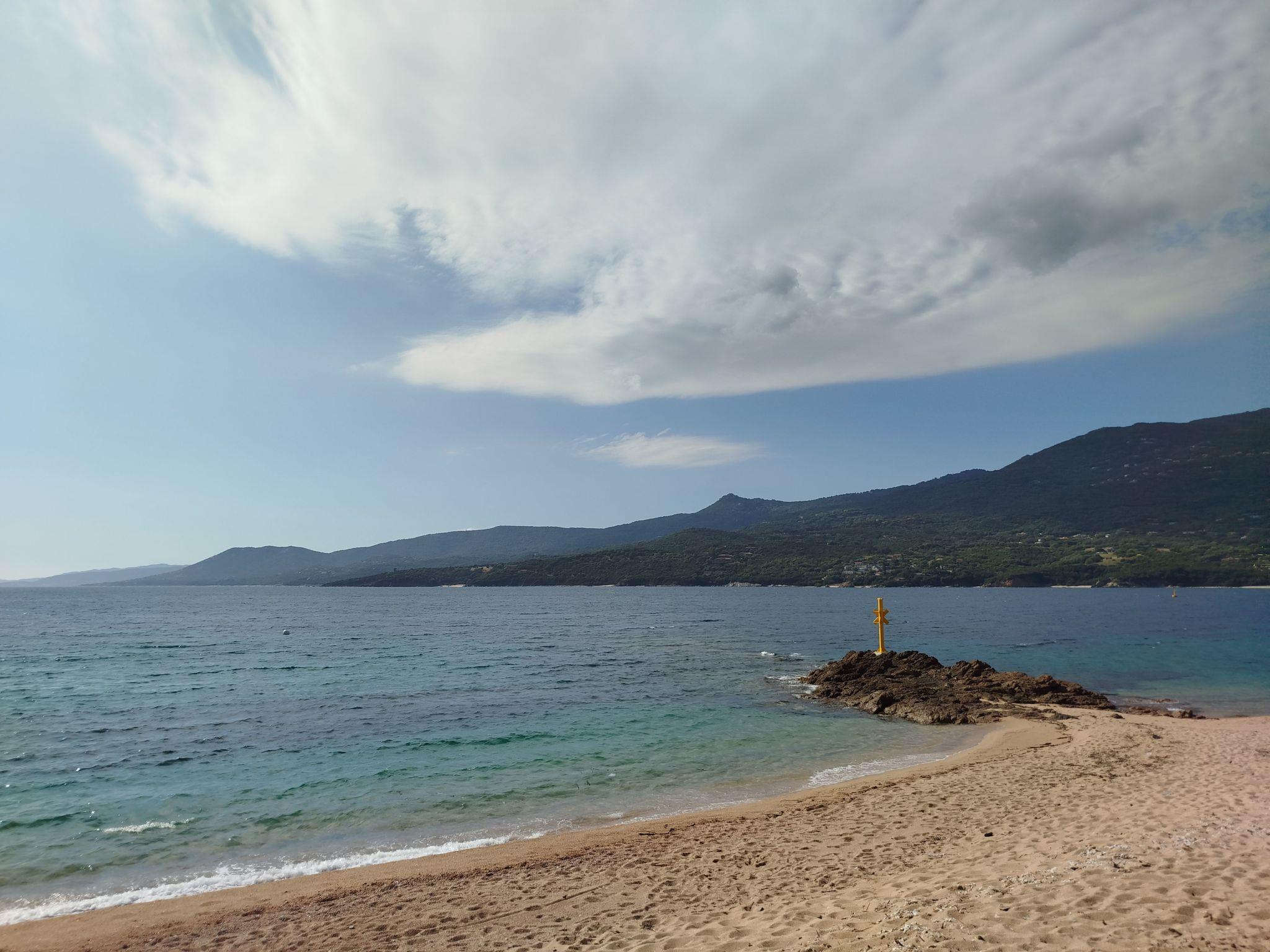 View over the Gulf of Valinco and the surrounding mountains - overlooking the sea