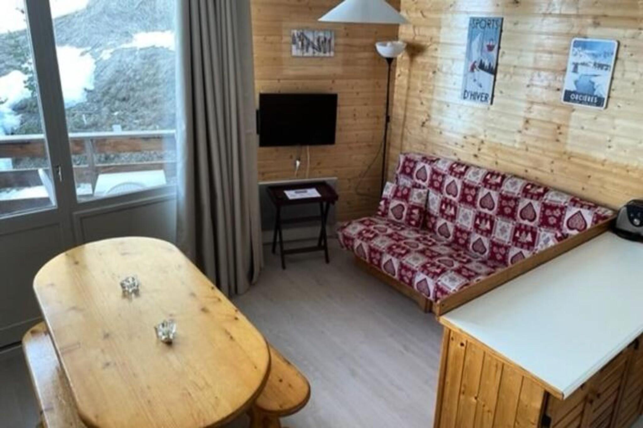 Denne lyse lejlighed på 45 m² kan rumme op til 7 personer med to soveværelser og en sovesofa i stuen. Soveværelse 1 har køjesenge til 2 personer, mens soveværelse 2 har en dobbeltseng og en enkeltseng. Lejligheden er beliggende på 2. sal i en bygning med elevator og byder på to loggiaer med nord/vest eksponering. Det er ikke kæledyrsvenligt og giver ikke lagner eller håndklæder, men disse kan lejes. Lejlighedens beliggenhed er ideel for vintersportsentusiaster, beliggende kun 20 meter fra skiløjperne. Det er også i gåafstand til butikker og kun 5 minutters gang til sportscentret, hvor gæsterne kan nyde faciliteter såsom en swimmingpool, skøjtebane, bowlingbane og biograf. Lejligheden har et veludstyret køkken med opvaskemaskine, mikroovn og andre nødvendige ting til at tilberede måltider. Badeværelset har badekar, og en vaskemaskine er til rådighed for ekstra bekvemmelighed. Lejligheden har også et skiskab til opbevaring af udstyr. Bemærk at snerydning fra loggiaer eller altaner ikke er inkluderet om vinteren.