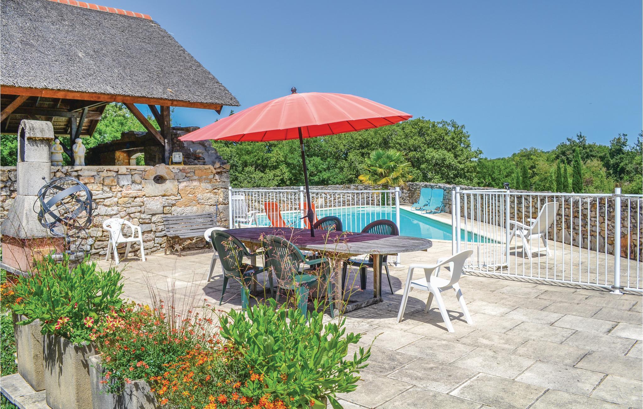 Dette skønne feriehus med plads til op til fire personer ligger på samme grund som FML089 og FML091. Ejendommen med fællespool er beliggende på en lille stille gade i Lot-regionen. 3 km væk kan I udforske Gouffre de Padirac. Det populære pilgrimssted Rocamadour (15 km) er et besøg værd. Se også Notre Dame-kirken og det berømte Madame Noire, og tag derefter børnene med til Forêt des Singes abeskov og Aigles ørnereservat. Rocamadour er også kendt for sin lille runde gedeost, der smager bedst sammen med et glas god vin. Dordognedalen (6 km) er det ideelle sted for sportsaktiviteter: svømning, kano og kajak, vandreture og meget mere. Fælles whirlpool mod gebyr. Der stilles håndklæder til rådighed, men tag venligst jeres egne badehåndklæder med til brug ved poolen.