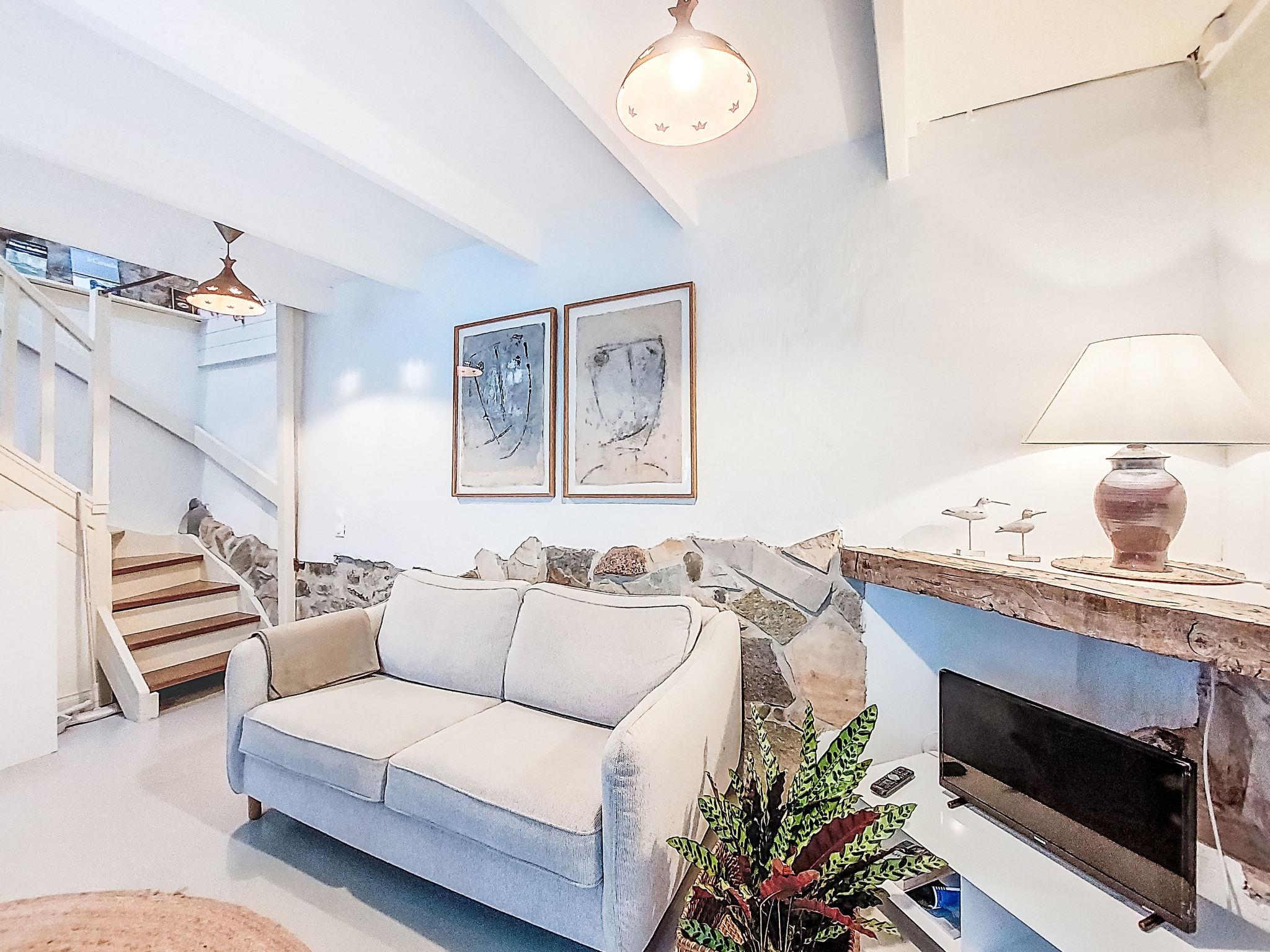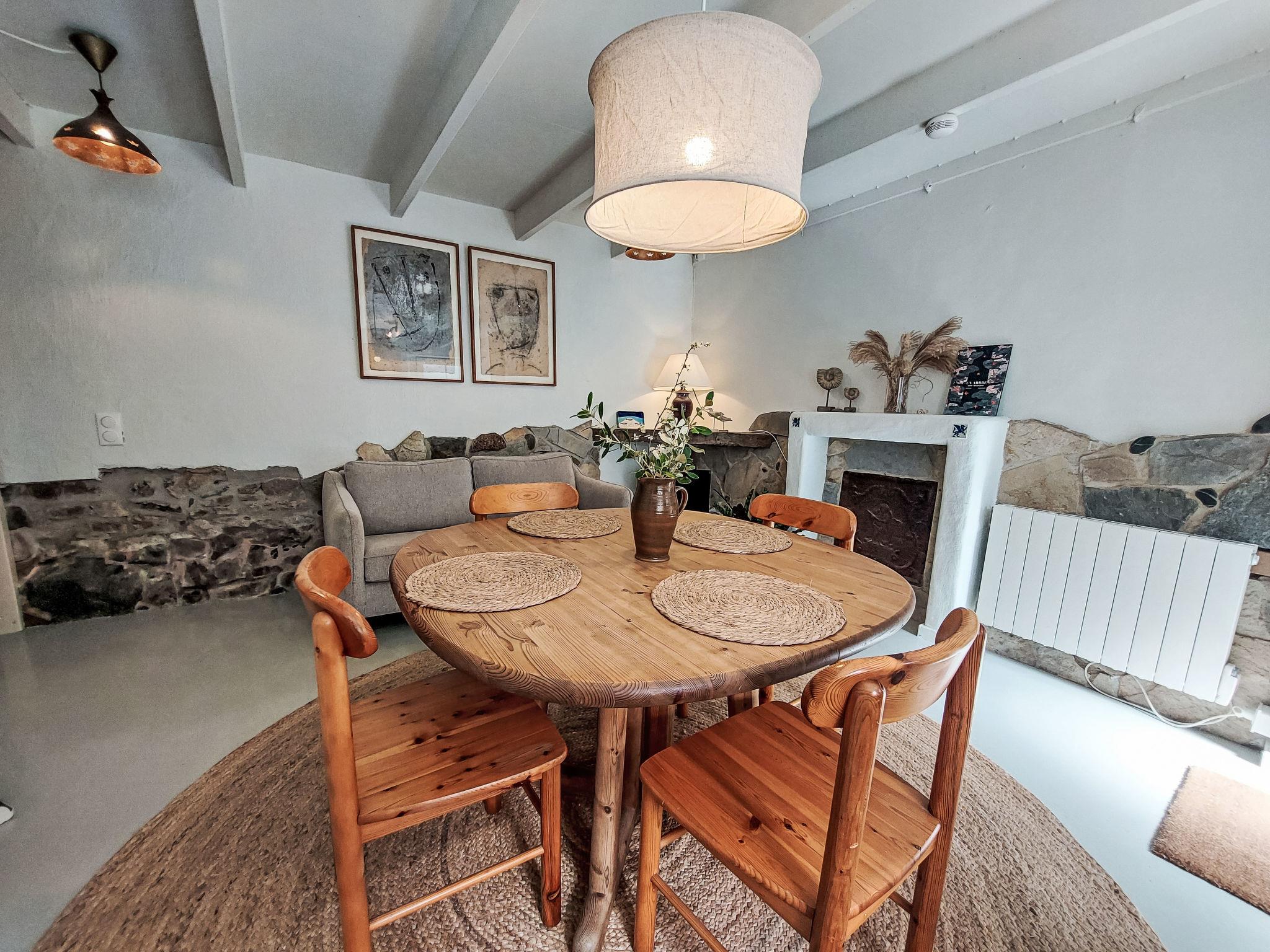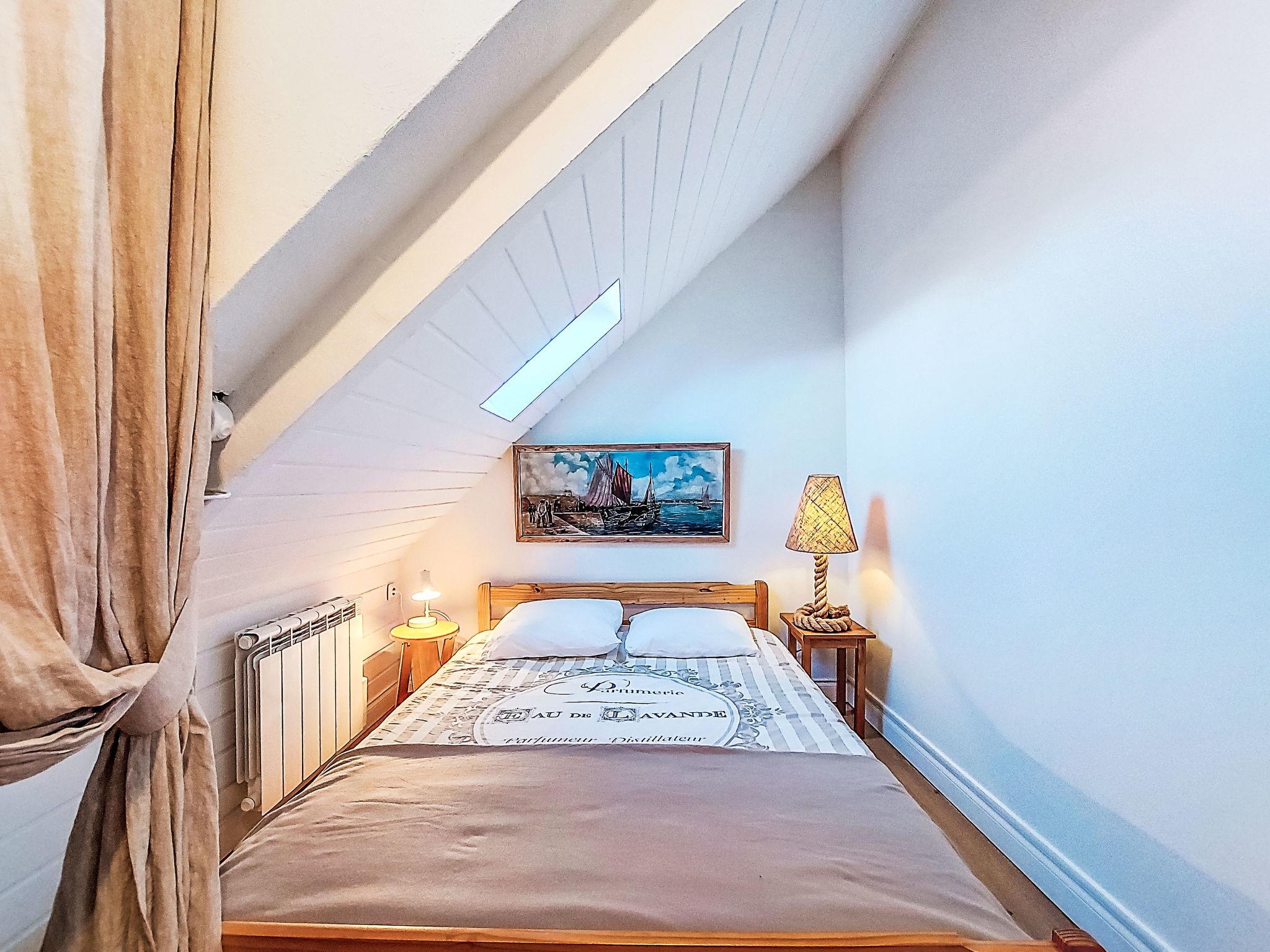 "Gwenn", 3-room semi-detached house 60 m2 on 2 levels. Partly renovated in 2025, beautiful and cosy furnishings: living/dining room with dining table and TV (flat screen). Kitchenette (oven, 2 ceramic glass hob hotplates, toaster, kettle, electric coffee machine). Bath/WC. Electric heating. Top floor: 1 room with sloping ceilings with rooflight with 1 french bed (140 cm). 1 room with sloping ceilings with rooflight with 1 bed and 1 french bed (140 cm). Terrace furniture, deck chairs (2). Facilities: washing machine, iron. Internet (WiFi, free). Please note: non-smoking house. Smoke alarm. Offer by a private individual according to Art. 155, IV of CGI.