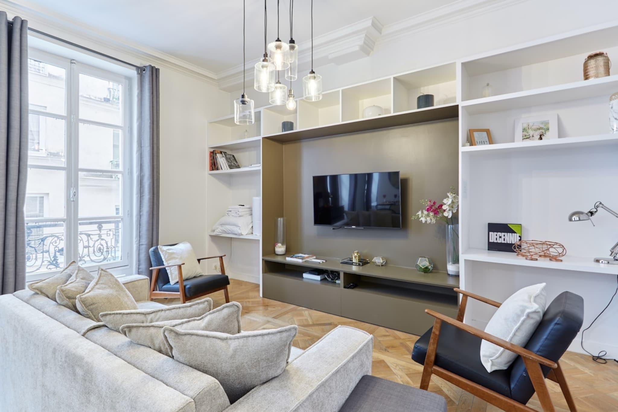 Oplev denne fantastiske lejlighed, ideelt beliggende i hjertet af Paris i det berømte Marais-distrikt. Du er kun få skridt fra den berømte Café Charlot og Rue de Bretagne, kendt for sine restauranter, caféer og elegante og trendy butikker. Denne lejlighed kombinerer modernitet og autenticitet takket være sit majestætiske originale "Versailles" parketgulv. Den består af et soveværelse og en stor, elegant, lys, smagfuldt indrettet og fuldt udstyret stue. En ideel beliggenhed for et vellykket parisisk ophold.