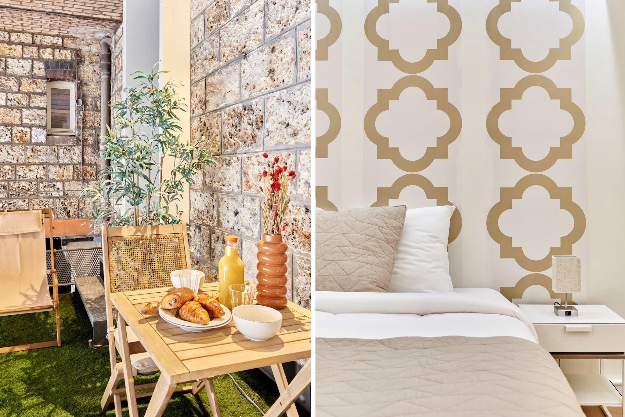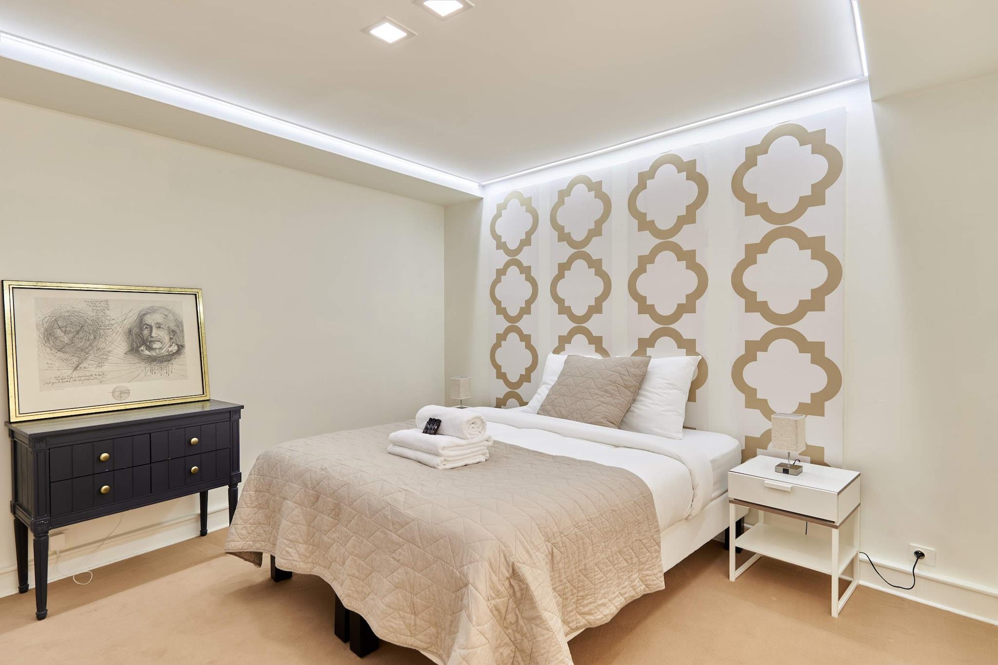 På 1. etage: (Køkken(spisebord, elkedel, brødrister, kaffemaskine, mikrobølgeovn, køleskab, fryser, varme, , , Baking sheet, Wine glasses), soveværelse(Queen Bed), soveværelse(Queen Bed), badeværelse(bruser, toilet), badeværelse(bruser, toilet)) , , , Førstehjælp, Fjernsyn, klimaanlæg, strygejern, føntørrer, , , , Carbon monoxide detector, Cleaning products, Coffee, Downtown, Extra pillows and blankets, Room-darkening shades, Shower gel