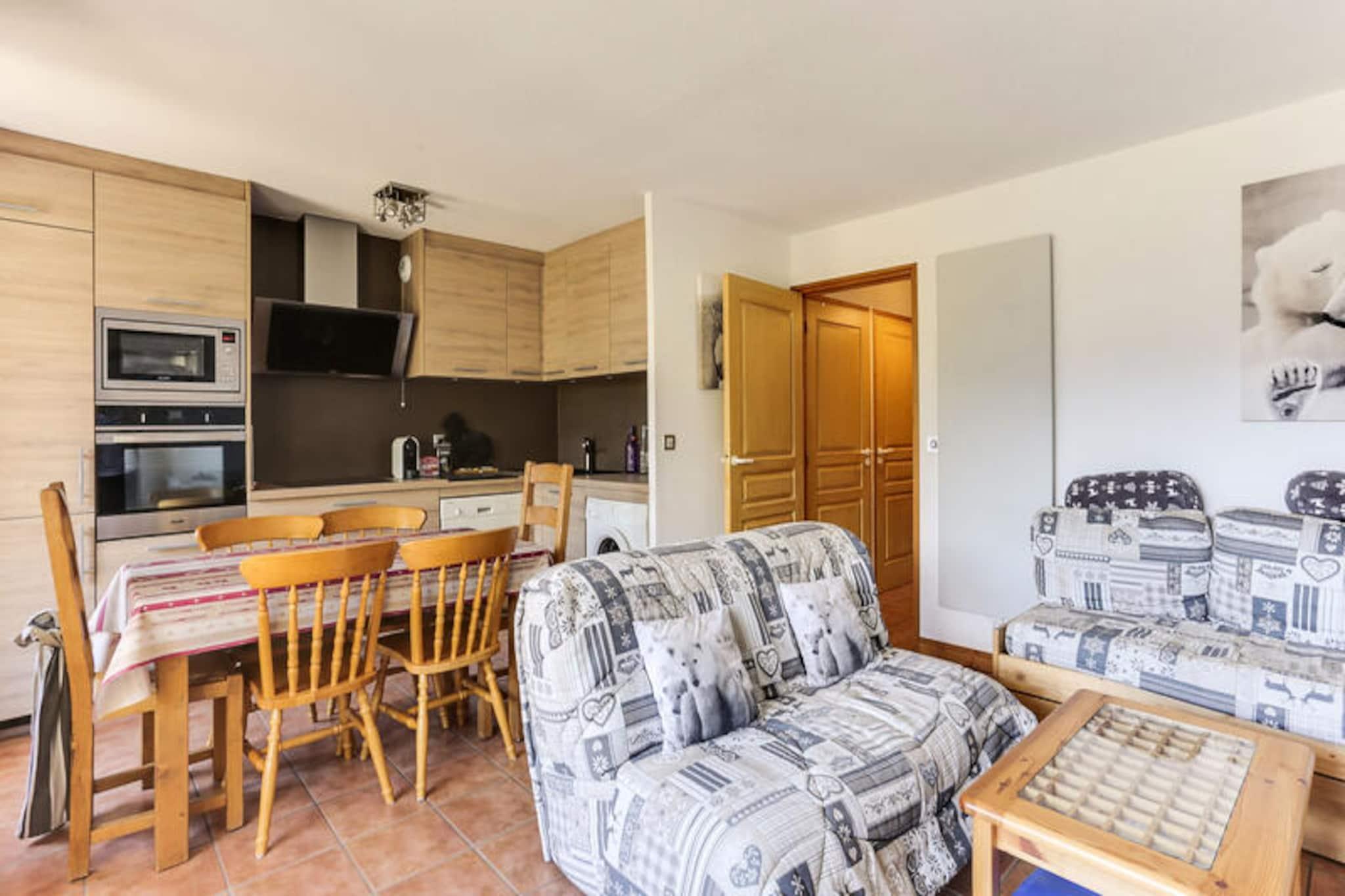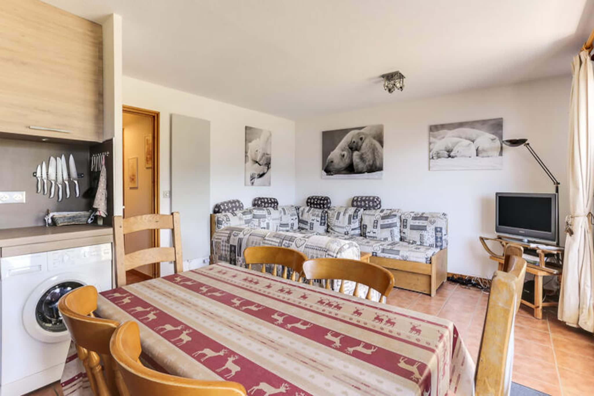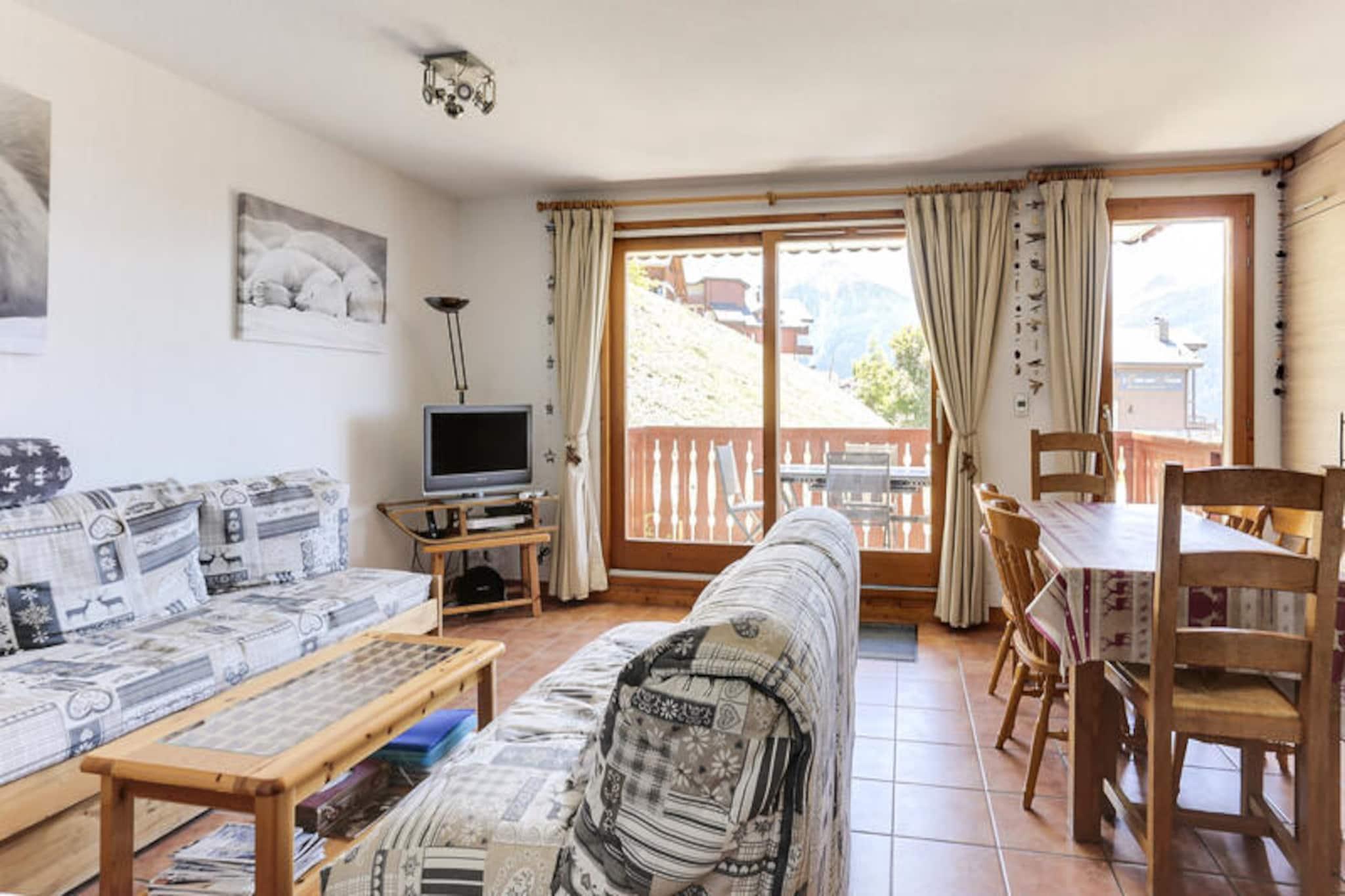 Højt over Tarentaise-dalen, hvor den alpine luft er frisk og forfriskende, inviterer denne charmerende lejlighed i chaletstil dig til at opleve Vallandrys magi. Med sin sydvendte balkon, der tilbyder en fantastisk udsigt over pisterne, er denne bolig et paradis for både vintersportsentusiaster og sommereventyrere. Uanset om du er her for at grave dig gennem uberørt sne eller udforske frodige bjergstier, lover dette rolige tilflugtssted uforglemmelige øjeblikke i hjertet af de franske alper.\n\nIndenfor er den fuldstændig renoverede lejlighed på 50 m² omhyggeligt designet til at rumme op til otte gæster. Det åbne køkken, udstyret med moderne apparater, herunder induktionskogeplade, ovn, mikrobølgeovn og opvaskemaskine, er problemfrit forbundet med den hyggelige opholdsstue. Tre indbydende soveværelser tilbyder fleksible sovearrangementer, mens stuen giver ekstra plads til afslapning. Et badeværelse med badekar og separat toilet sikrer bekvemmelighed for alle. Med gratis Wi-Fi, et tv med flere kanaler og en vaskemaskine er hver eneste detalje tænkt over for din komfort.\n\nLejligheden ligger kun en kort gåtur fra pisterne, skiskolen og de lokale butikker og er ideel til at fordybe sig i den pulserende landsbyatmosfære. Om vinteren kan du nyde direkte adgang til det berømte Paradiski-område, mens sommeren byder på muligheder for vandreture, cykling og dyrelivsobservation i den nærliggende Vanoise Nationalpark. Overdækket parkering gør dit ophold nemmere og gør det nemt at udforske det omkringliggende område.\n\nUanset om du søger spændende alpine eventyr eller fredelige øjeblikke omgivet af natur, tilbyder denne bolig den perfekte blanding af komfort og beliggenhed. Lad Vallandrys skønhed inspirere din næste flugt til bjergene.