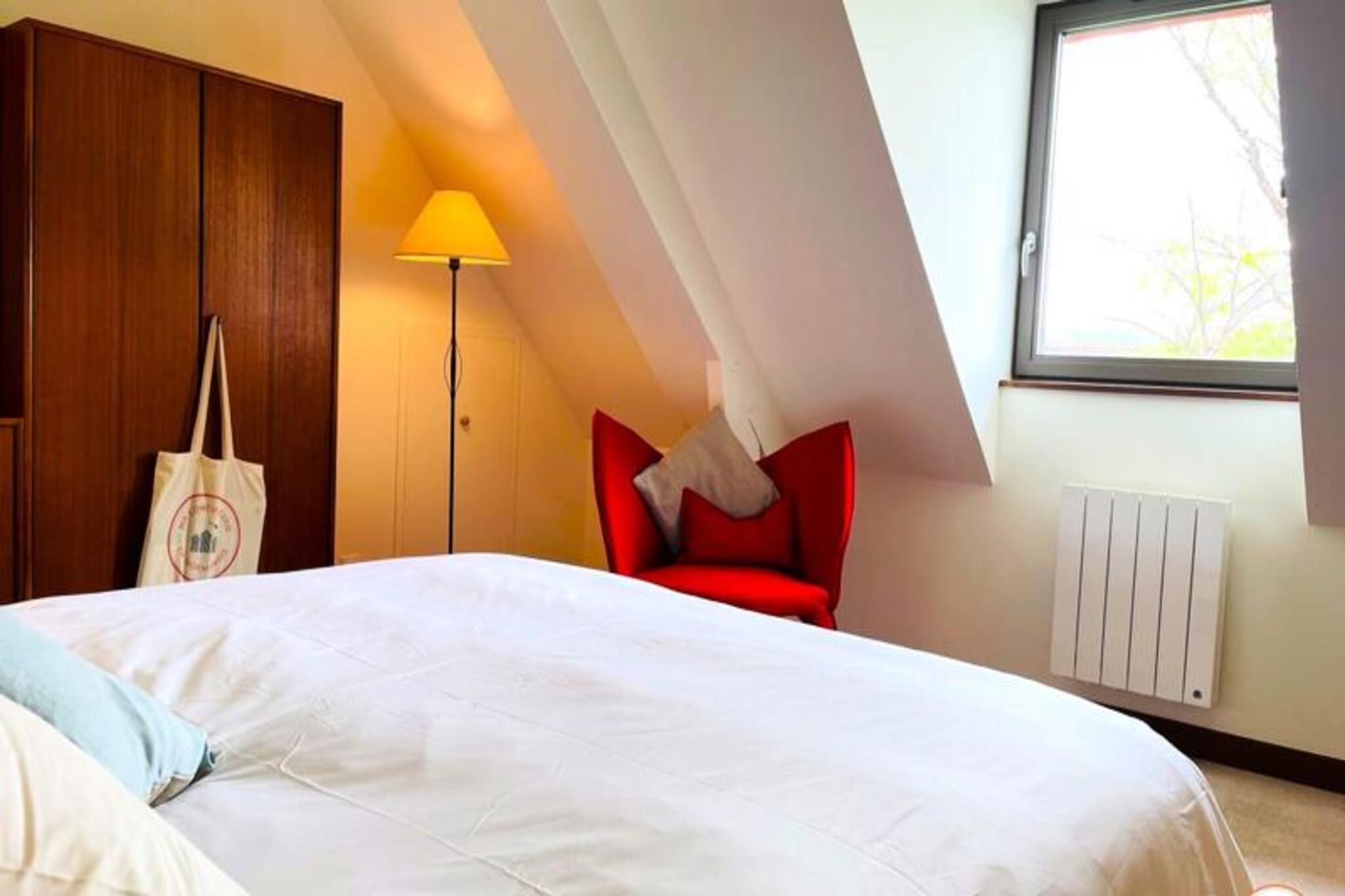 Dette charmerende feriehus tilbyder hyggelig indkvartering med to komfortable sovev?relser, det ene udstyret med en queen-size seng og det andet med to enkeltsenge. Ejendommen er k?ledyrsvenlig, indbydende lodne ledsagere til at slutte sig til dig p? dit ophold. G?sterne kan nyde en afslappende aften i opholdsstuen, komplet med en sofa og et spisebord, perfekt til familiem?ltider eller stille stunder. Ejendommen er bekvemt beliggende kun 10 minutter fra Deauville og Honfleur, og tilbyder nem adgang til forskellige attraktioner. Inden for en kort g?tur finder du lokale caf?er, charmerende markeder og hyggelige butikker, alt sammen sat mod Normandiets maleriske kulisse. I n?rheden giver de ber?mte Pays d'Auge-plantager og Seine-mundingen et natursk?nt milj? at udforske. Dette feriehus er fuldt udstyret med et moderne k?kken, k?leskab, ovn, induktionskomfur og kaffemaskine til din bekvemmelighed. Badev?relset har badekar, og der er en rummelig have med udend?rs siddepladser til at nyde m?ltider eller slappe af under Normandiets himmel.