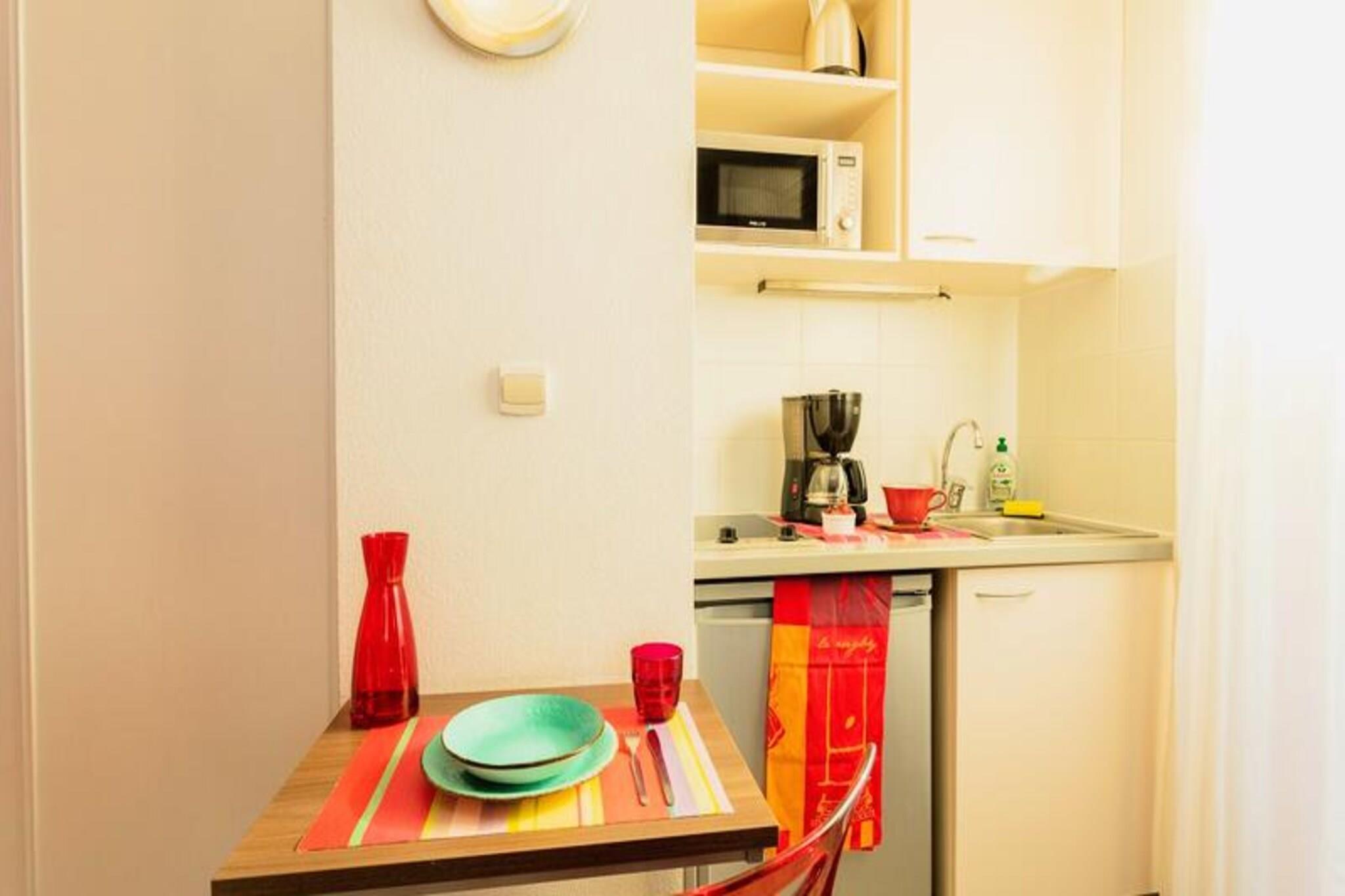 Dette moderne lejlighedshotel ligger i hjertet af Perpignans Esplanade-distrikt og tilbyder 100 værelser med aircondition designet til 1 til 2 gæster. De stilfulde værelser har en komfortabel dobbeltseng, og kæledyr er velkomne mod et tillægsgebyr. Bemærk venligst, at overnatningsstedets maksimale kapacitet ikke kan overskrides, og at ekstra senge ikke er tilladt. En privat overdækket parkeringsplads er tilgængelig, selvom pladserne er begrænsede. Der pålægges et refunderbart depositum og turistskat. Lejlighedshotellet er ideelt beliggende i gåafstand til Perpignans historiske centrum, der tilbyder nem adgang til butikker, restauranter og kulturelle attraktioner. Gæsterne kan udforske nærliggende monumenter, besøge Archipel-teatret eller deltage i arrangementer i kongrescentret Georges Pompidou. TGV-stationen og de lokale strande er også kun få minutter væk, hvilket gør denne ejendom til en bekvem base for både fritids- og professionelle besøg på den catalanske kyst. Hvert værelse har et veludstyret tekøkken med køleskab, mikroovn og kogeplader, ideelt til at tilberede enkle måltider. Badeværelset har et rummeligt brusebad og toilet. Der tilbydes gratis trådløs internetadgang overalt på ejendommen, og gæsterne kan nyde en kontinental morgenbuffet mod et tillægsgebyr. Valgfrie tjenester såsom et babysæt og morgenmad er tilgængelige for at forbedre opholdet.