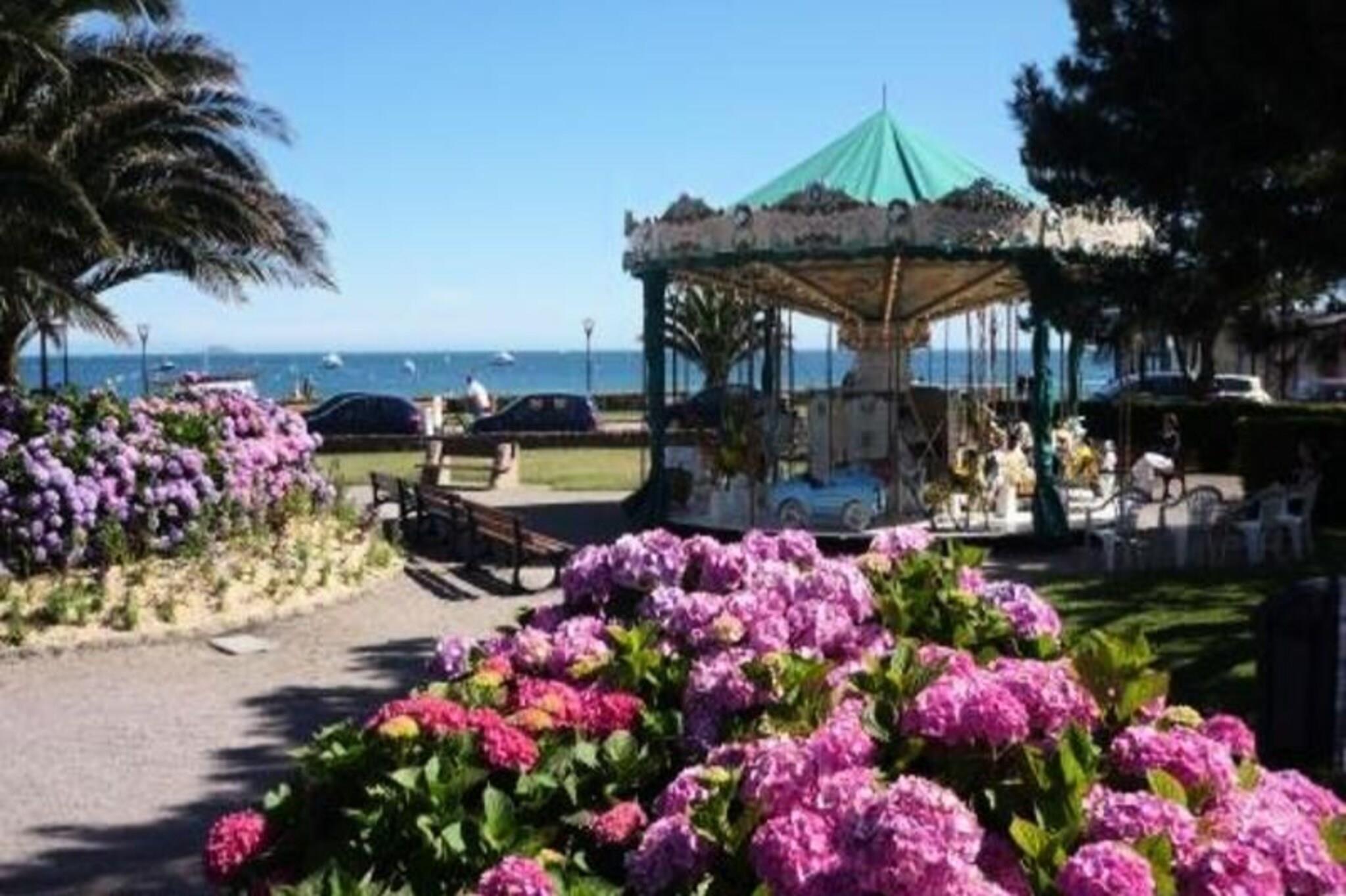 Denne charmerende lejlighed, beliggende på anden sal med elevator adgang, tilbyder et behageligt ophold med 35 m² plads. Det har en stue med en lille terrasse med havudsigt, et soveværelse med to 140 cm enkeltsenge og et badeværelse med toilet. Lejligheden er ikke-ryger, og kæledyr er ikke tilladt. Sengetøj er valgfrit, og slutrengøring er inkluderet for din bekvemmelighed. Perfekt beliggende ved strandpromenaden, er lejligheden ideelt placeret til at udforske Pink Granit Coast. Nærliggende attraktioner omfatter et thalassocenter, et kasino og et lille supermarked. Gæsterne kan nyde forskellige udendørs aktiviteter såsom sejlads, surfing og vandreture på kyststien. Bådture til De Syv Øers Øhav eller Øen Bréhat byder på uforglemmelige oplevelser. Lejligheden indeholder et fuldt udstyret køkken med elektrisk kogeplade, køleskab med fryser, mikroovn, elektrisk ovn, kaffemaskiner og meget mere. Til underholdning er der et tilsluttet tv, trådløst internet og et Bluetooth minisystem. Badeværelset er udstyret med vaskemaskine, og der er mulighed for cykelopbevaring efter anmodning.
