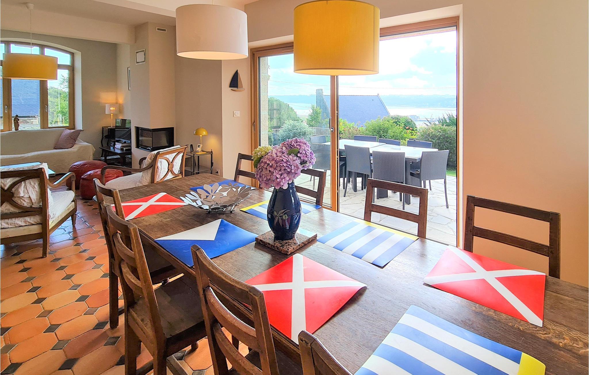 Dette dejlige hus, ligger i en lukket have, ikke langt fra Perros-Guirecs centrum. I bor derfor tæt på en stor badeby med kasino, thalassoterapicenter og sejlskole. Fra den store lukkede have er der en betagende udsigt over havnen og bugten.