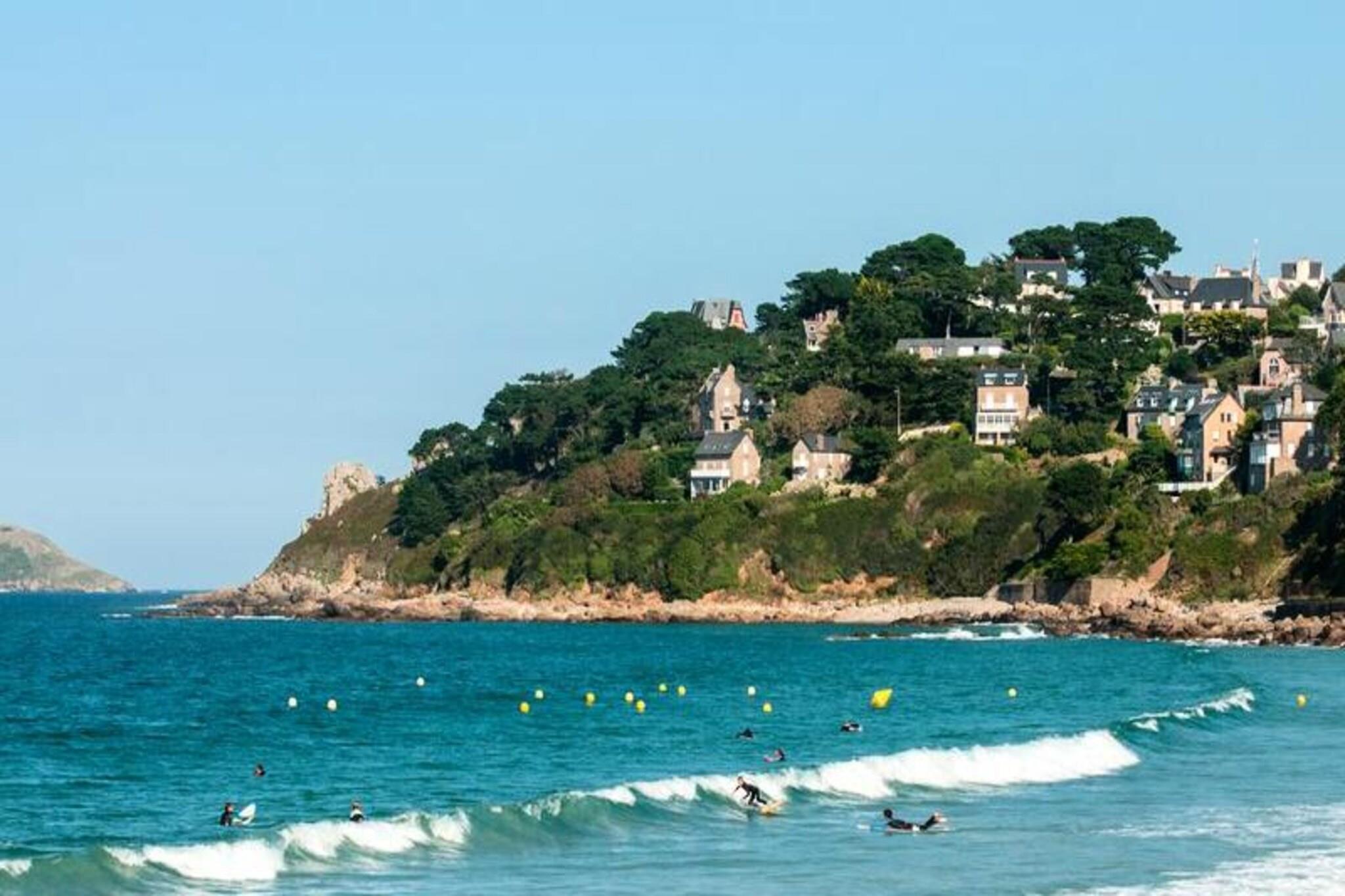 Denne hyggelige ferielejlighed ligger kun 200 meter fra stranden, perfekt til en familieferie. Den har et opholdsområde med en sovesofa til to, et soveværelse med to enkeltsenge og kan rumme op til fire gæster. Kæledyr er tilladt mod et ekstra gebyr, med begrænsninger på visse racer og et påkrævet sundhedscertifikat. Der er gratis trådløs internetadgang i receptionen med valgfri adgang mod betaling i lejligheden. Lejligheden tilbyder også leje af linned og håndklæder samt rengøring efter anmodning. Der kræves et refunderbart depositum. Ejendommen ligger i Perros-Guirec i den fantastiske Côte de Granit Rose og tilbyder en række aktiviteter, herunder vandsport som sejlads, kajaksejlads og windsurfing. Nærliggende attraktioner omfatter et kasino, biograf, spa og et multisportsområde. Yngre gæster kan nyde strandklubber og minigolf. Området er ideelt til udforskning, med en bil, der anbefales til fuldt ud at opleve regionen. Indvendigt har lejligheden et fuldt udstyret køkken, badeværelse med bruser eller badekar og separat toilet. Gæsterne kan også nyde den overdækkede, opvarmede swimmingpool, sauna og fitnessrum. Yderligere tjenester såsom parkering, morgenmad og rengøring er tilgængelige for ekstra bekvemmelighed.